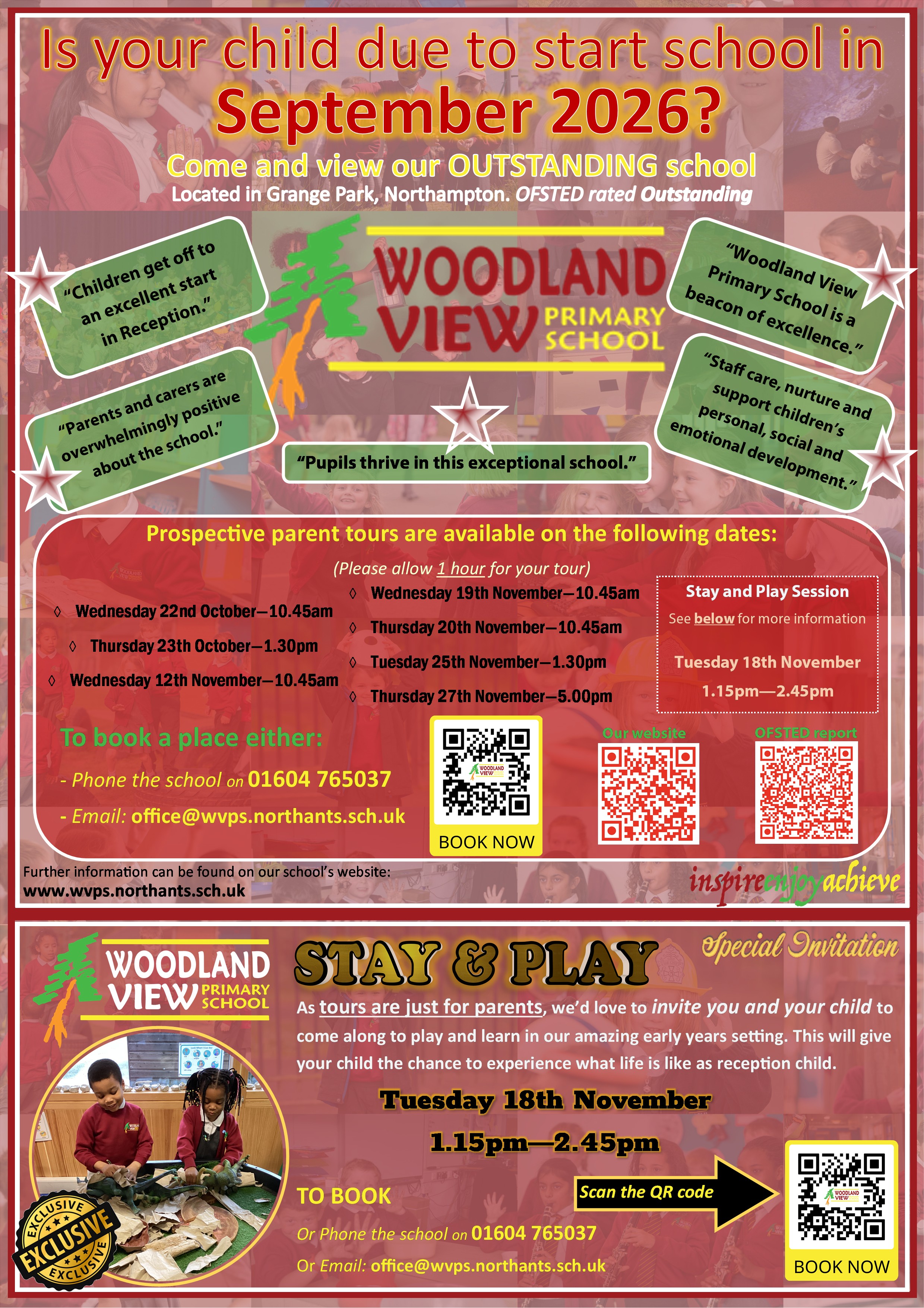The deadline for submission of your application form for a place at any primary school is on 15th January 2025. A guide booklet entitled “Applying for a Primary School Place in West Northamptonshire” is available for viewing on https://www.westnorthants.gov.uk/primary-school-places/apply-primary-school-place now.