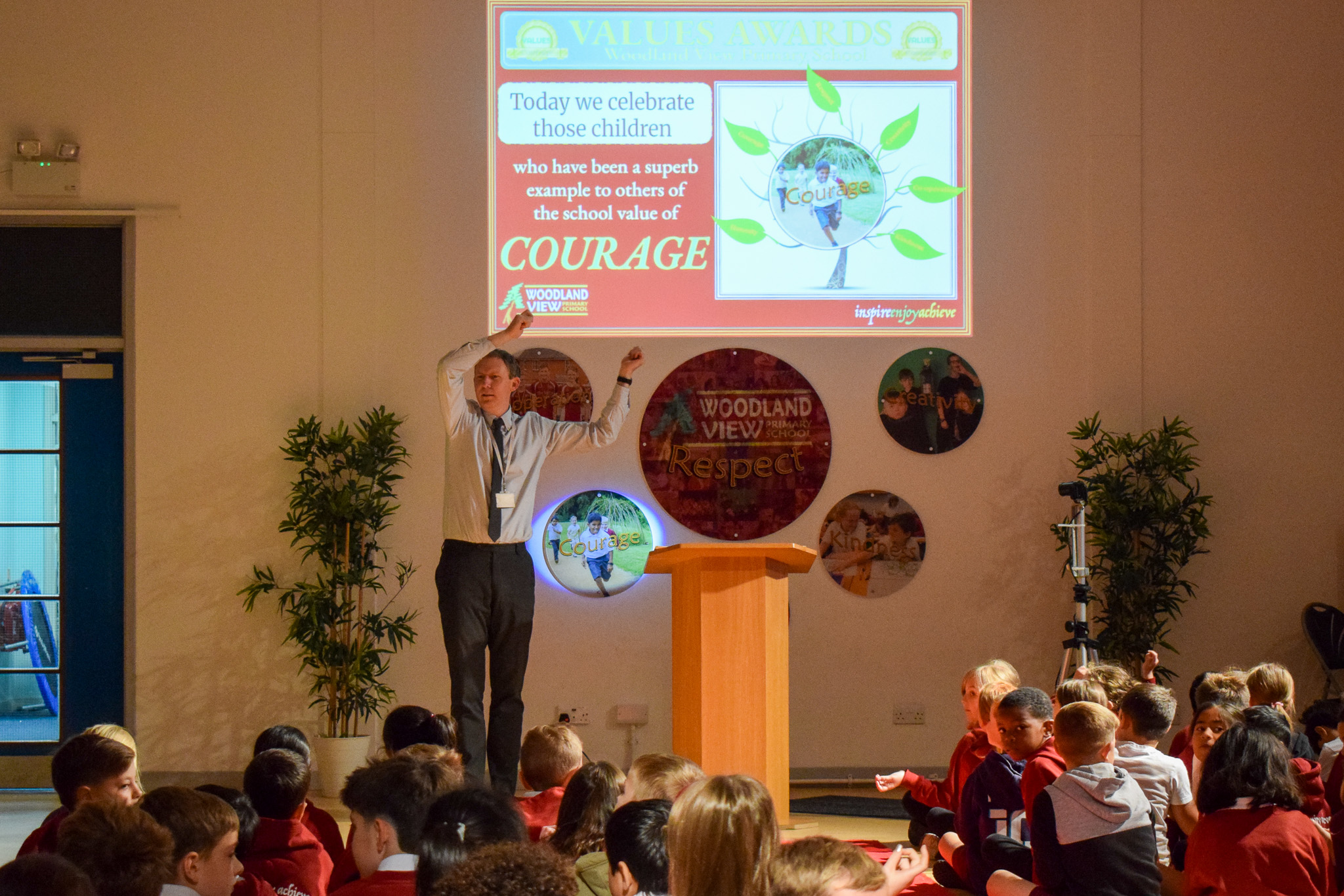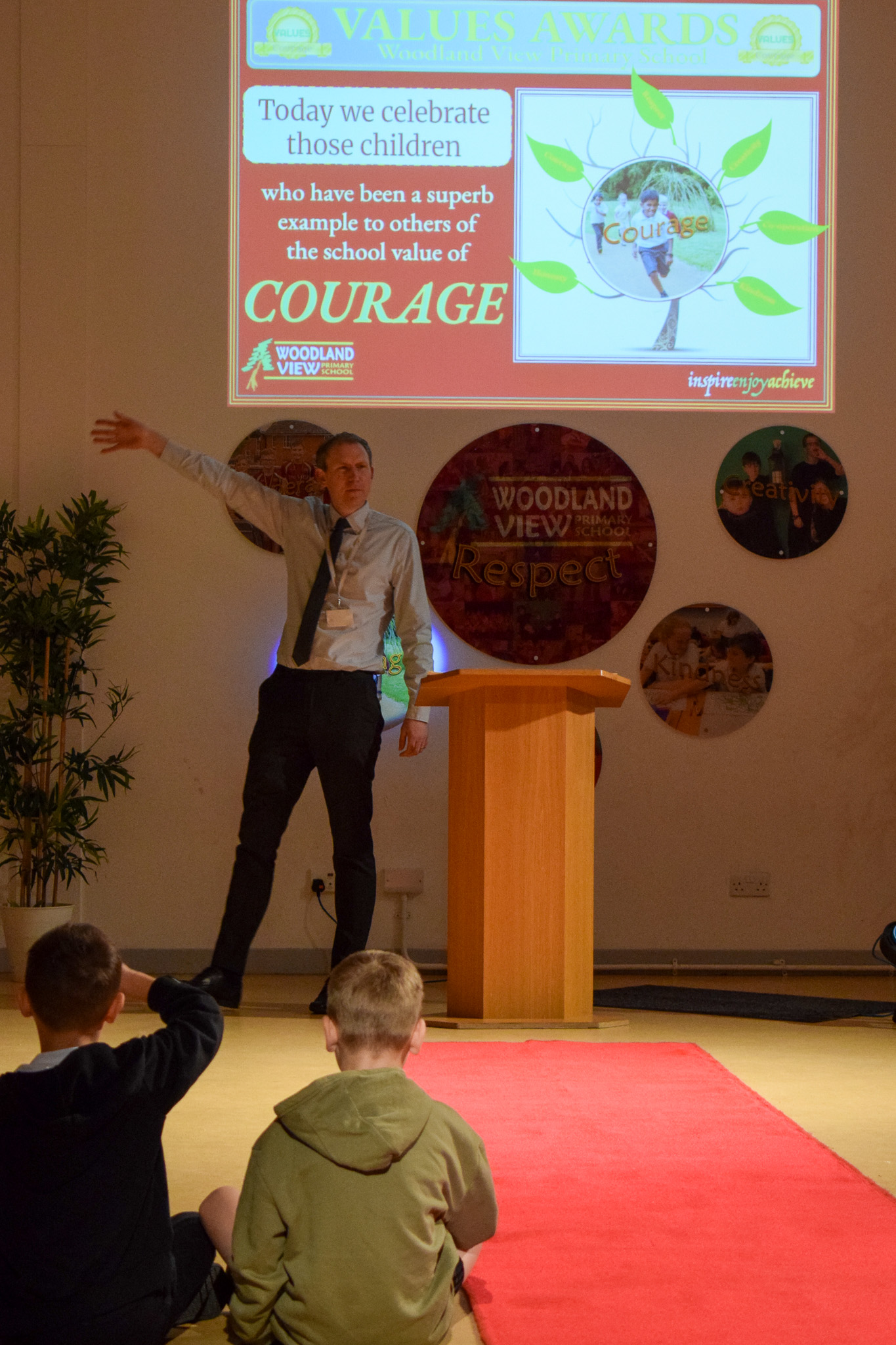 The class teachers then shared the names of 2 children from each class to be presented with the COURAGE value award and the reasons they had been selected.