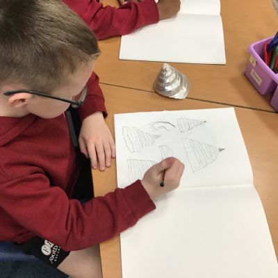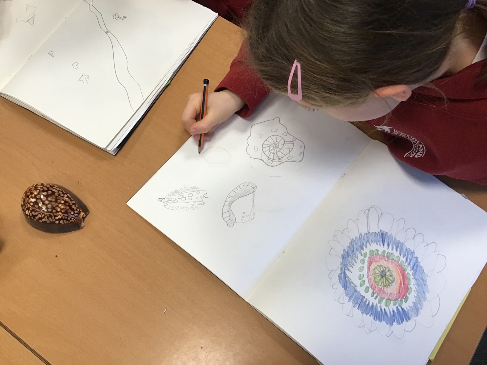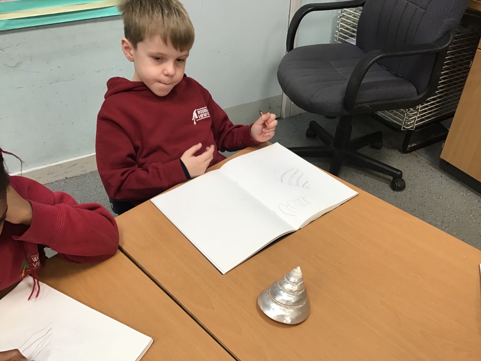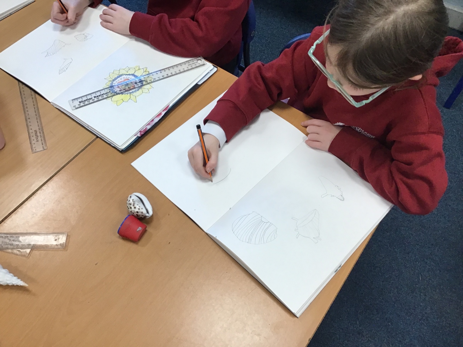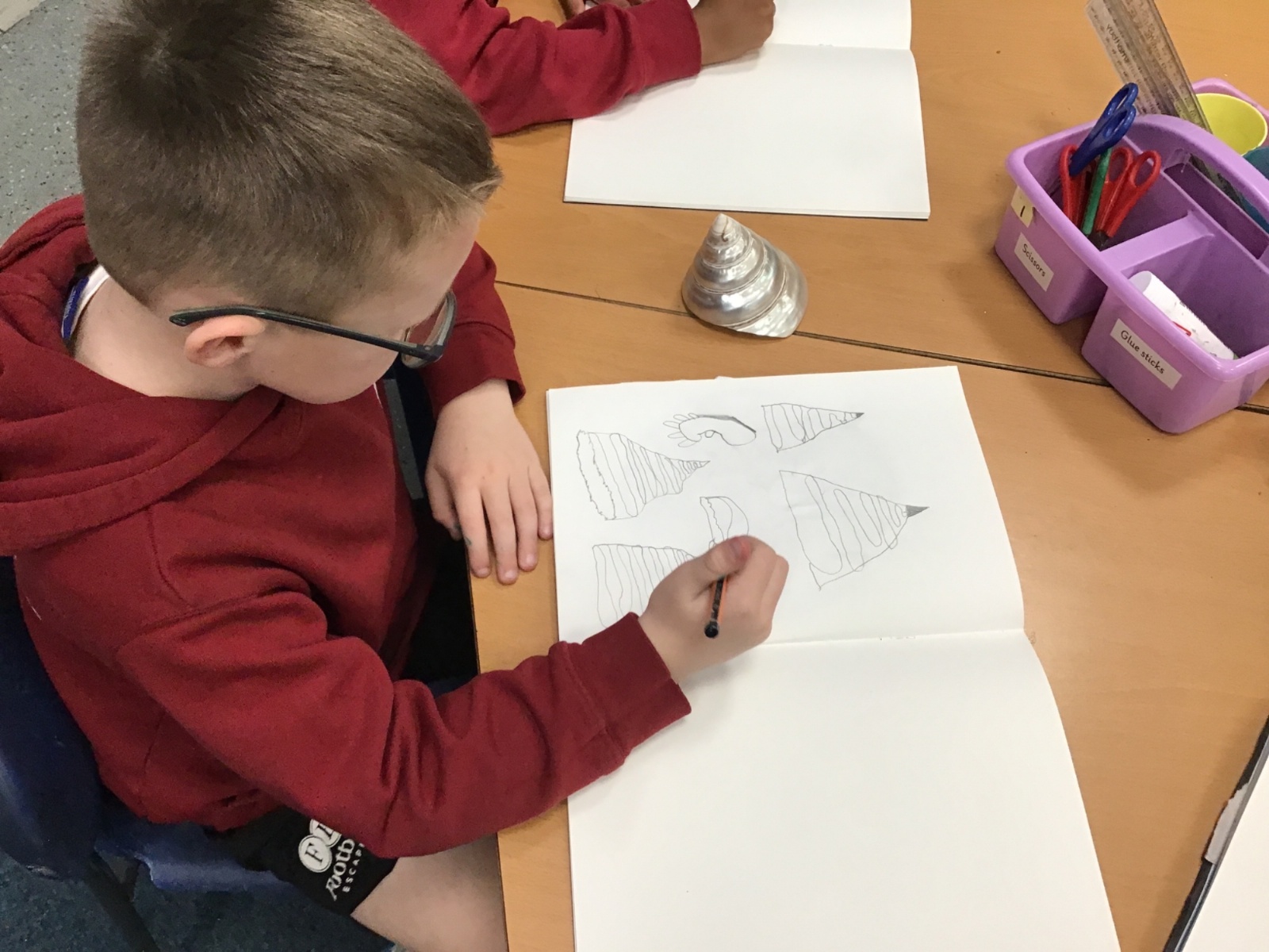 Today we have started looking at still life drawings, we talked about the shapes the artists use to create realistic drawings of everyday objects. We had a go at trying to replicate the shapes we saw in the shells we were looking at.