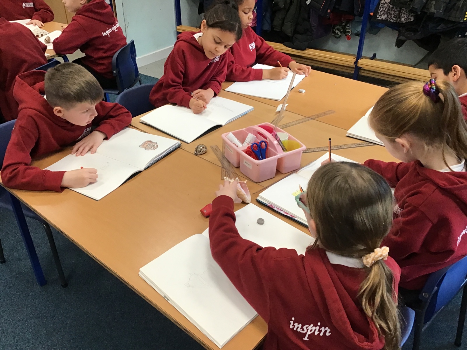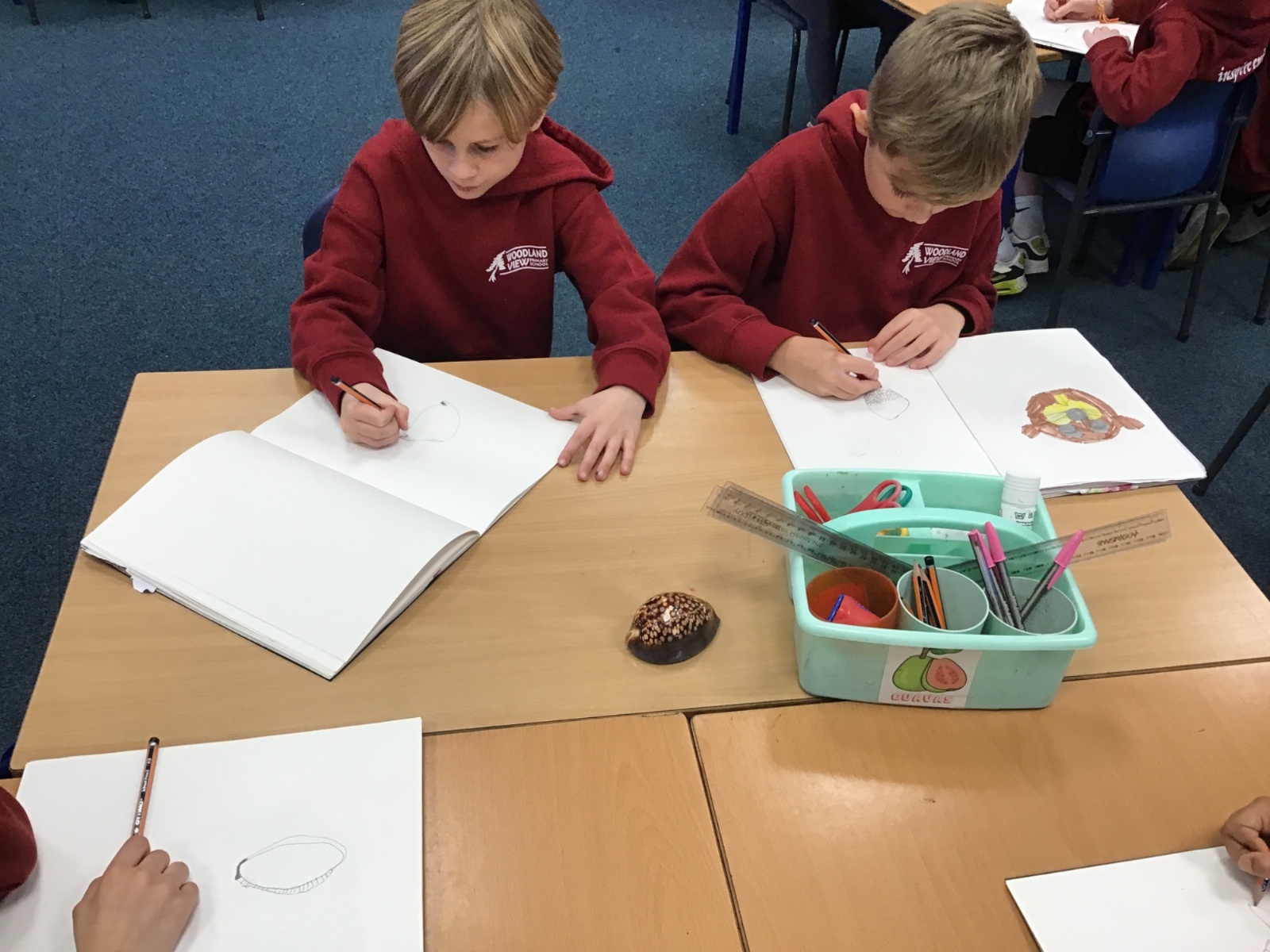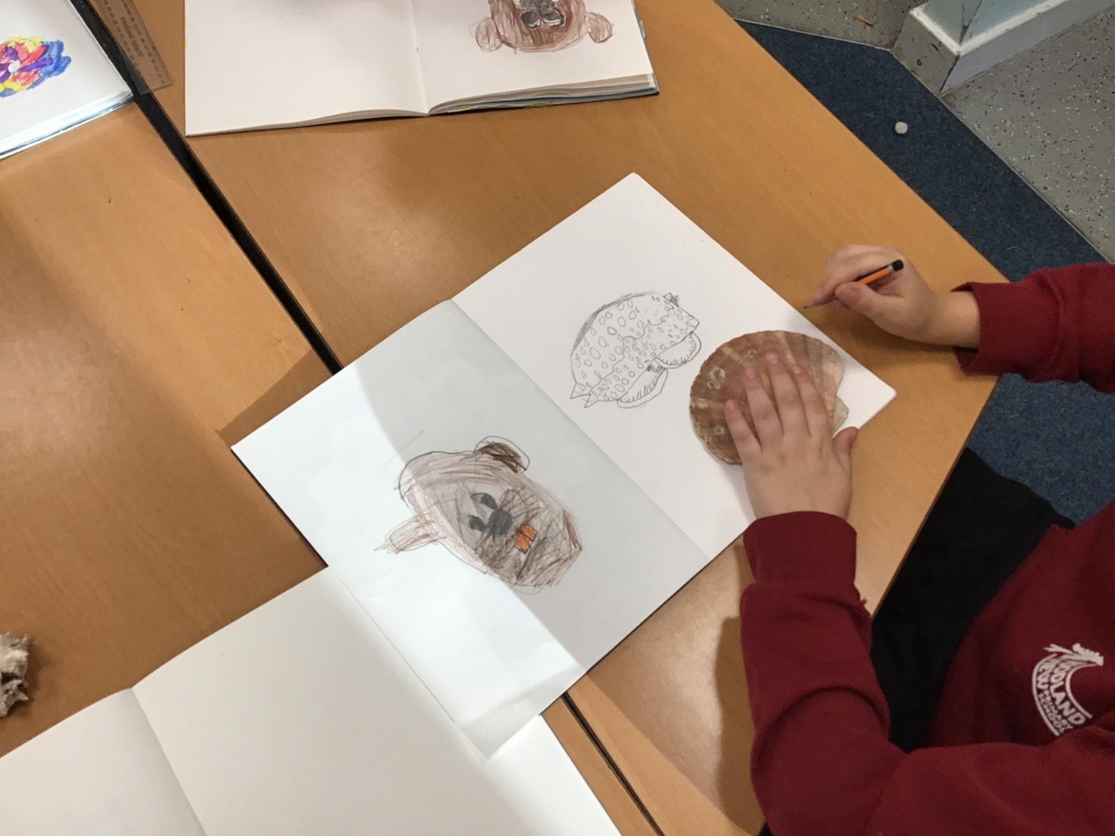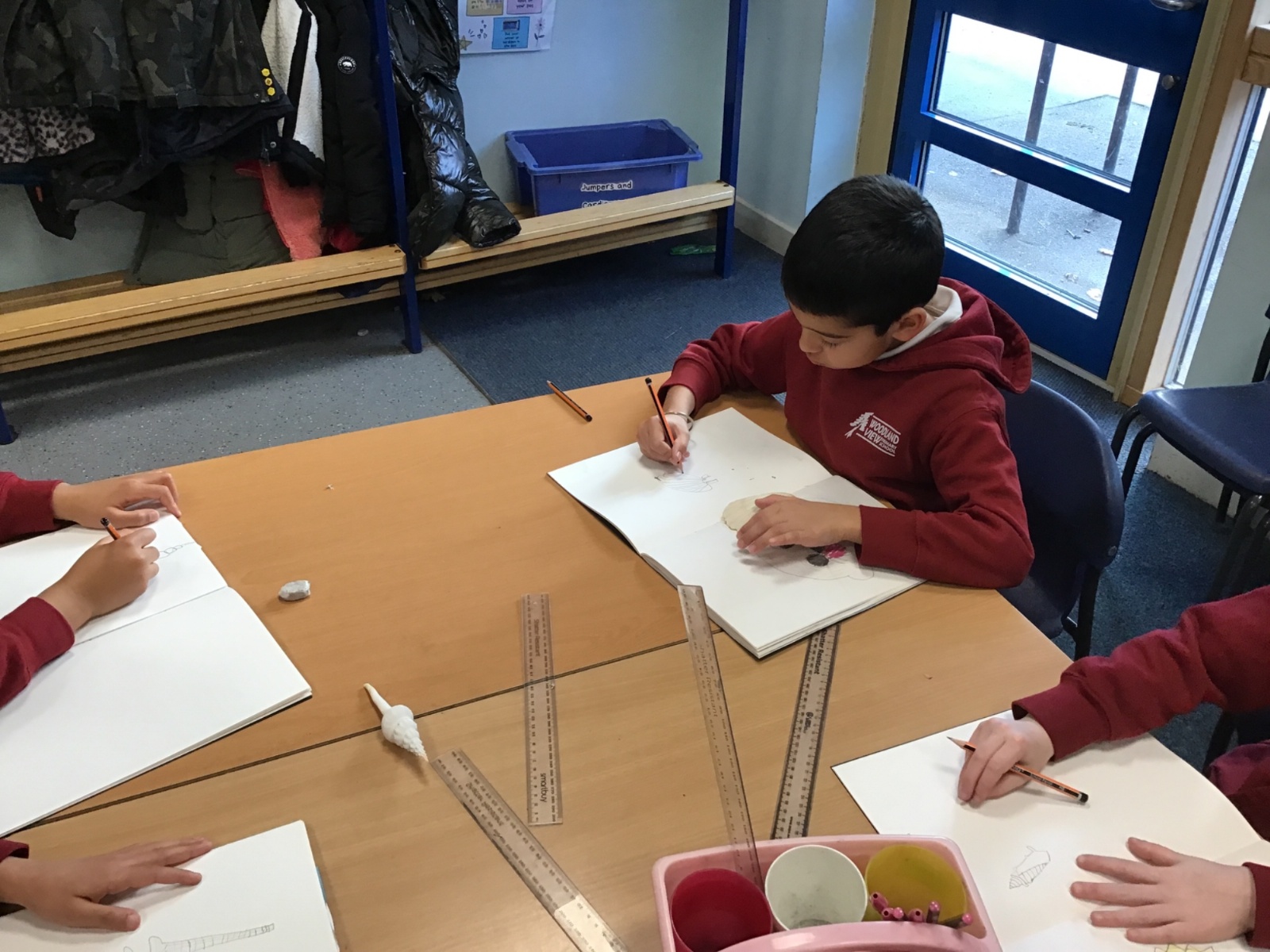 Today we have started looking at still life drawings, we talked about the shapes the artists use to create realistic drawings of everyday objects. We had a go at trying to replicate the shapes we saw in the shells we were looking at.