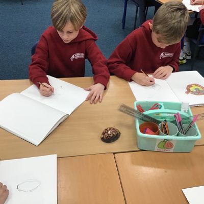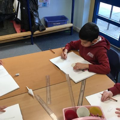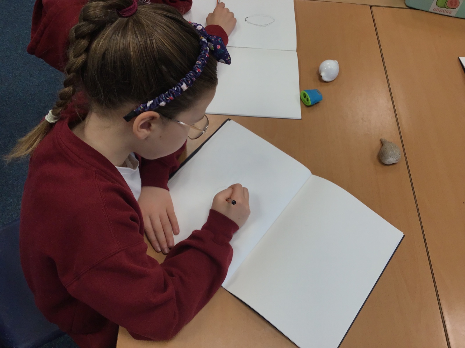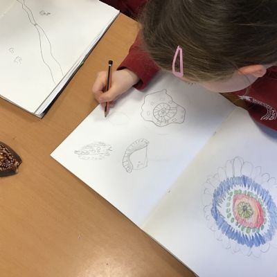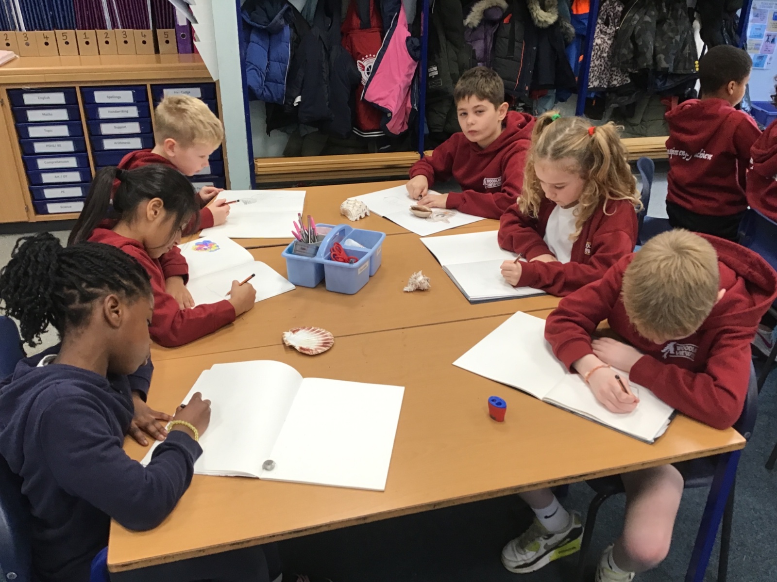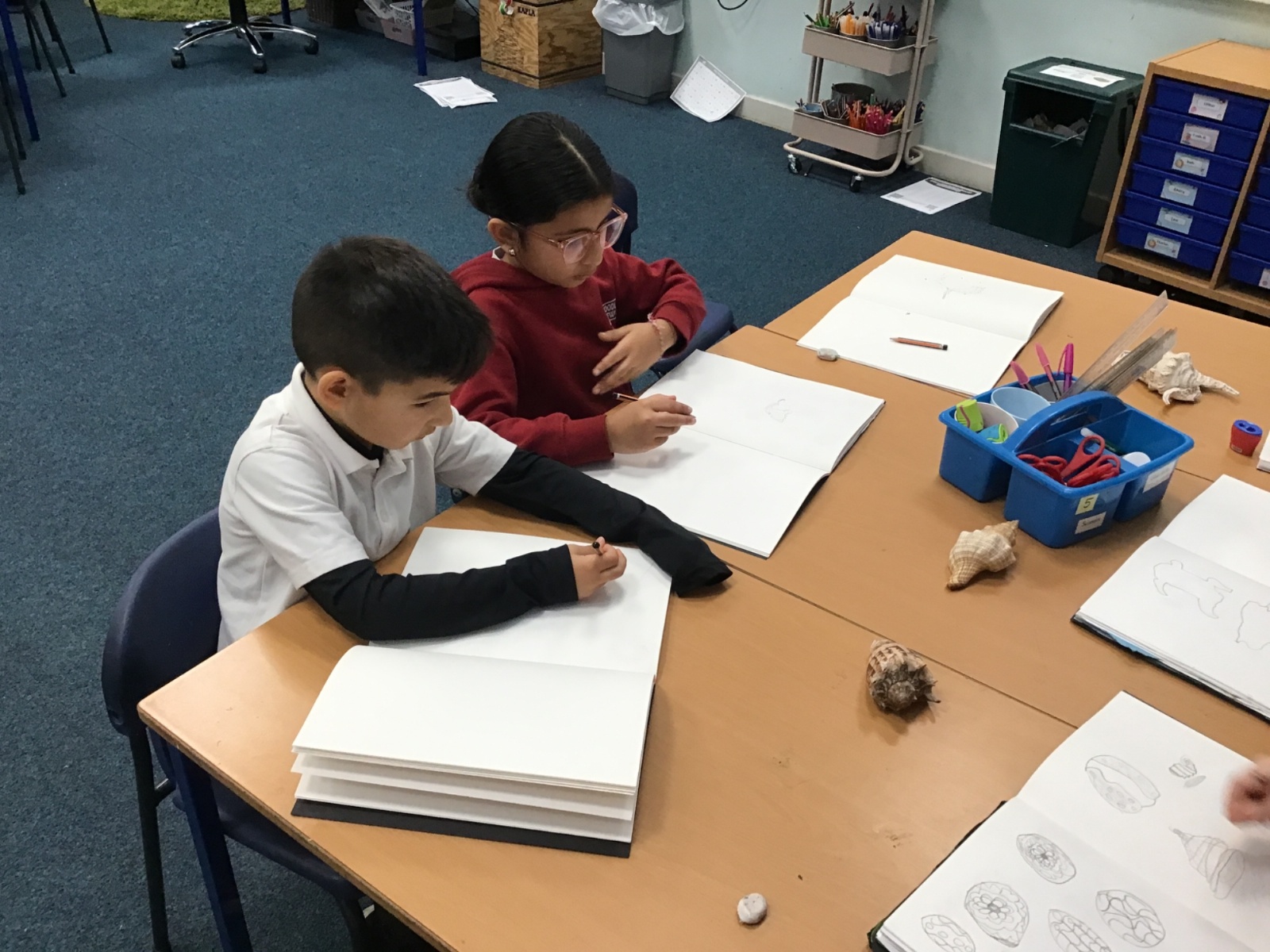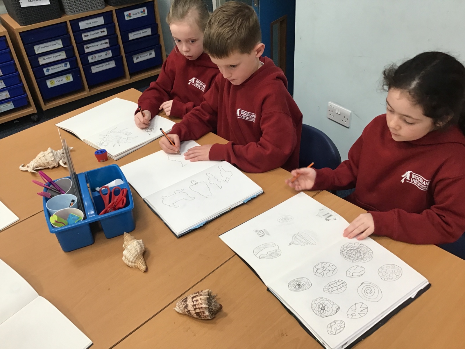Today we have started looking at still life drawings, we talked about the shapes the artists use to create realistic drawings of everyday objects. We had a go at trying to replicate the shapes we saw in the shells we were looking at.
