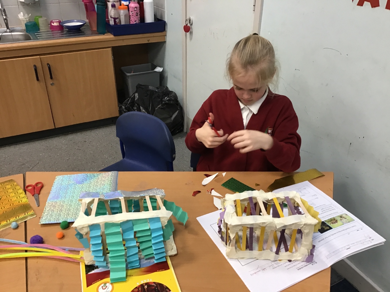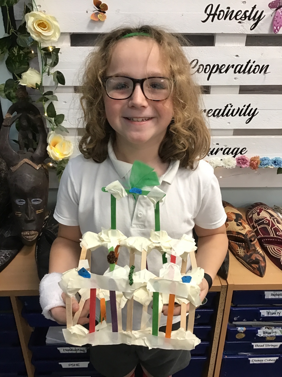In DT, we have been learning about the use of pavilions and exploring the many pavilion structures across the globe. We used our research to plan our own pavilions – thinking carefully about the design and purpose. Using a range of materials, we then constructed a frame, added cladding and finalised the finishing touches. Well done Year 4, what a creative bunch you are!