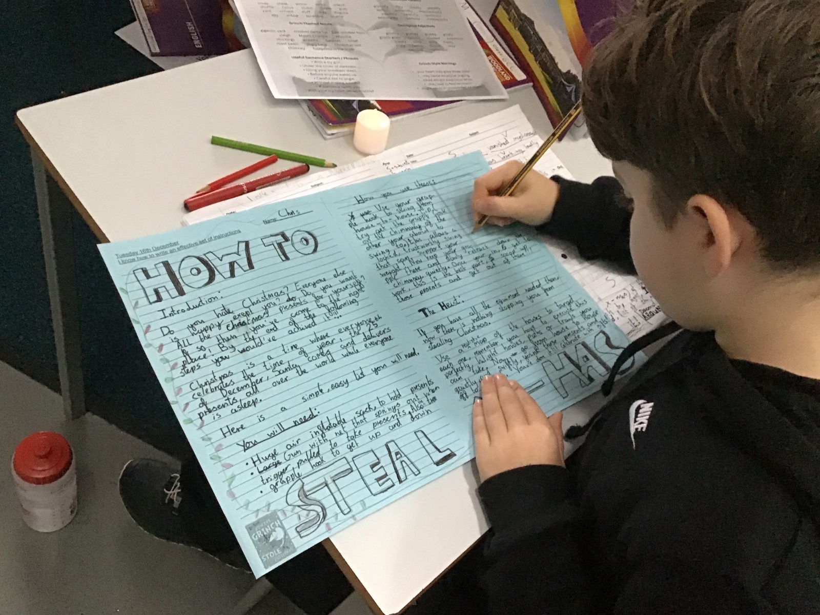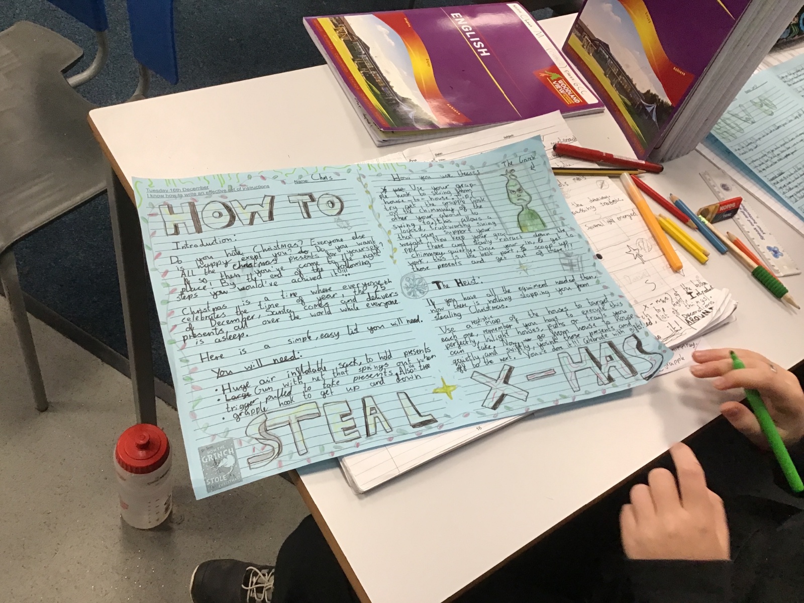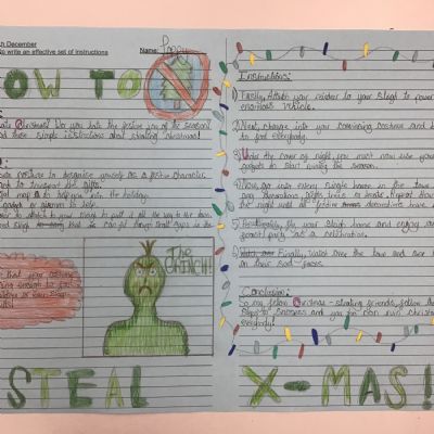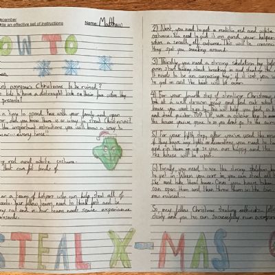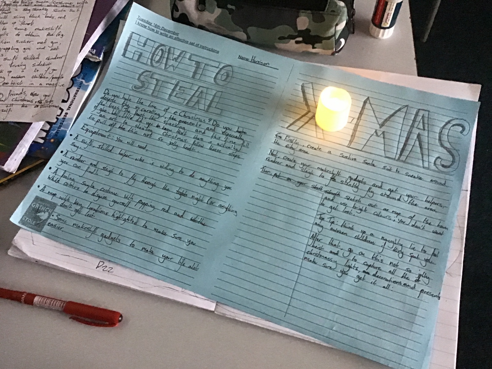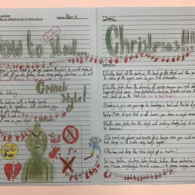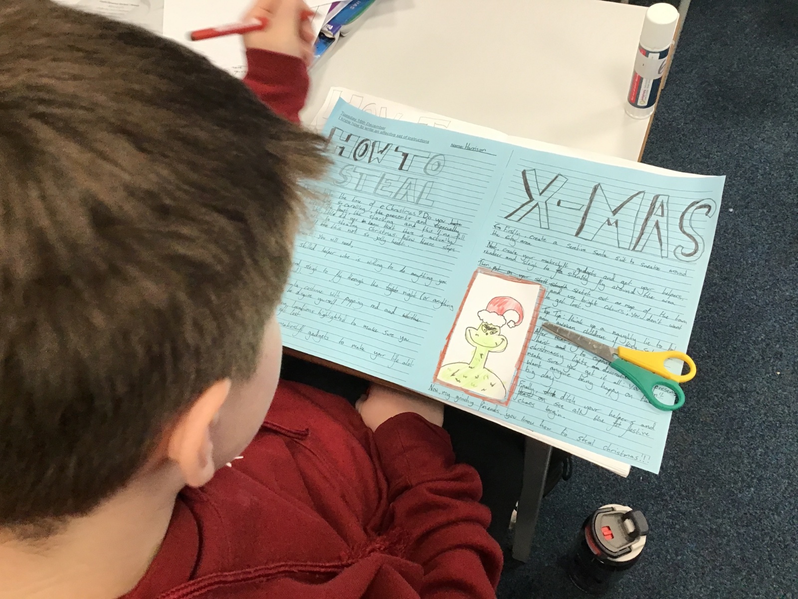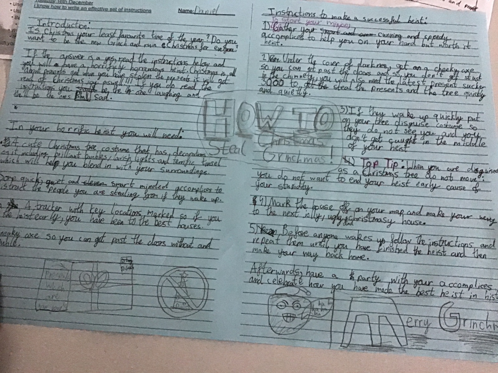 To complete a unit of work studying instructions, we focused on 'How the Grinch stole Christmas' by Dr Seuss. We have read the story, watched some snippets from both films and then created our own set of instructions as if we were the Grinch trying to explain to someone else how to steal Christmas. Today, we completed this as our 'blue write'. We dimmed the lights, got out the candles, had festive music playing and a roaring Christmas fire on the screen and have presented our instructions to really showcase our writing! Enjoy our festive instructions!