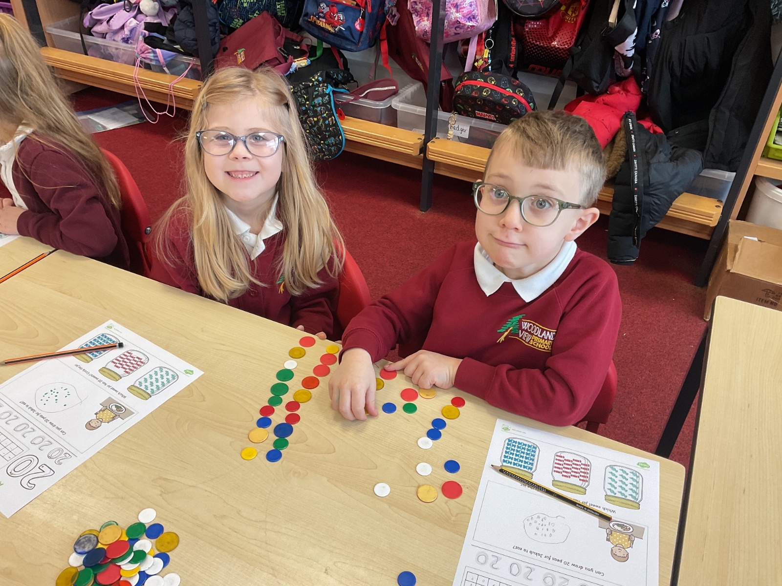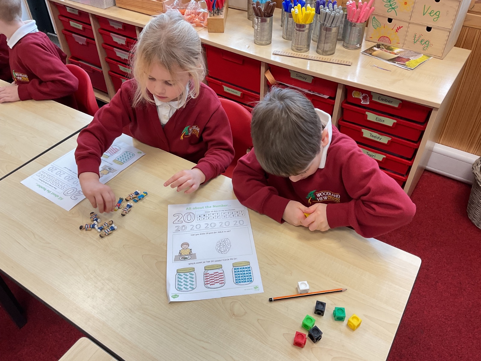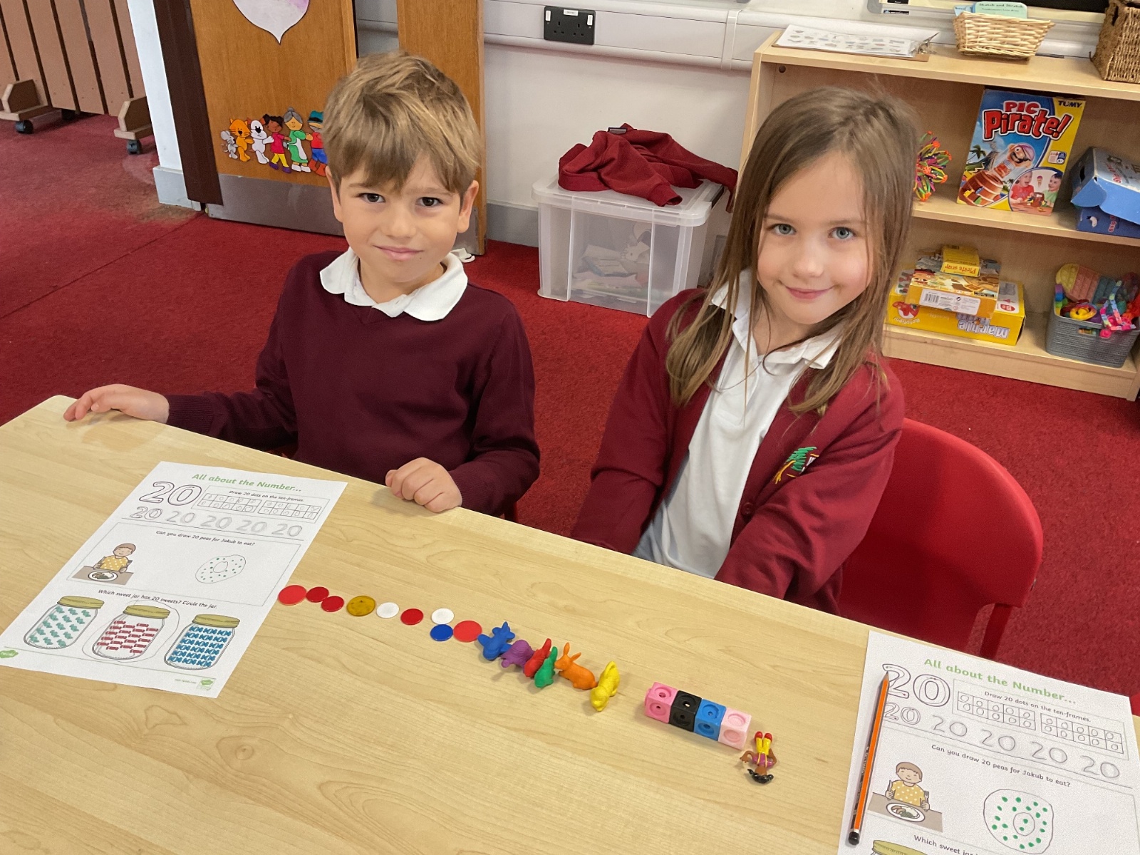 We started off this week by exploring the number 20. We had great fun making 20 in different ways, using different equipment to represent and thinking about the number facts that make 20.