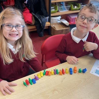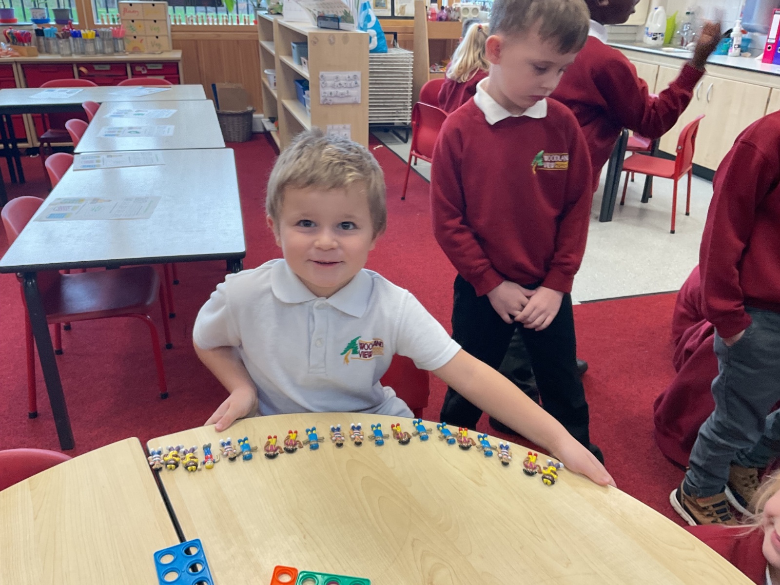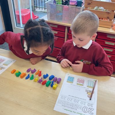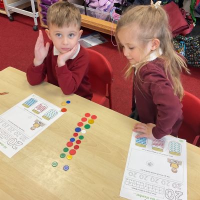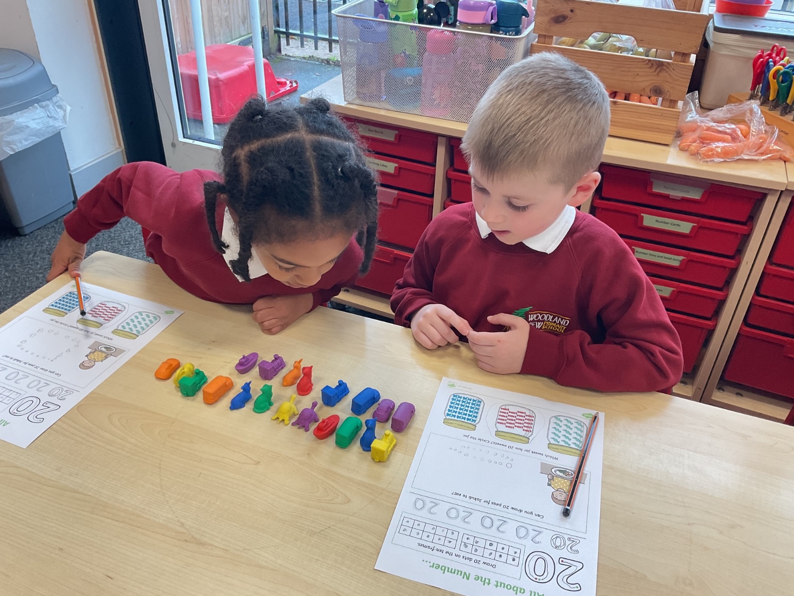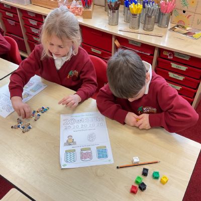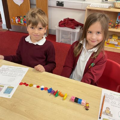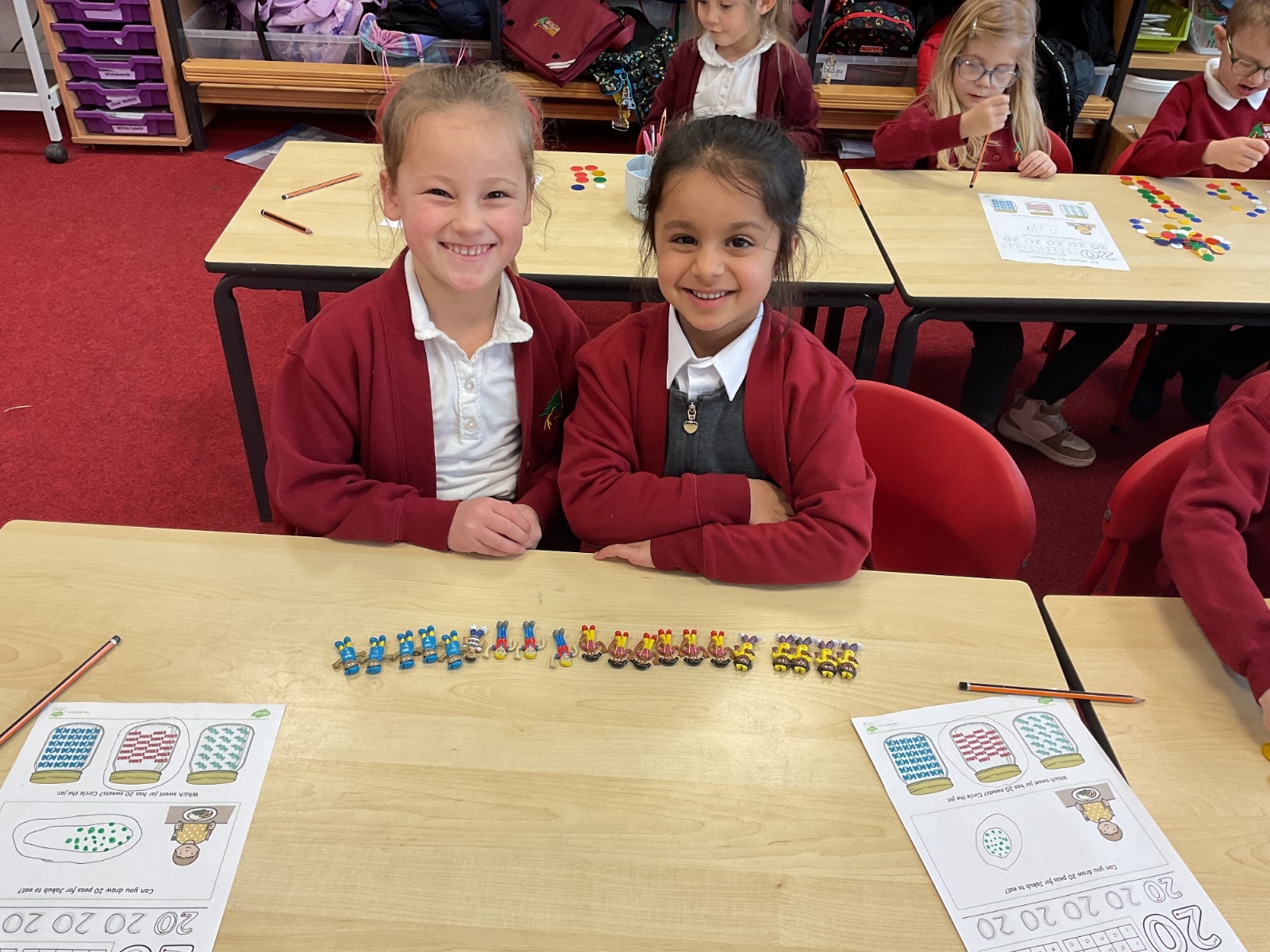 We started off this week by exploring the number 20. We had great fun making 20 in different ways, using different equipment to represent and thinking about the number facts that make 20.