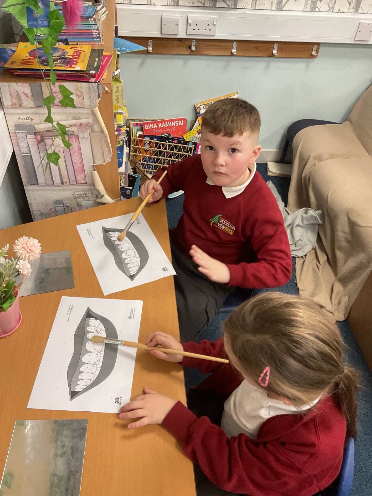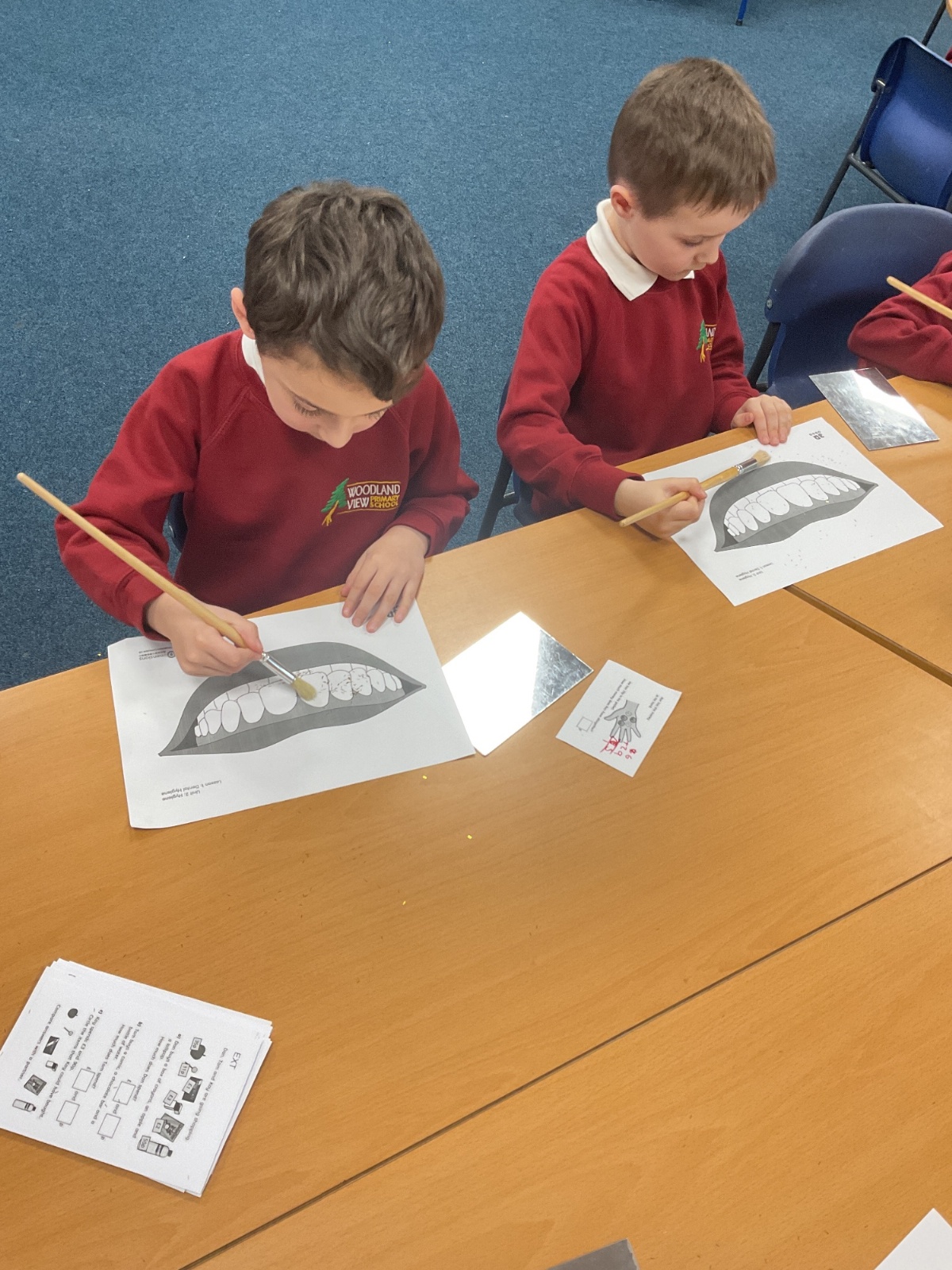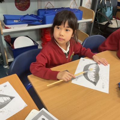 The children learnt that brushing in small, gentle circles helps remove bits of food and plaque from our teeth more carefully than scrubbing back and forth.