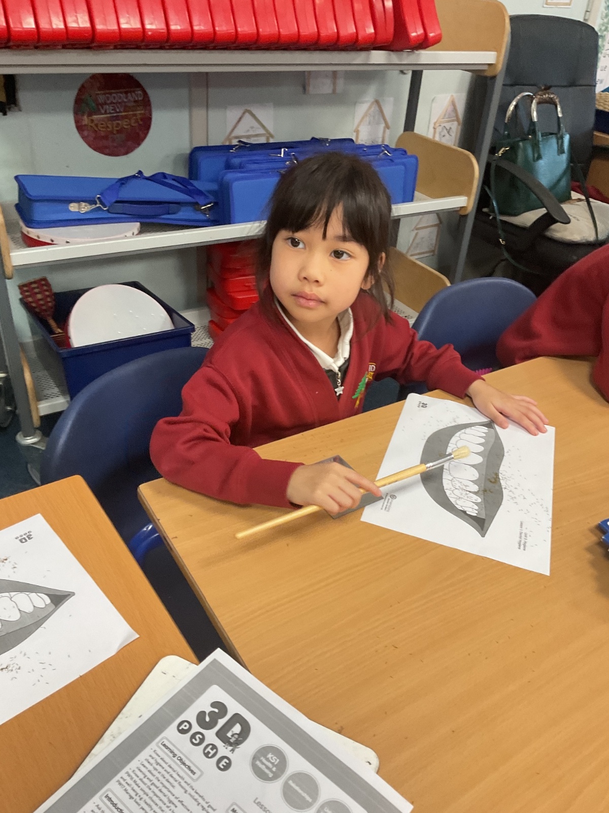 We also learnt how to brush our teeth gently and effectively. We talked about how we can tell if we are brushing too hard, if the toothbrush bristles are squashed flat, we are pressing too much! Healthy brushing means the bristles stay standing up.