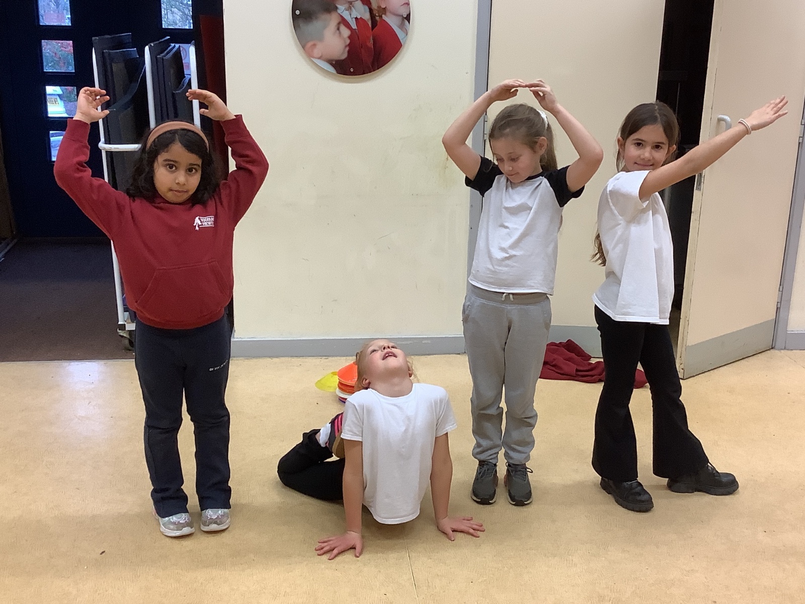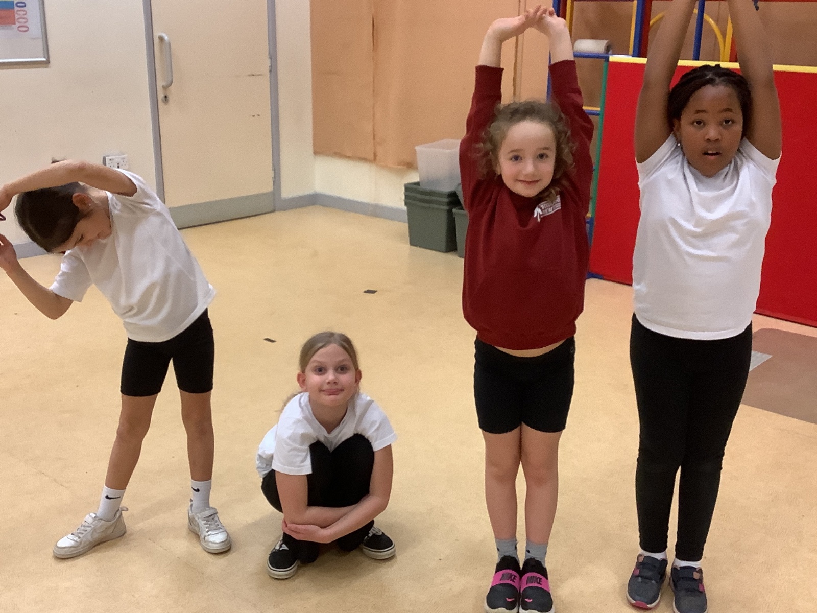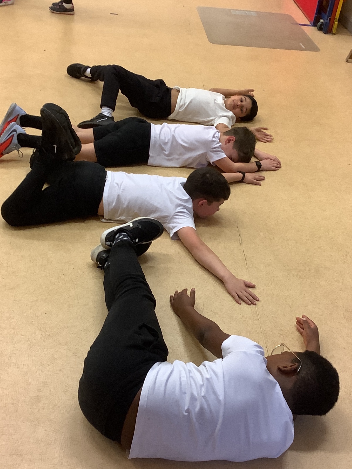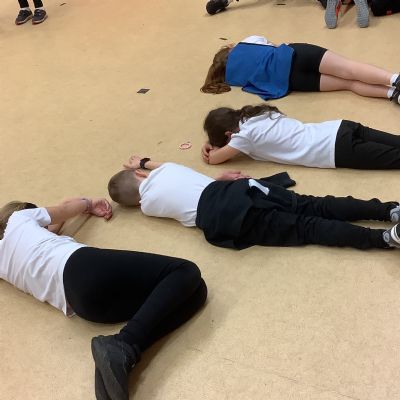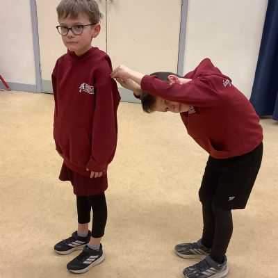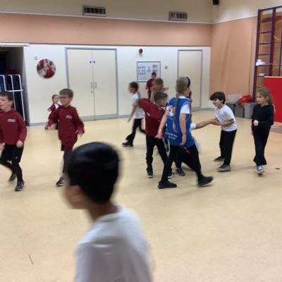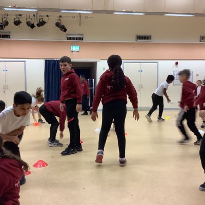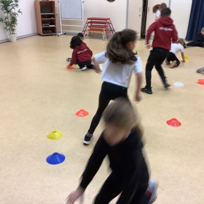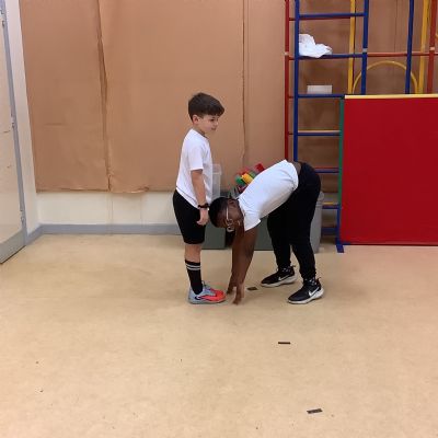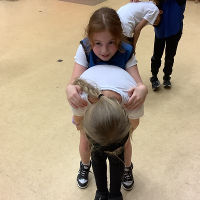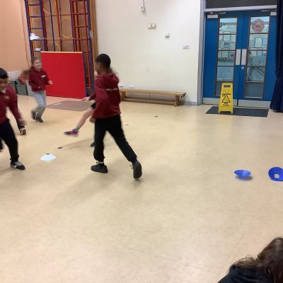 In PE today, children had to work in partners and teams to achieve the challenge. The children started off by playing a game called Dishes and Domes where two teams competed against each other to tournament the cones either upside down or the correct way up. After that, they played a game called Team tag whereby the children had 4 taggers, and they had to tag the rest of the class, but to make it harder the children had to walk or bum shuffle! Lots of fun but hard work. Finally, the children had to create letters and words using just their bodies!