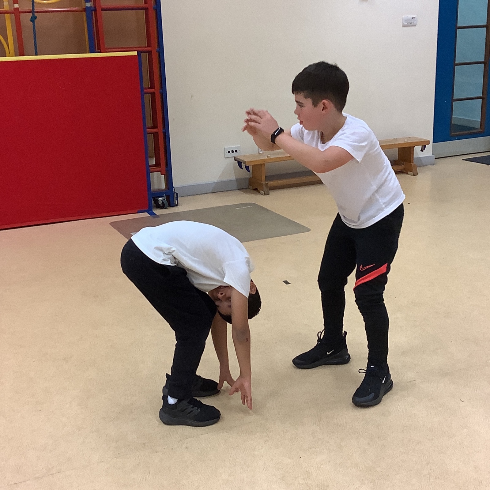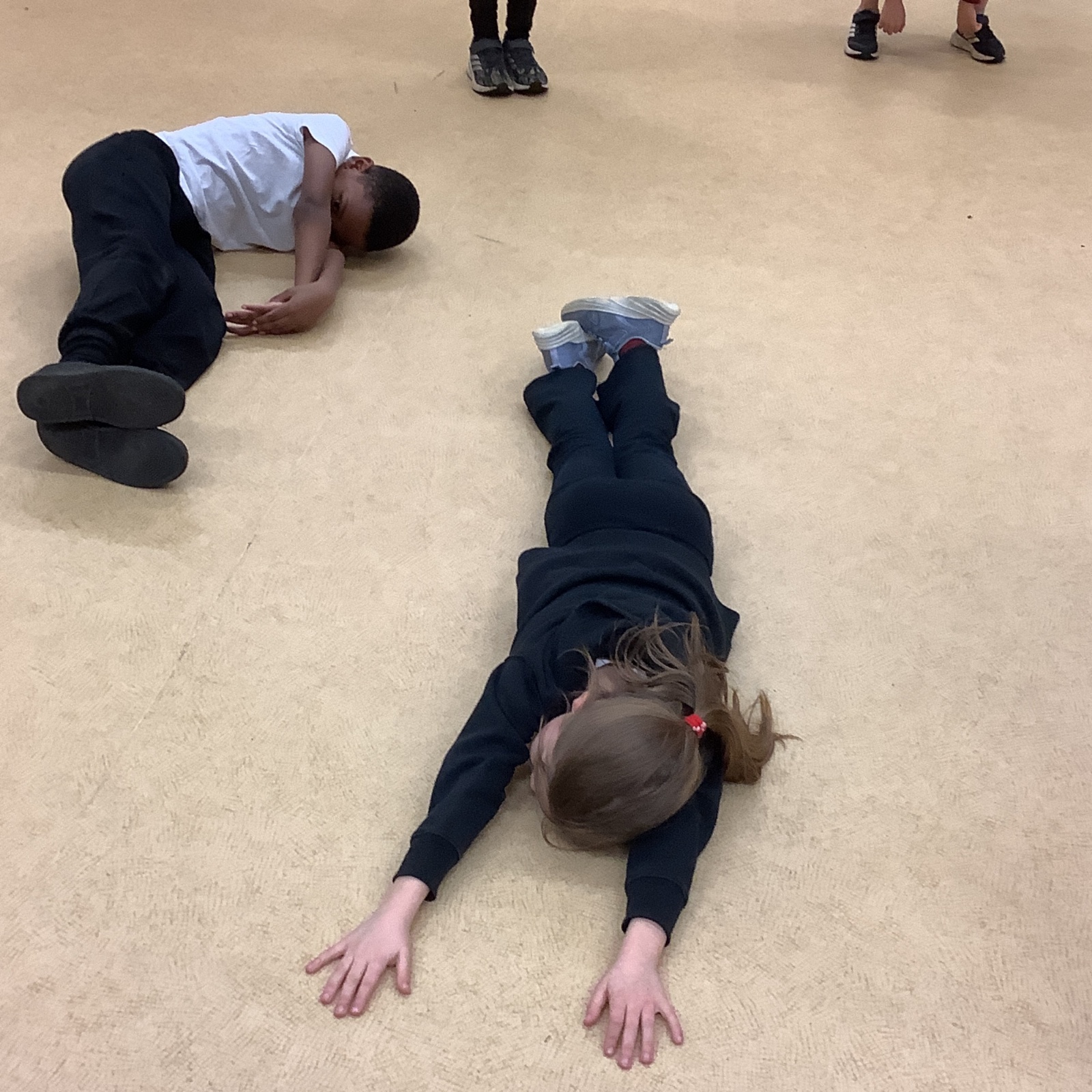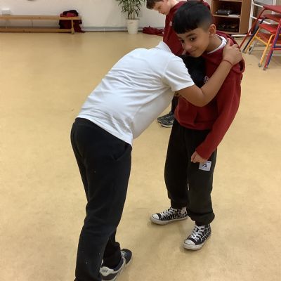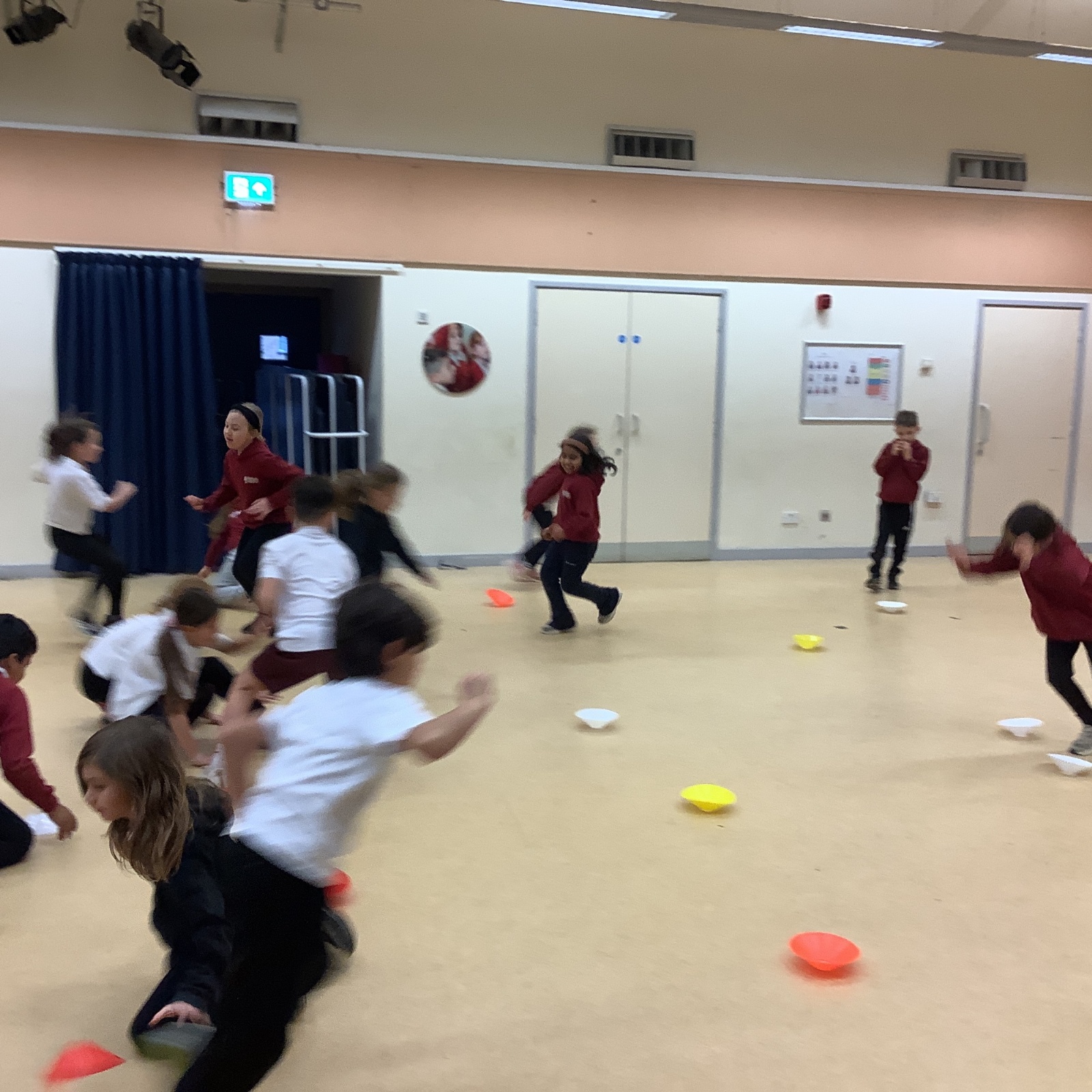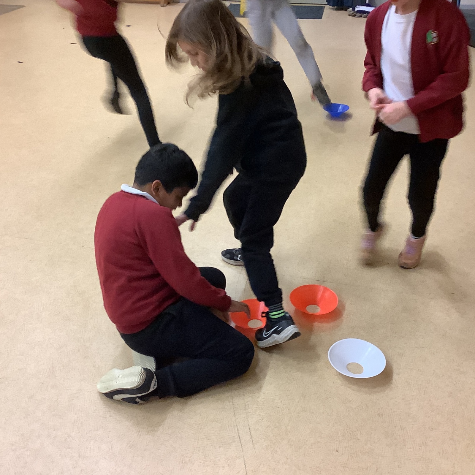 In PE today, children had to work in partners and teams to achieve the challenge. The children started off by playing a game called Dishes and Domes where two teams competed against each other to tournament the cones either upside down or the correct way up. After that, they played a game called Team tag whereby the children had 4 taggers, and they had to tag the rest of the class, but to make it harder the children had to walk or bum shuffle! Lots of fun but hard work. Finally, the children had to create letters and words using just their bodies!