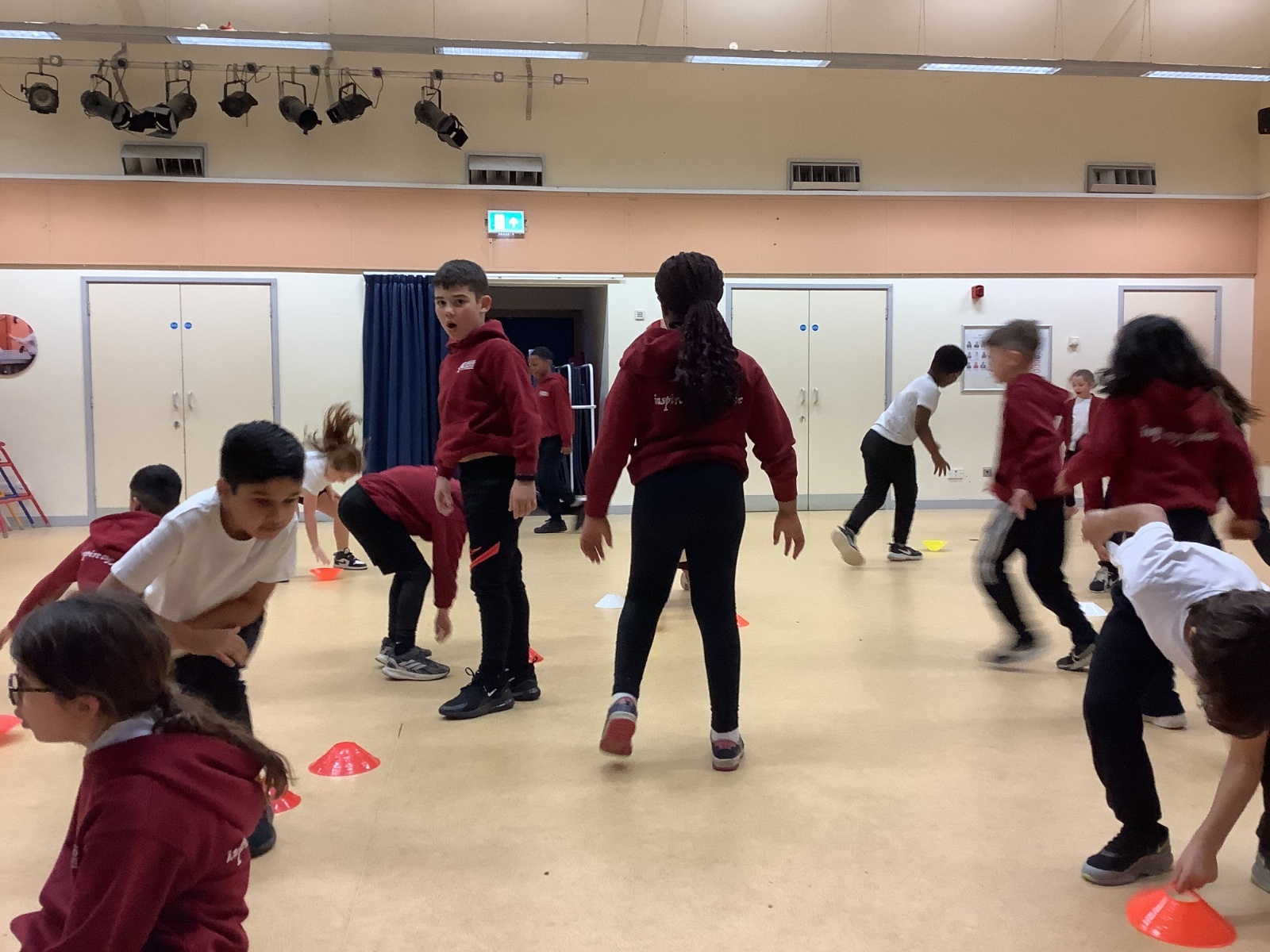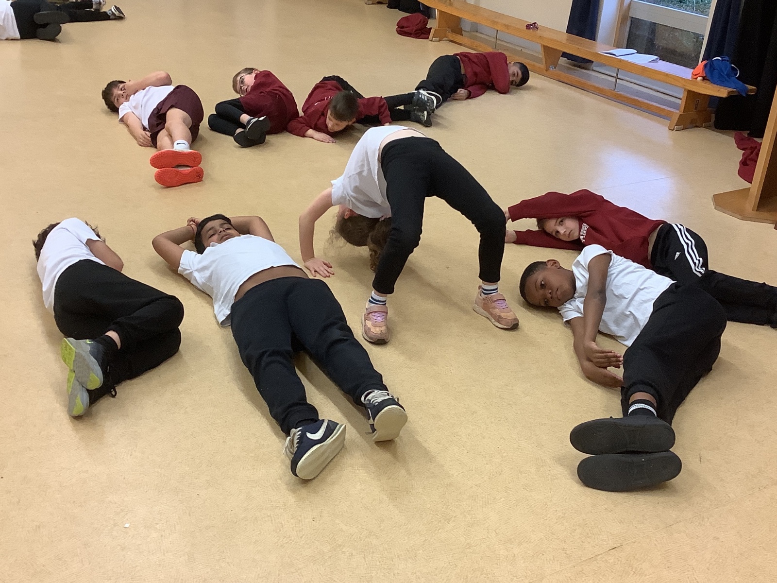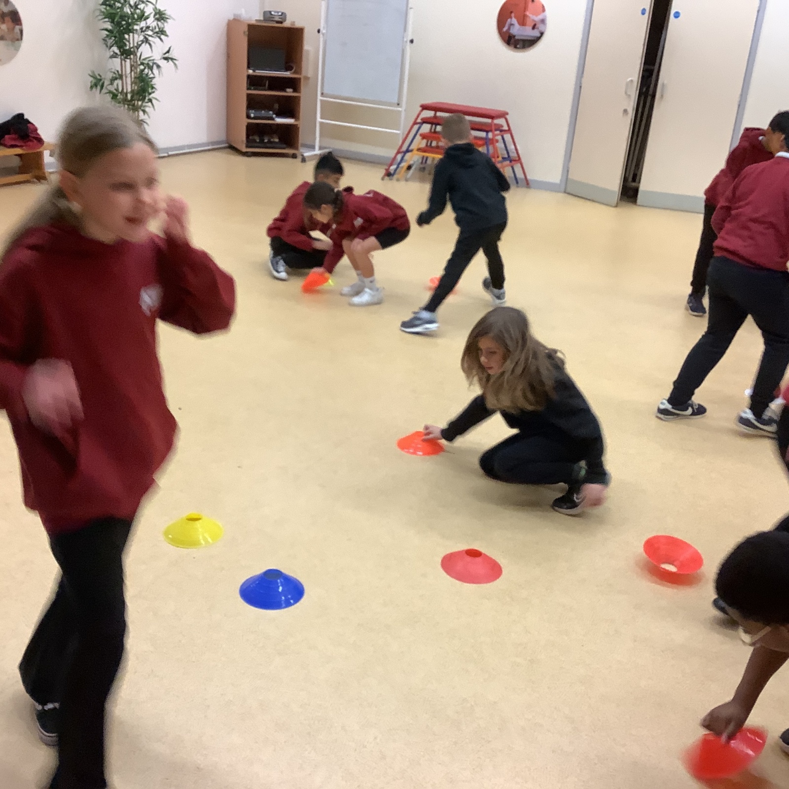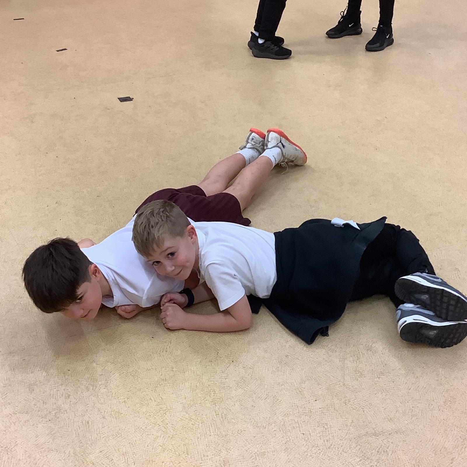 In PE today, children had to work in partners and teams to achieve the challenge. The children started off by playing a game called Dishes and Domes where two teams competed against each other to tournament the cones either upside down or the correct way up. After that, they played a game called Team tag whereby the children had 4 taggers, and they had to tag the rest of the class, but to make it harder the children had to walk or bum shuffle! Lots of fun but hard work. Finally, the children had to create letters and words using just their bodies!