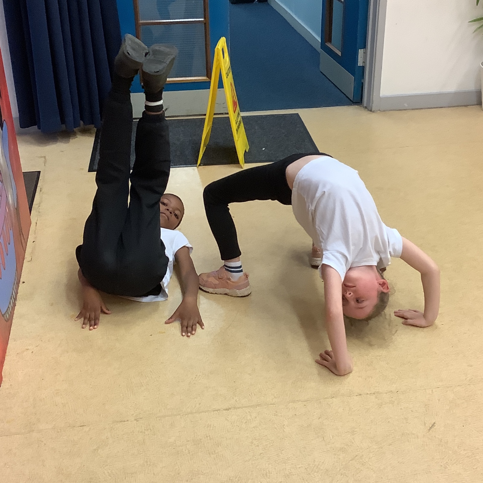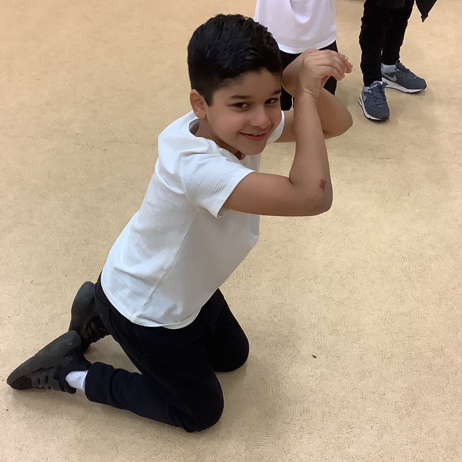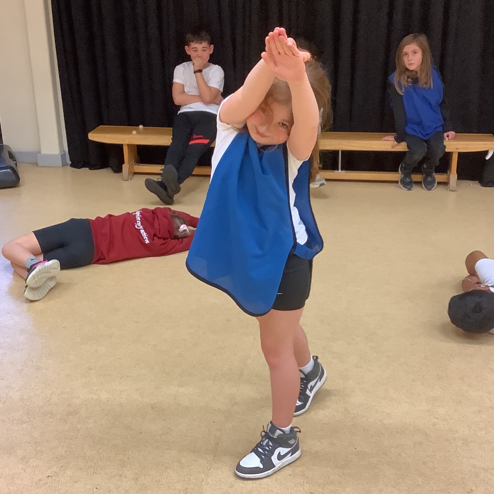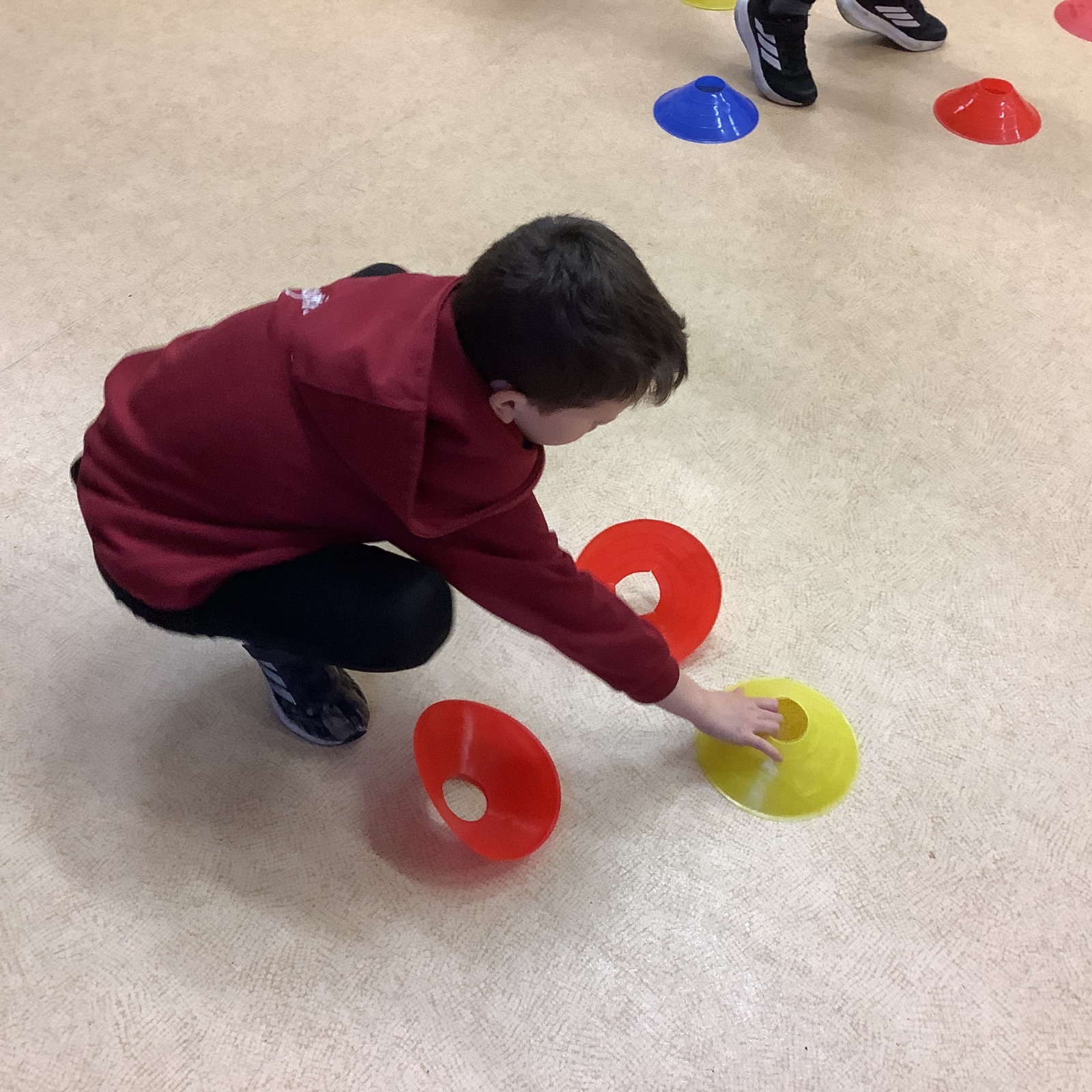 In PE today, children had to work in partners and teams to achieve the challenge. The children started off by playing a game called Dishes and Domes where two teams competed against each other to tournament the cones either upside down or the correct way up. After that, they played a game called Team tag whereby the children had 4 taggers, and they had to tag the rest of the class, but to make it harder the children had to walk or bum shuffle! Lots of fun but hard work. Finally, the children had to create letters and words using just their bodies!