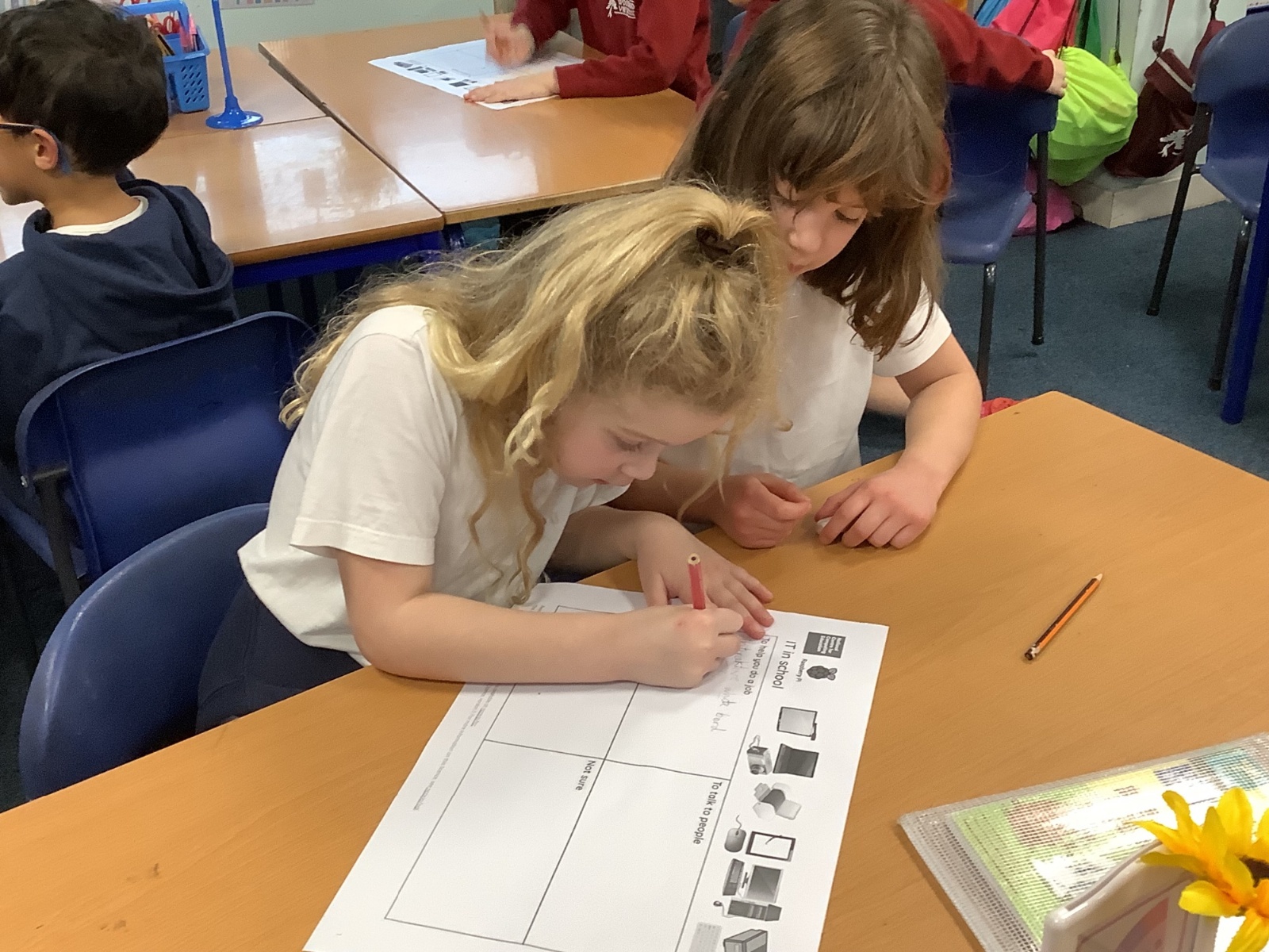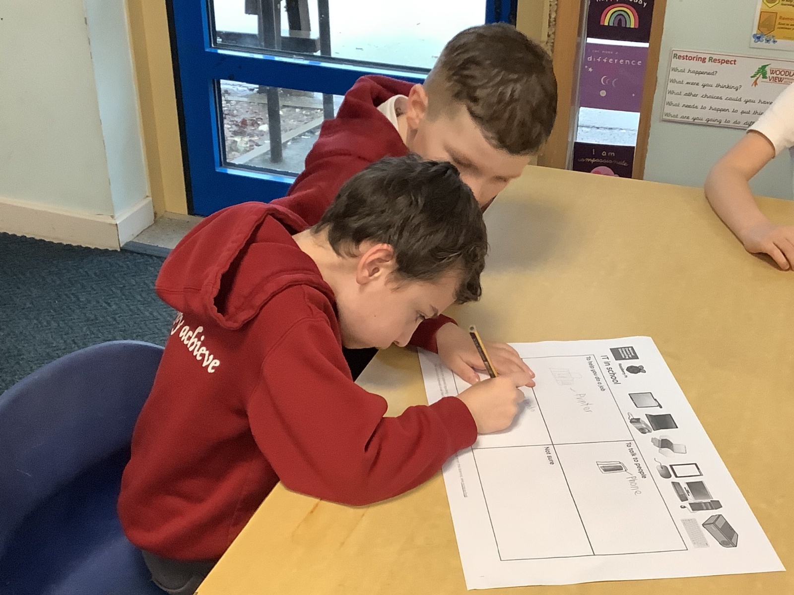 Discussing and debating the different uses of IT within school.