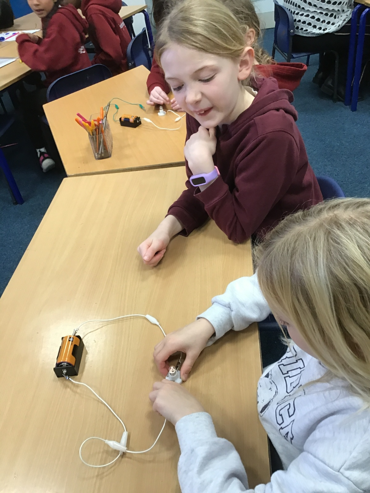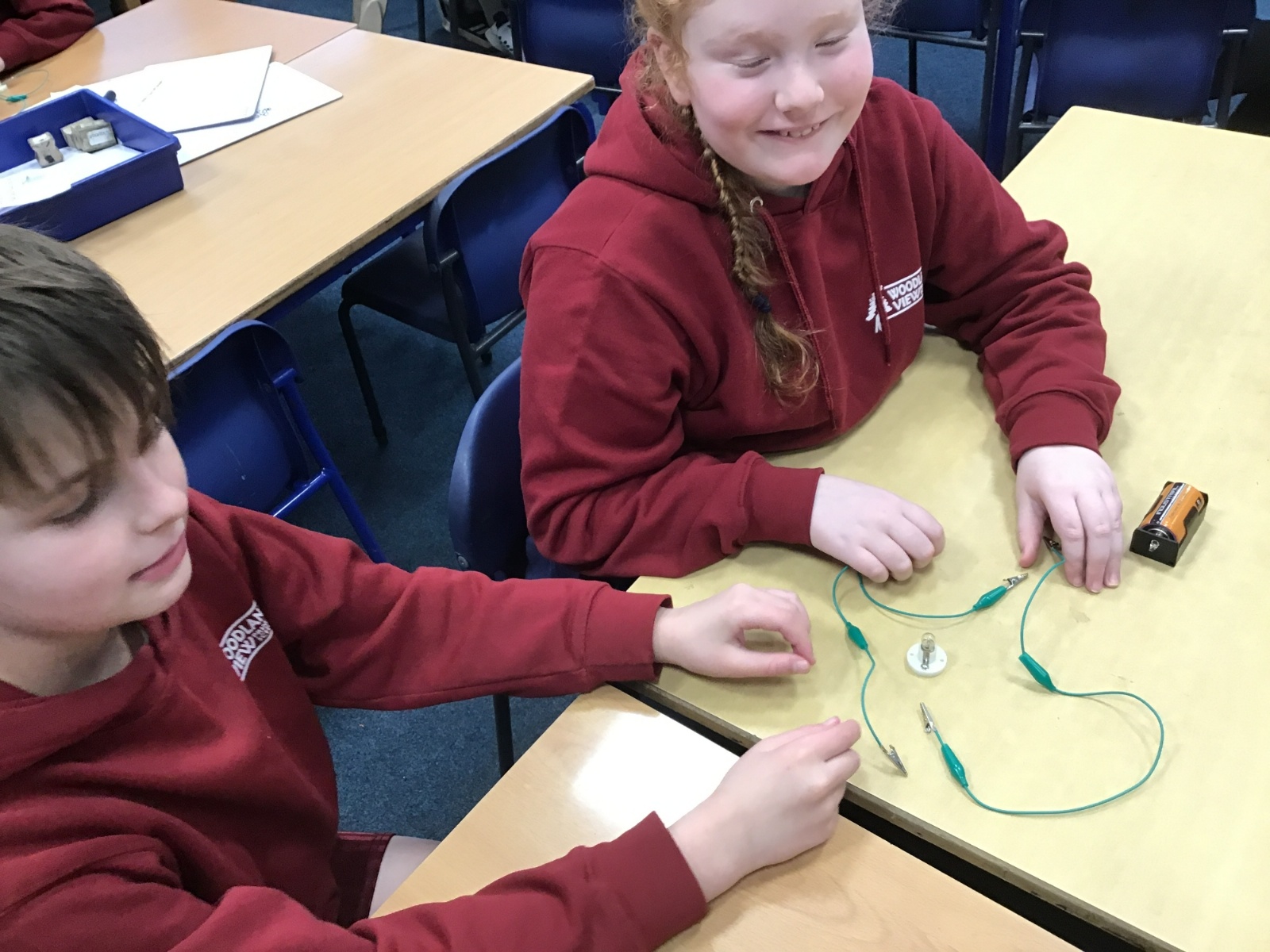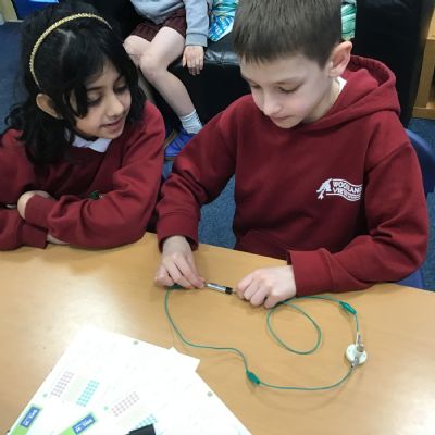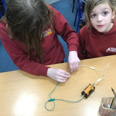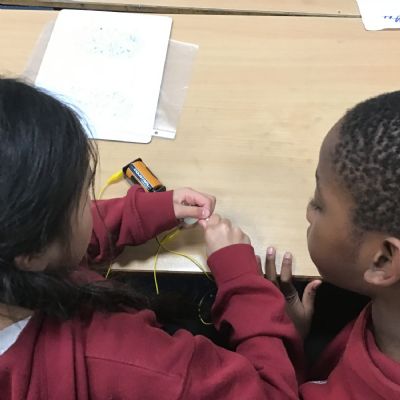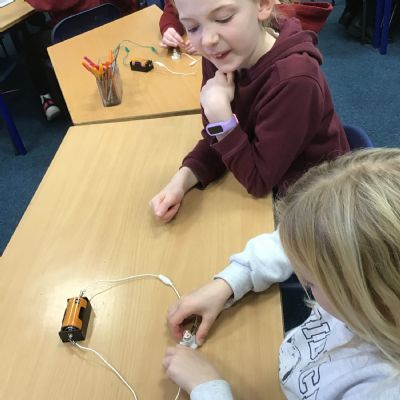 After talking about different electrical appliances last week in Science, this week we were given the challenge of making a light bulb light up. We had to create a simple circuit. We found out that you had to make a ‘circle’ with the wires so that the electricity could flow around the circuit. We also learnt that we needed a light bulb and an energy source, such as a battery, in the circuit to make the light light up.