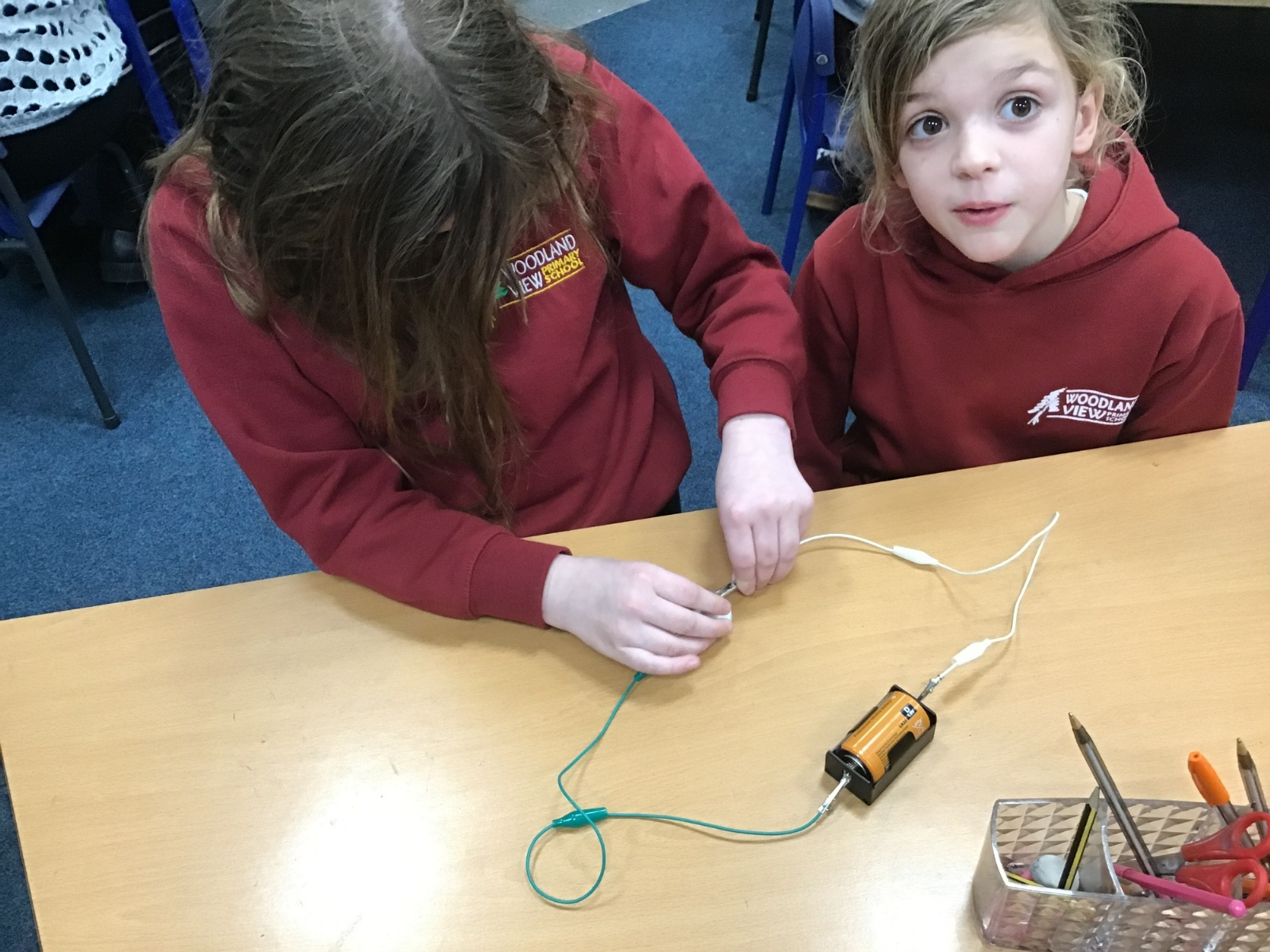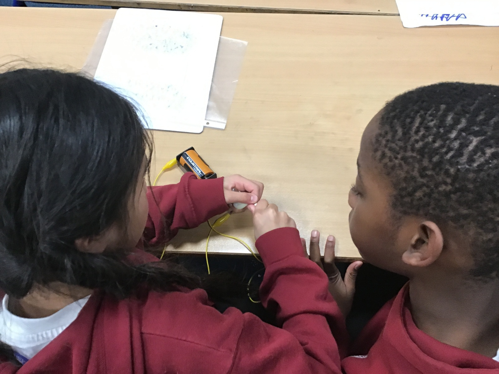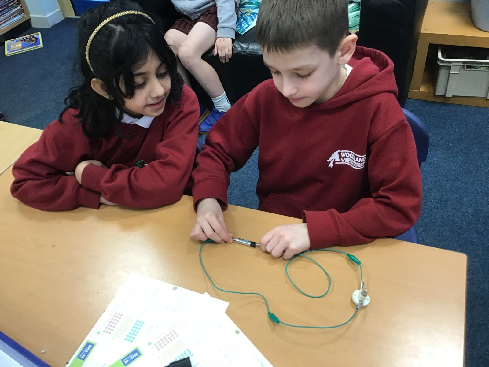 After talking about different electrical appliances last week in Science, this week we were given the challenge of making a light bulb light up. We had to create a simple circuit. We found out that you had to make a ‘circle’ with the wires so that the electricity could flow around the circuit. We also learnt that we needed a light bulb and an energy source, such as a battery, in the circuit to make the light light up.