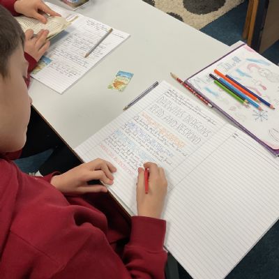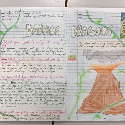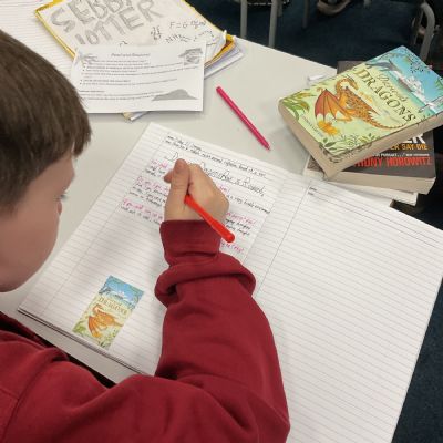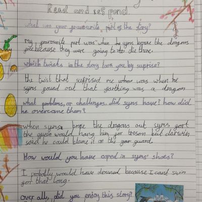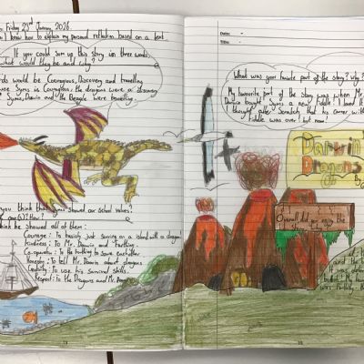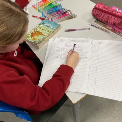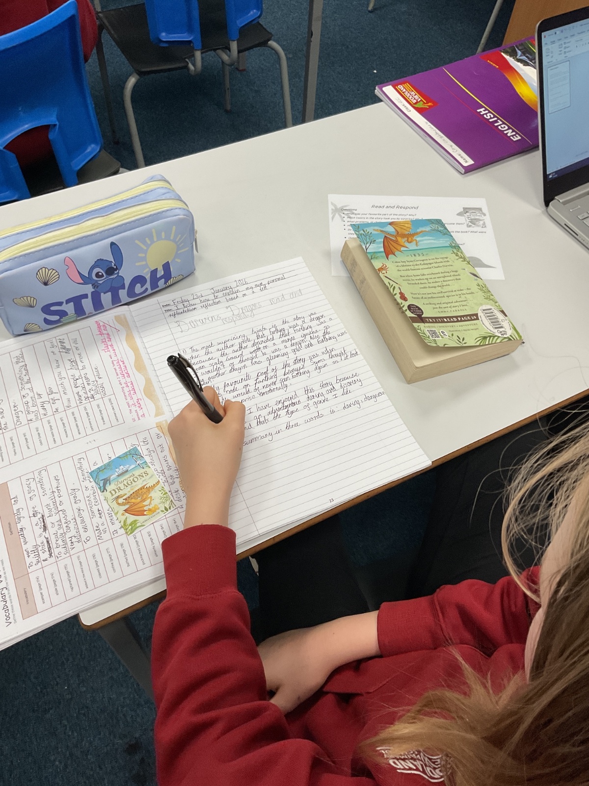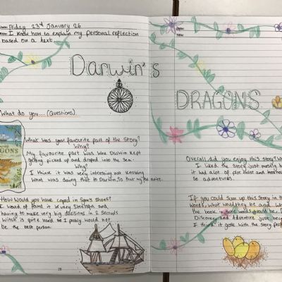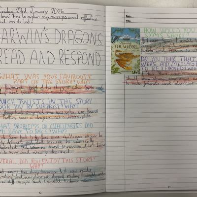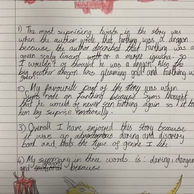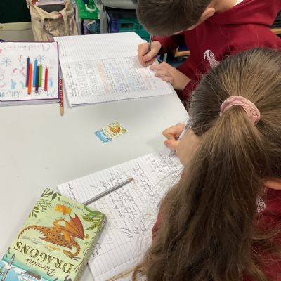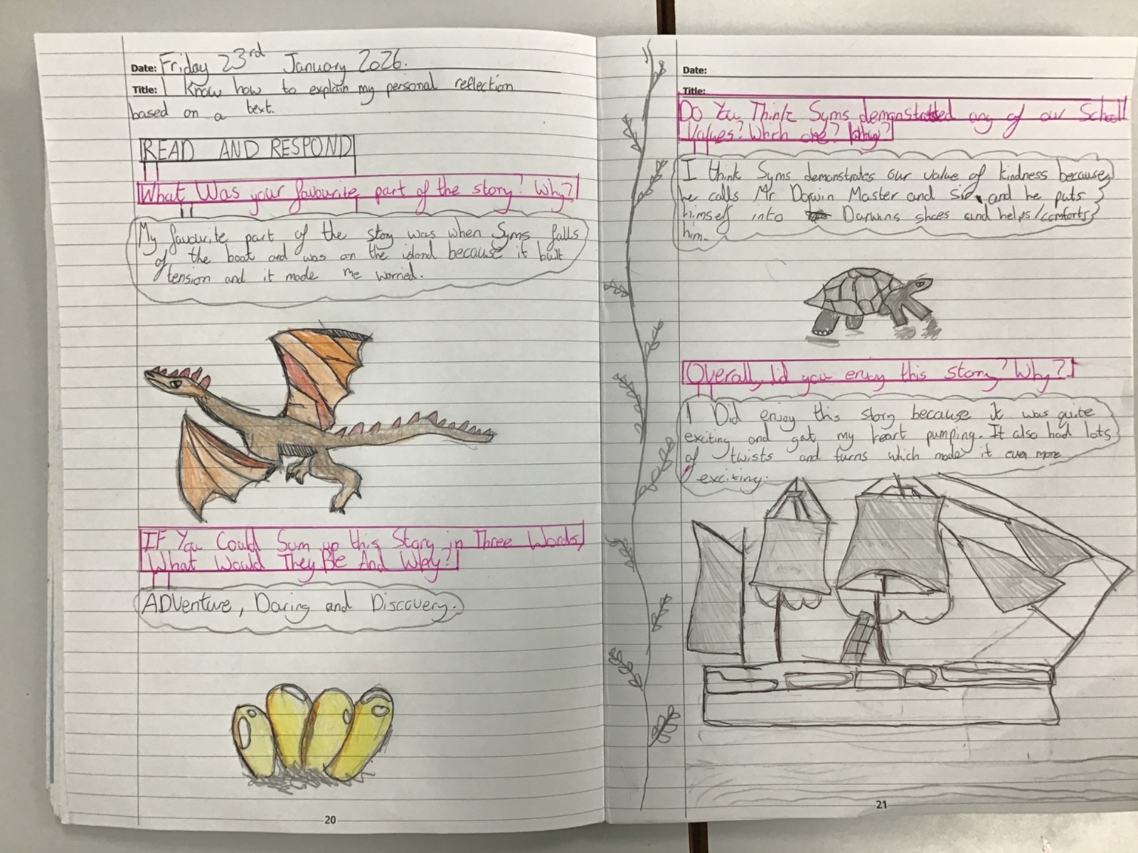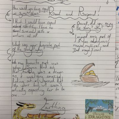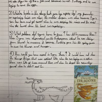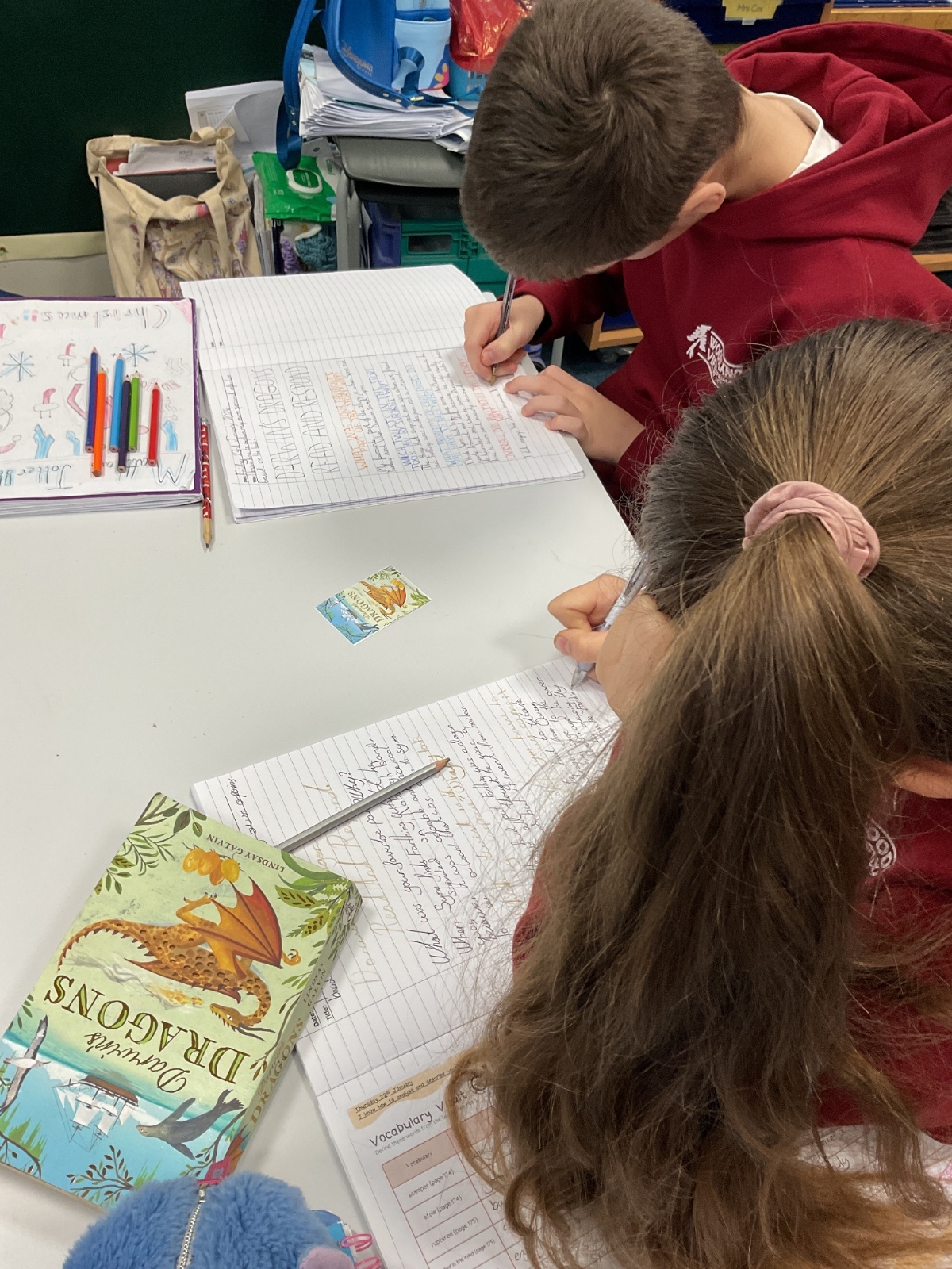 For the last three weeks, we have been really getting stuck into 'Darwin's Dragons' by Lindsay Galvin - a book that is so rich in vocabulary and adventure. Today, we reached the end after experiencing some 'wow' moments in those last few chapters. We then reflected on the book personally, considering whether we liked it, what the twists and turns were and how we might sum up this book in three words; we presented this is an eye-catching way in our books. It has been so lovely to really immerse ourselves in the whole book - even Mrs Cox had goose bumps on the final pages (and she has read it before)!