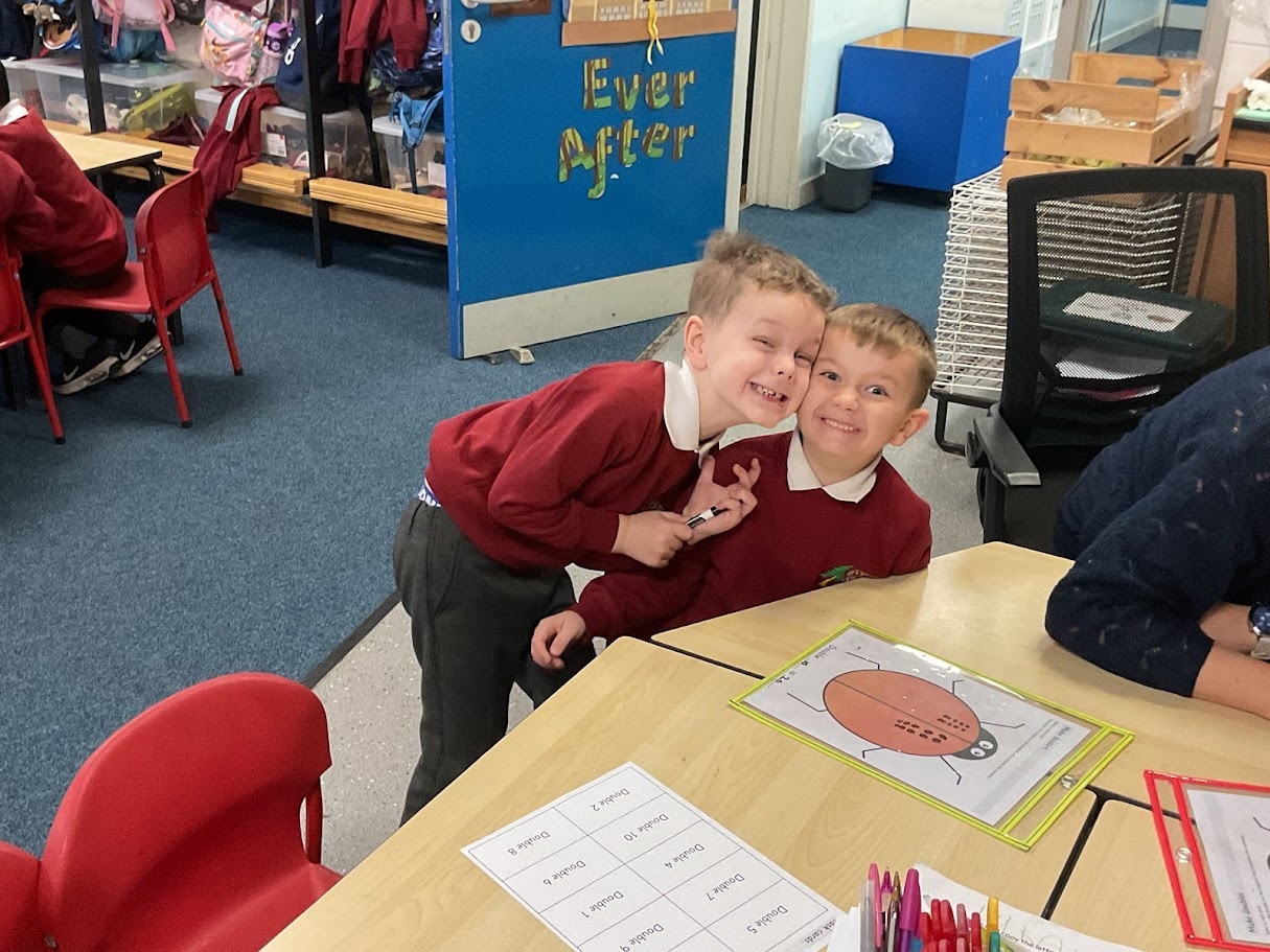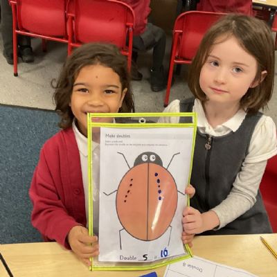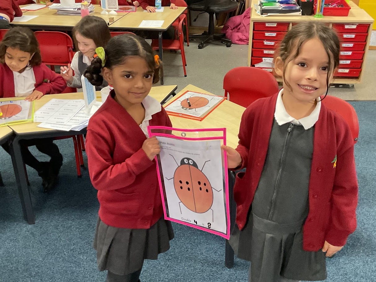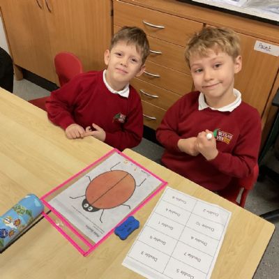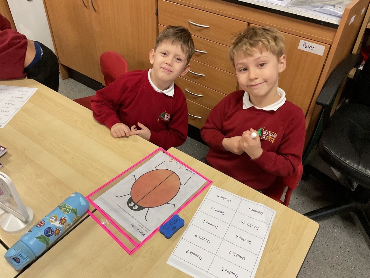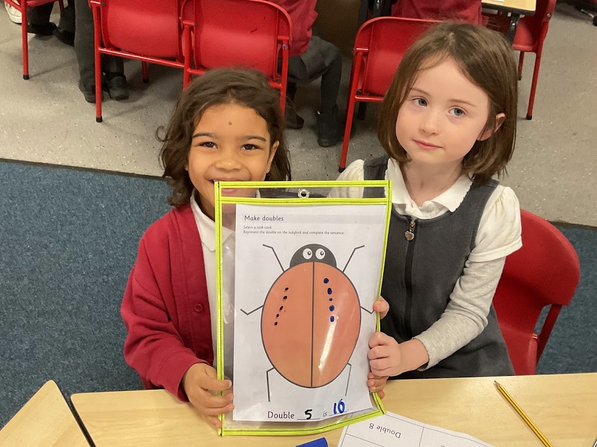 We found doubles by adding the same number of spots to each side of the ladybird. We counted carefully and noticed both sides had to match. This helped us see what double numbers look like and check our answers.