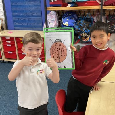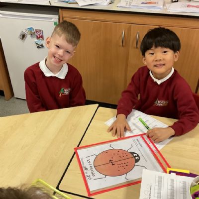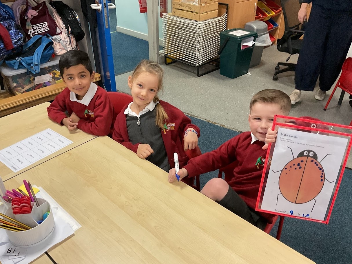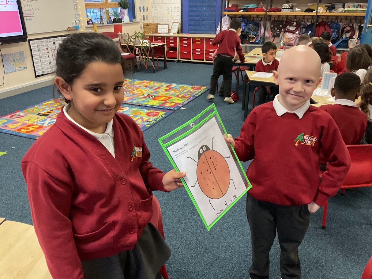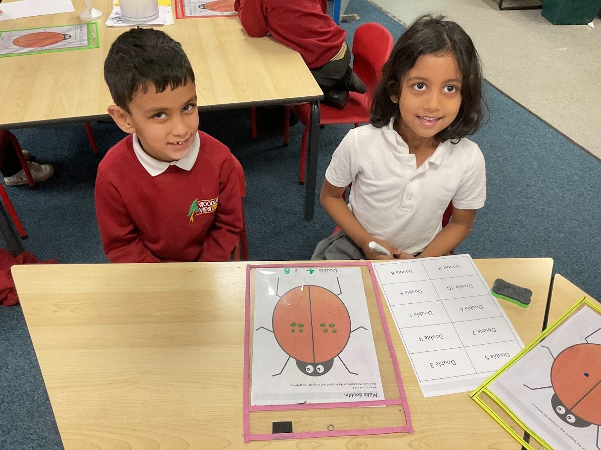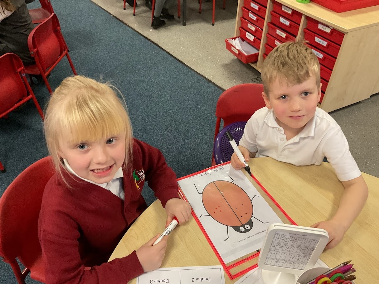 We found doubles by adding the same number of spots to each side of the ladybird. We counted carefully and noticed both sides had to match. This helped us see what double numbers look like and check our answers.