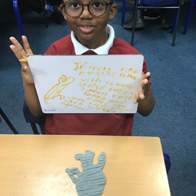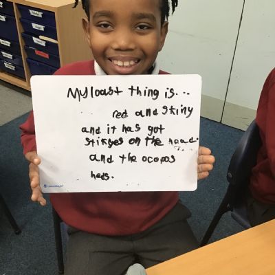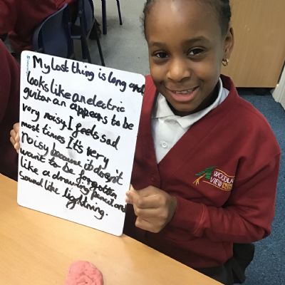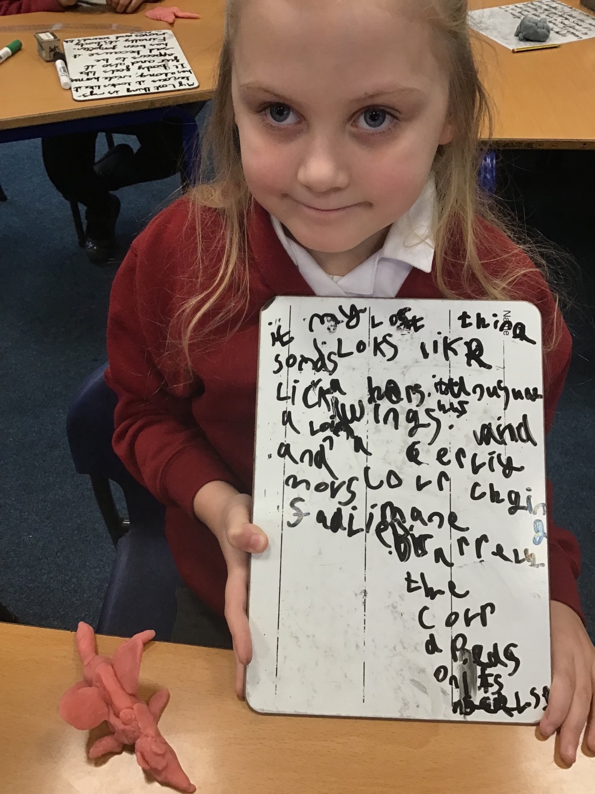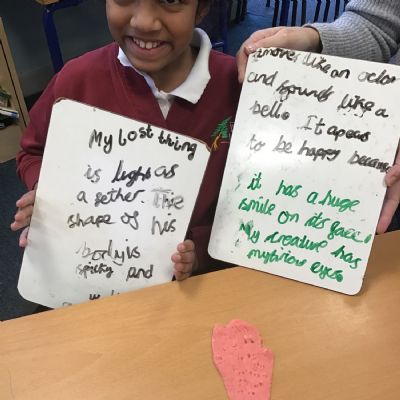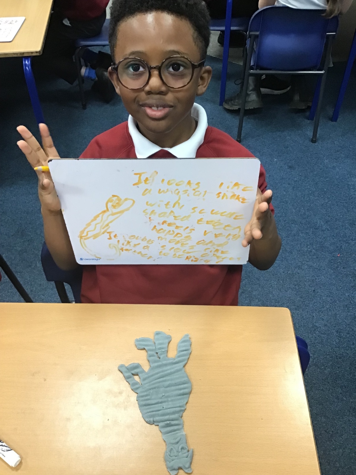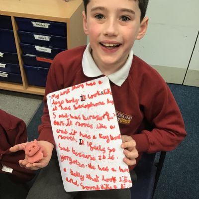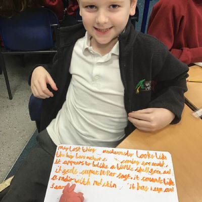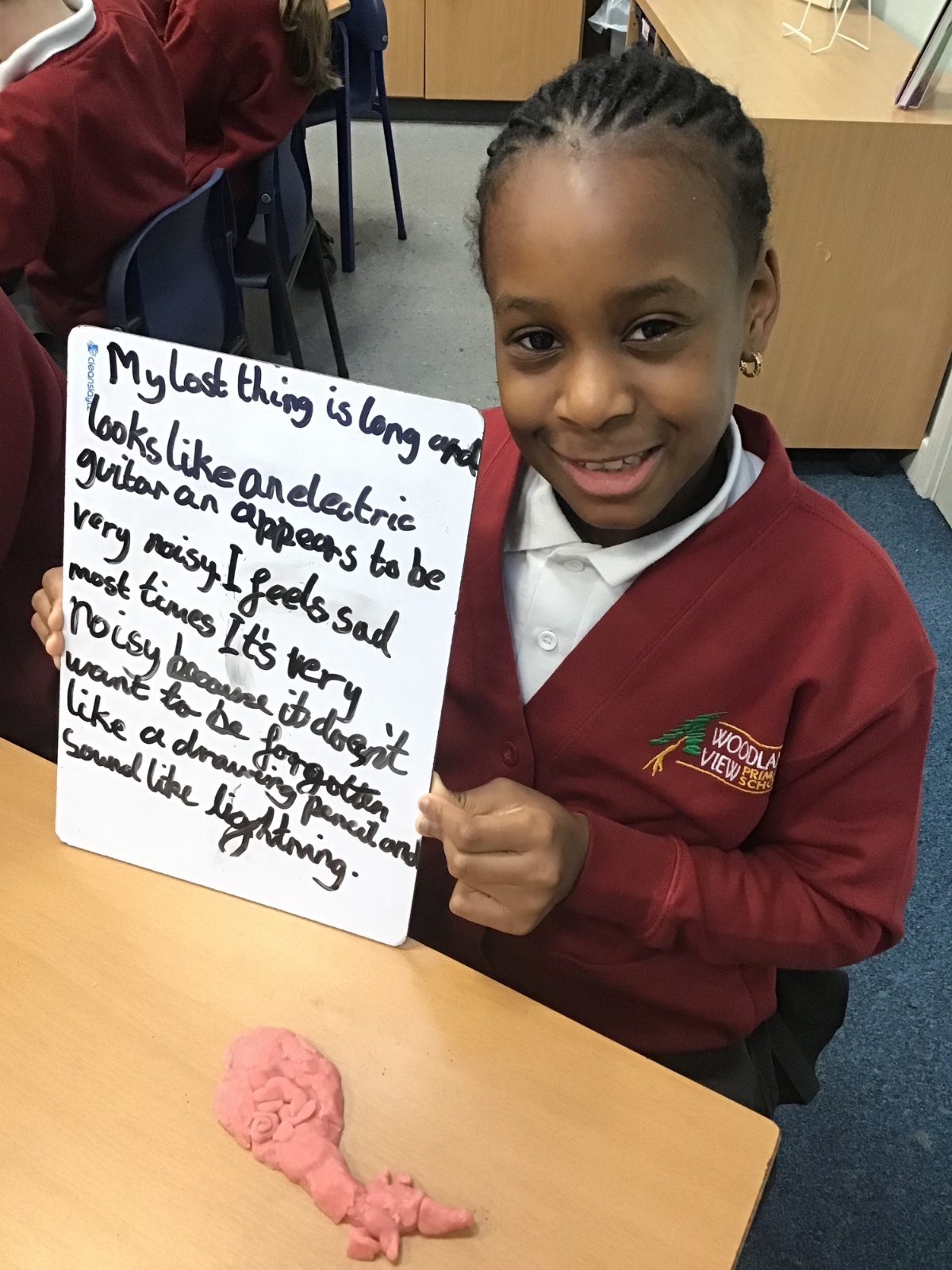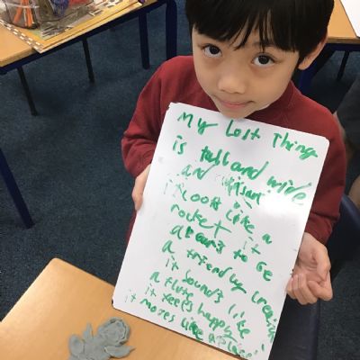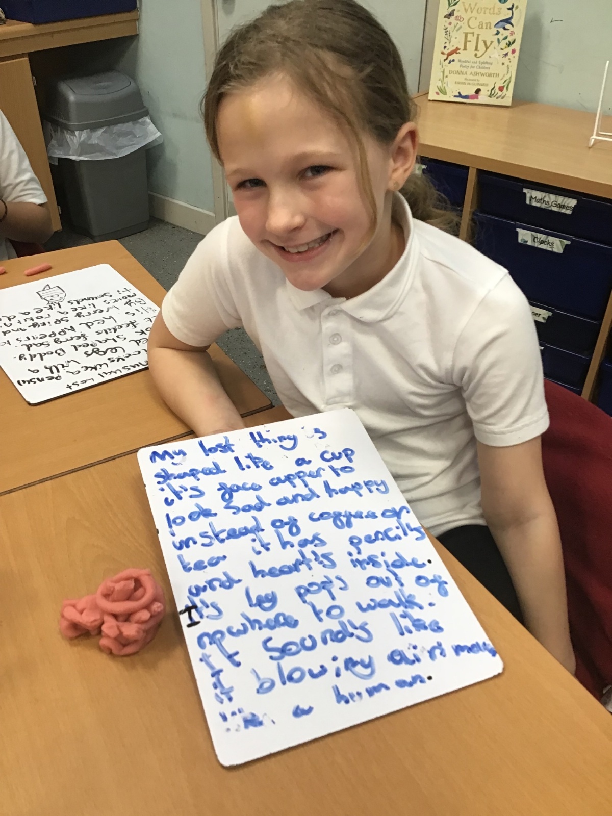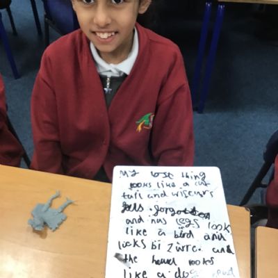 We have been using this term's class English book as a starting point to inspire us to create our own Lost Thing character. We recapped the story and looked at the different Lost Things in the book. Afterwards, we talked about the importance of detail when describing a character to give the reader a really clear picture of what the character is like both in appearance and personality. In Comprehension, we had to first read a description of a fictional character and draw what we thought it looked like based on the description. We then designed our own Lost Thing by writing a detailed description and using this, we were able to bring our character to life using playdoh.