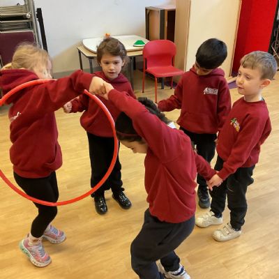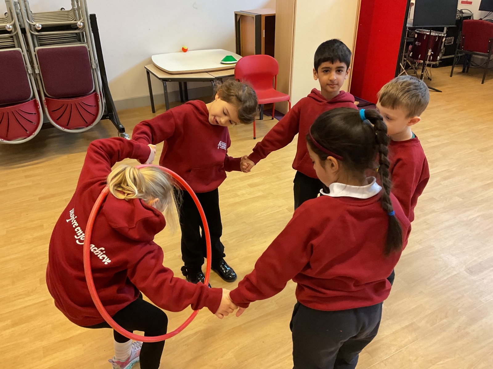 We continued our team building skills in PE by practising this classic game. All the teams managed to get the hoop around the circles without breaking the chain. Some fantastic communication, problem-solving and teamwork skills!