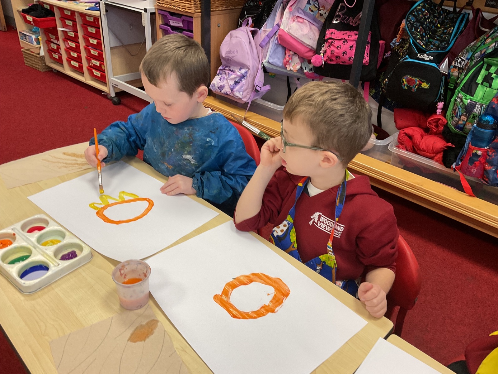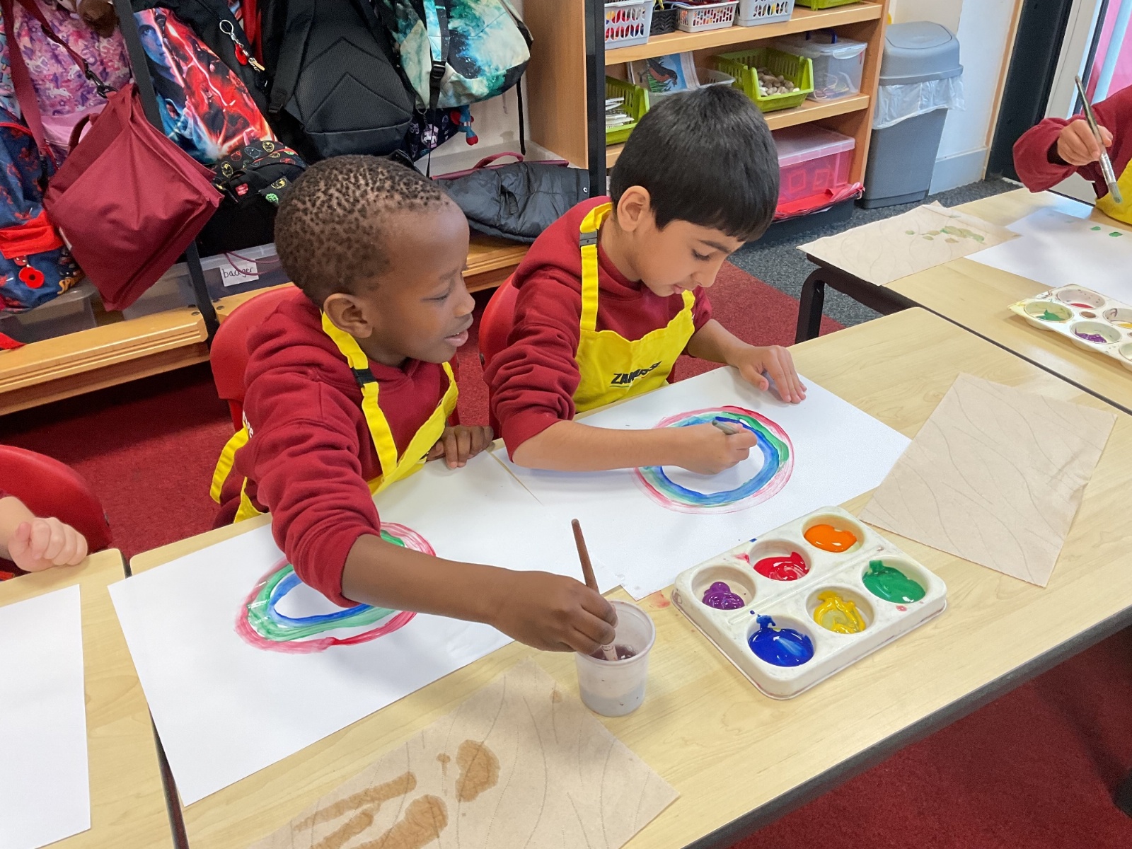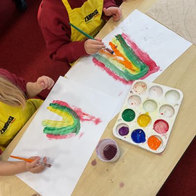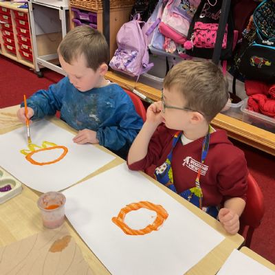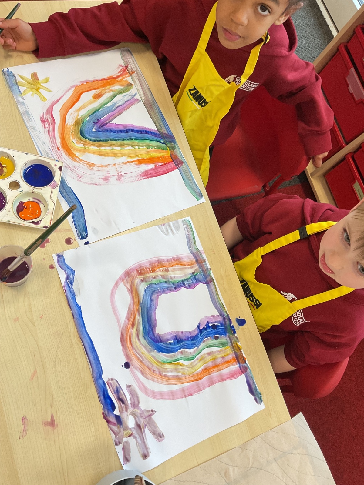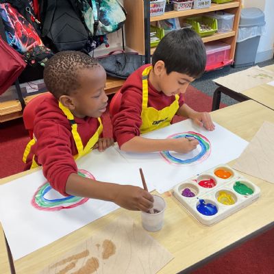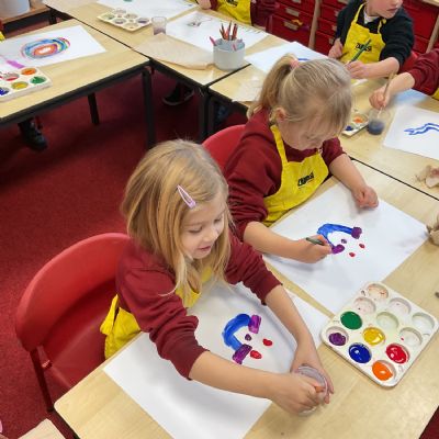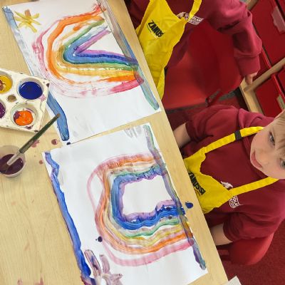 A great way to develop non-verbal communication. We partnered up to create some artwork with a difference. Each pair took it in turns to be the leader and apprentice. The leader painted a picture for the apprentice to copy, but they couldn't talk! With some careful steps, teamwork and concentration, each pair completed this tricky challenge and produced some amazing pieces of art.