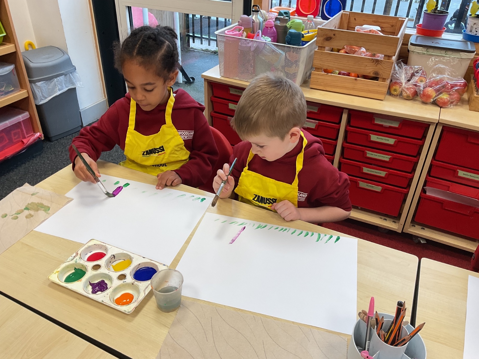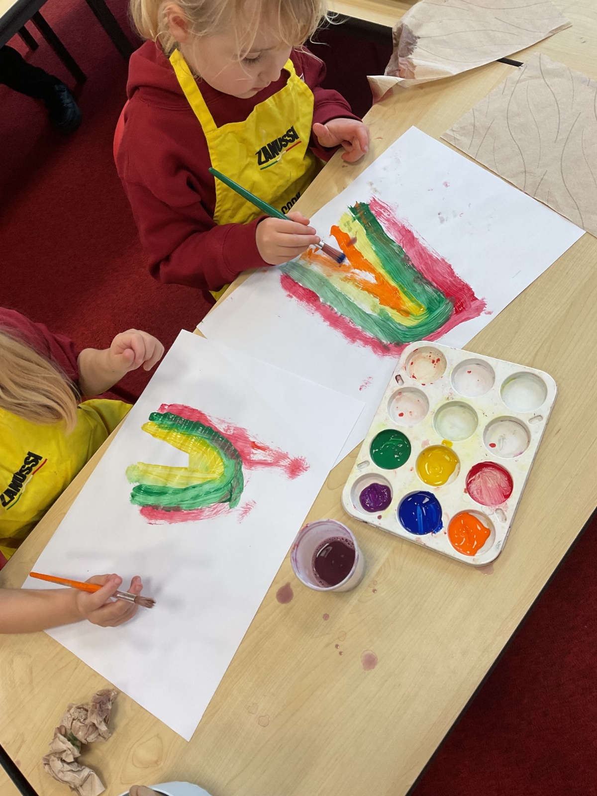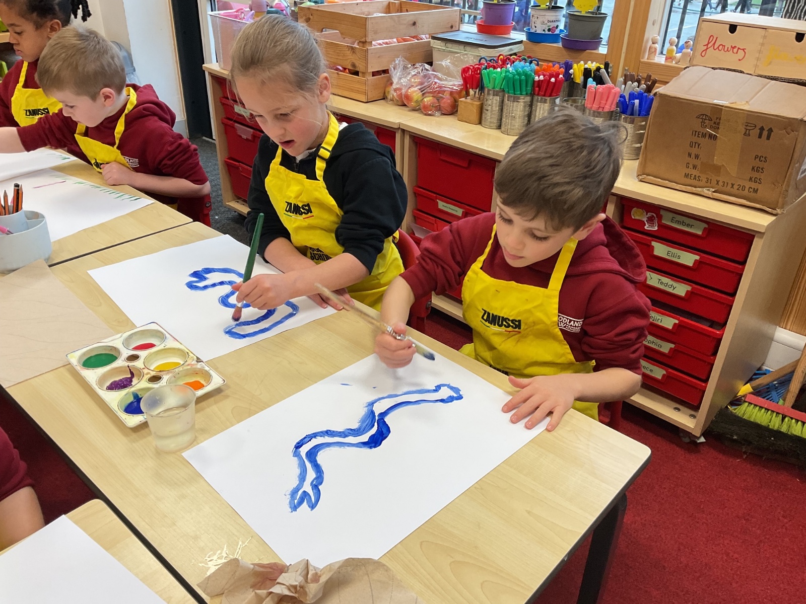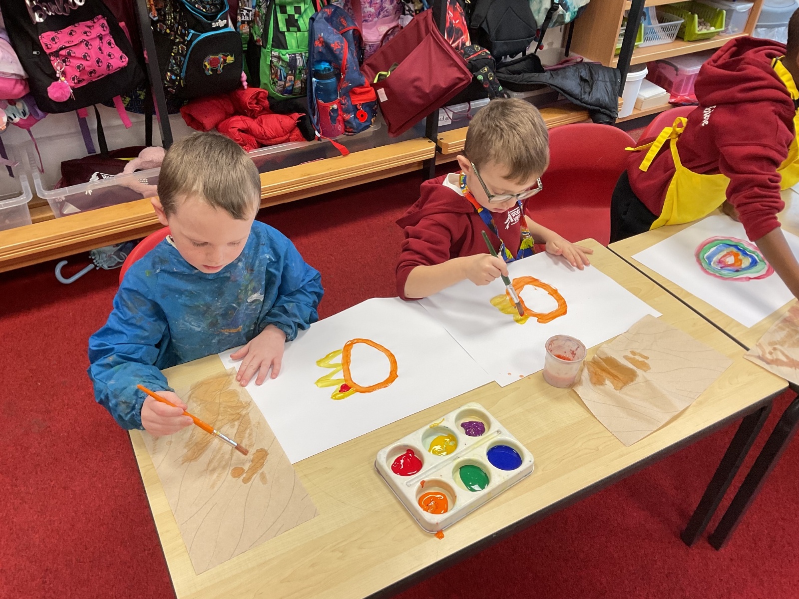 A great way to develop non-verbal communication. We partnered up to create some artwork with a difference. Each pair took it in turns to be the leader and apprentice. The leader painted a picture for the apprentice to copy, but they couldn't talk! With some careful steps, teamwork and concentration, each pair completed this tricky challenge and produced some amazing pieces of art.