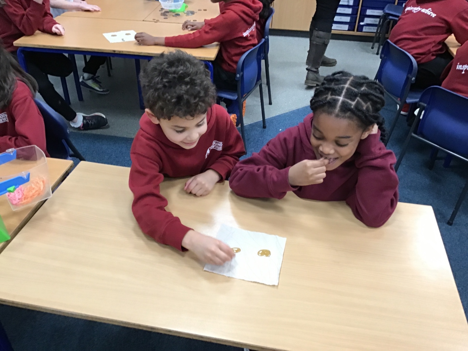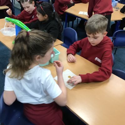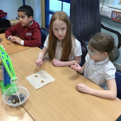 In RE we have been learning about how different religions welcome new babies. We talked about all the different ceremonies and how people also welcome babies who do not follow a religion. During our discussion around how babies are welcomed into Islam we got to have a go at weighing hair and gold as a gift to the poor and we got to try dates and honey as these are often put under the babies tongue too.