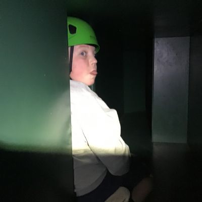 We began overground, then underground and wobbled-free into the Pioneer Centre's Caving hut. Lots of fun was had here, playing hide and seek in the dark and trying to fit through ever-decreasing spaces.