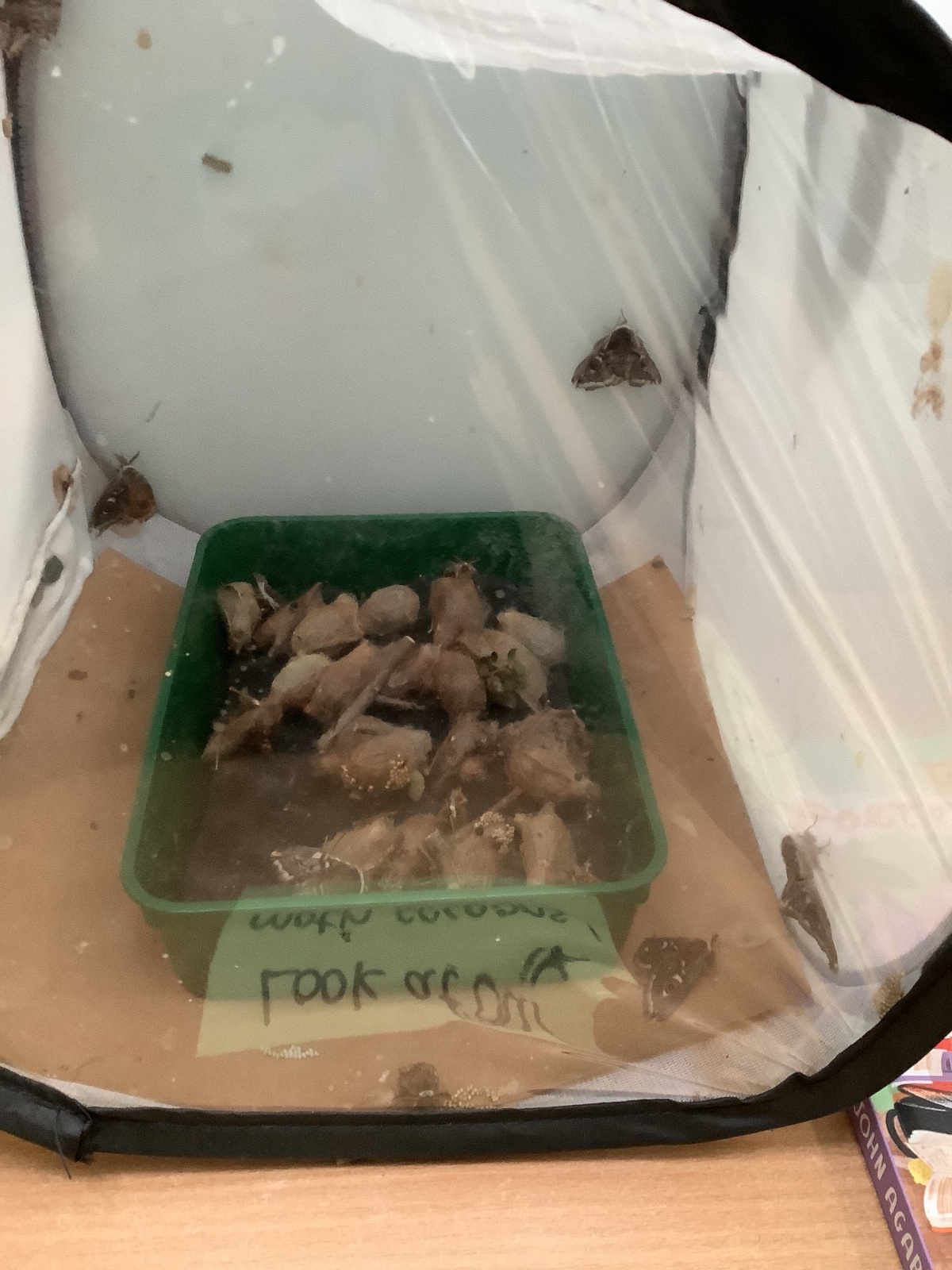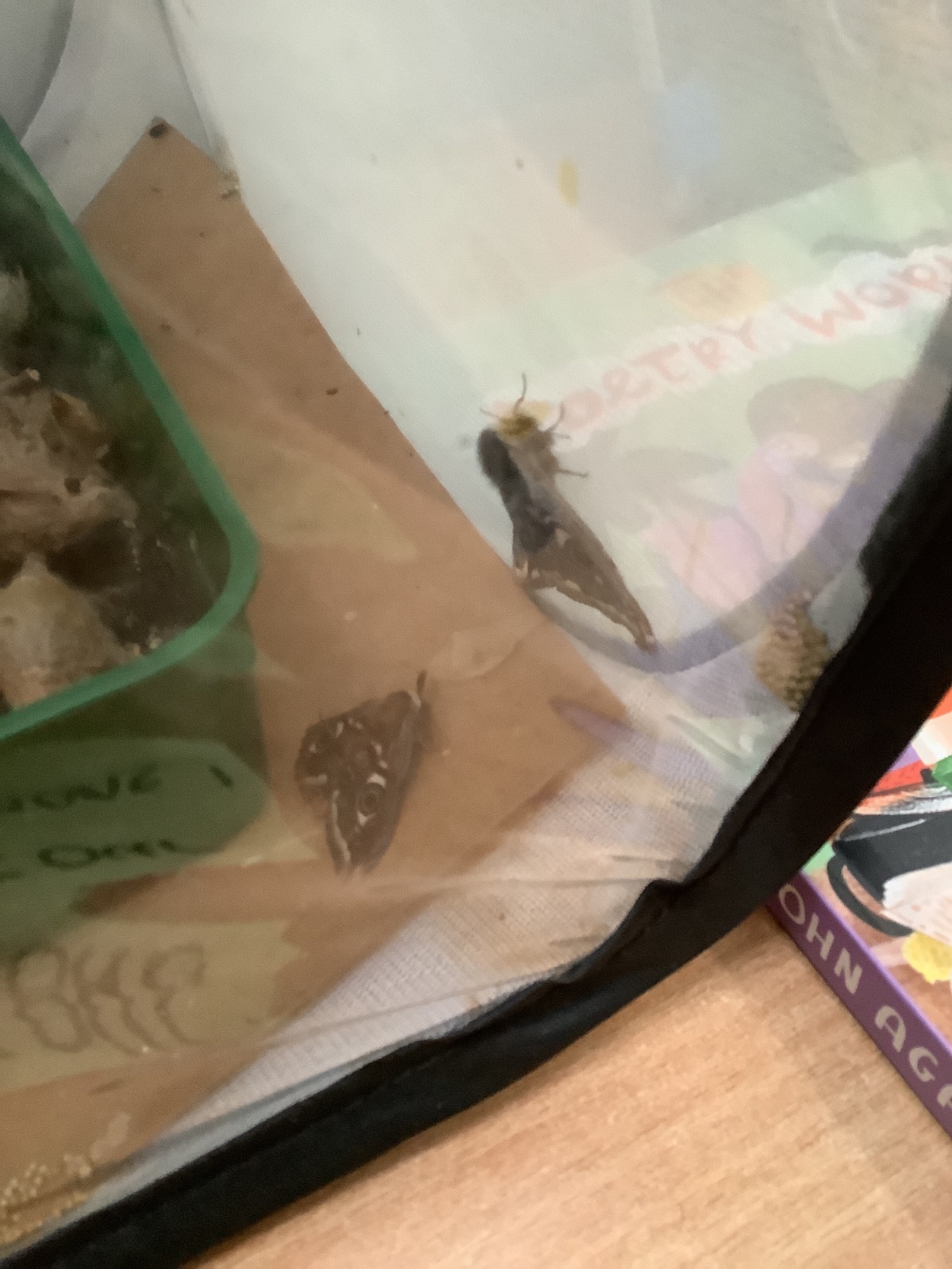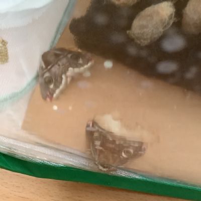 Last year, we successfully bred Emperor moth cocoons and after 7 months it was time to take the cocoons out of the cold to warm up and hopefully emerge. This week many of the cocoons have hatched and out emerged the beautiful Emperor moths. The moths do not live for long as their only role is to reproduce, so we also have many eggs ready to hatch in the next few weeks into caterpillars.