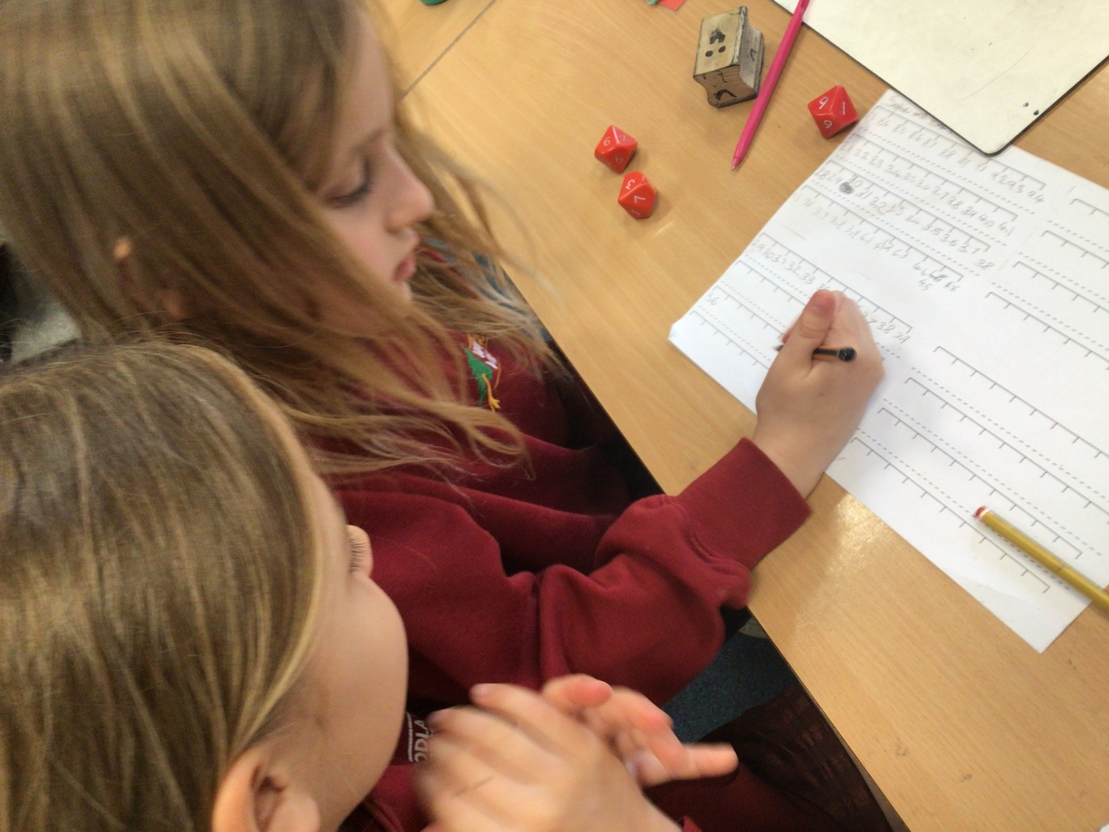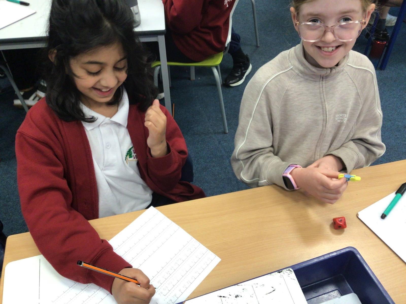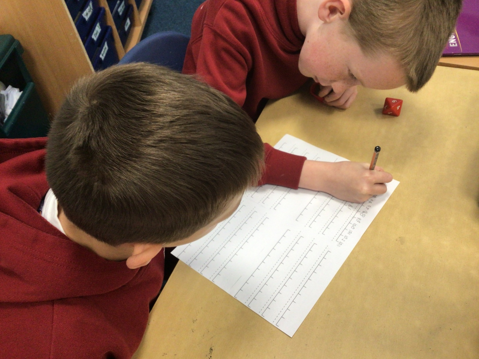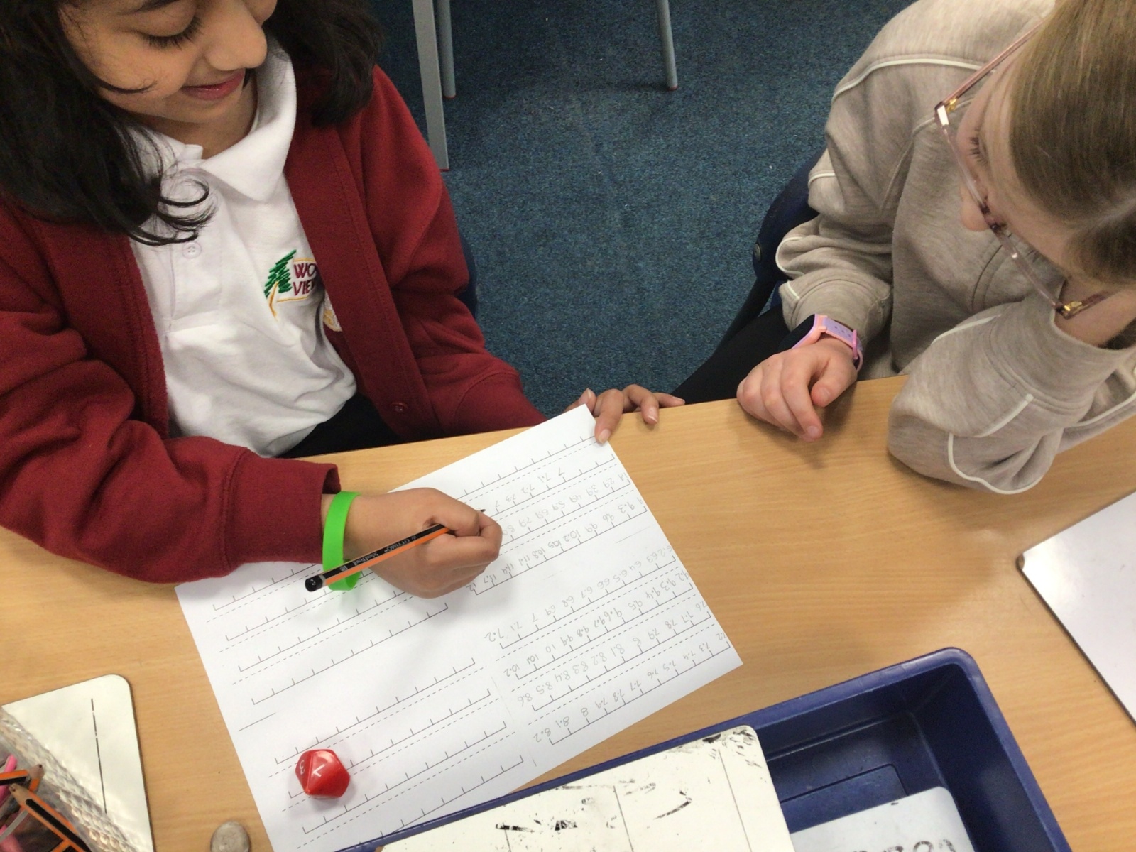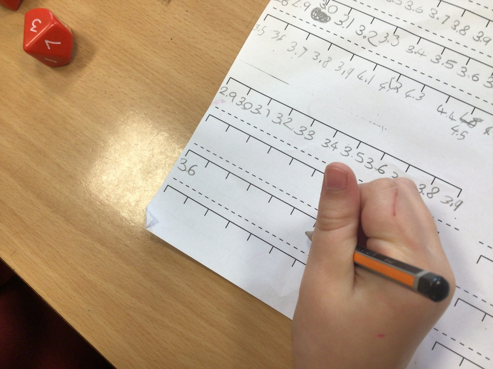 Today in Maths, we were positioning numbers with one decimal place on a number line. We worked in pairs. The first person rolled a die to create a number with one decimal place and wrote it on a marker on the blank number line. The second person then had to complete the number line, counting up and down in tenths. The children were amazing at this and were able to challenge each other by placing the number at different positions on the number line and suggesting that the number line went up in intervals that were greater than one tenth too. Some children were even able to relate this to our previous learning on improper fractions and mixed number fractions.