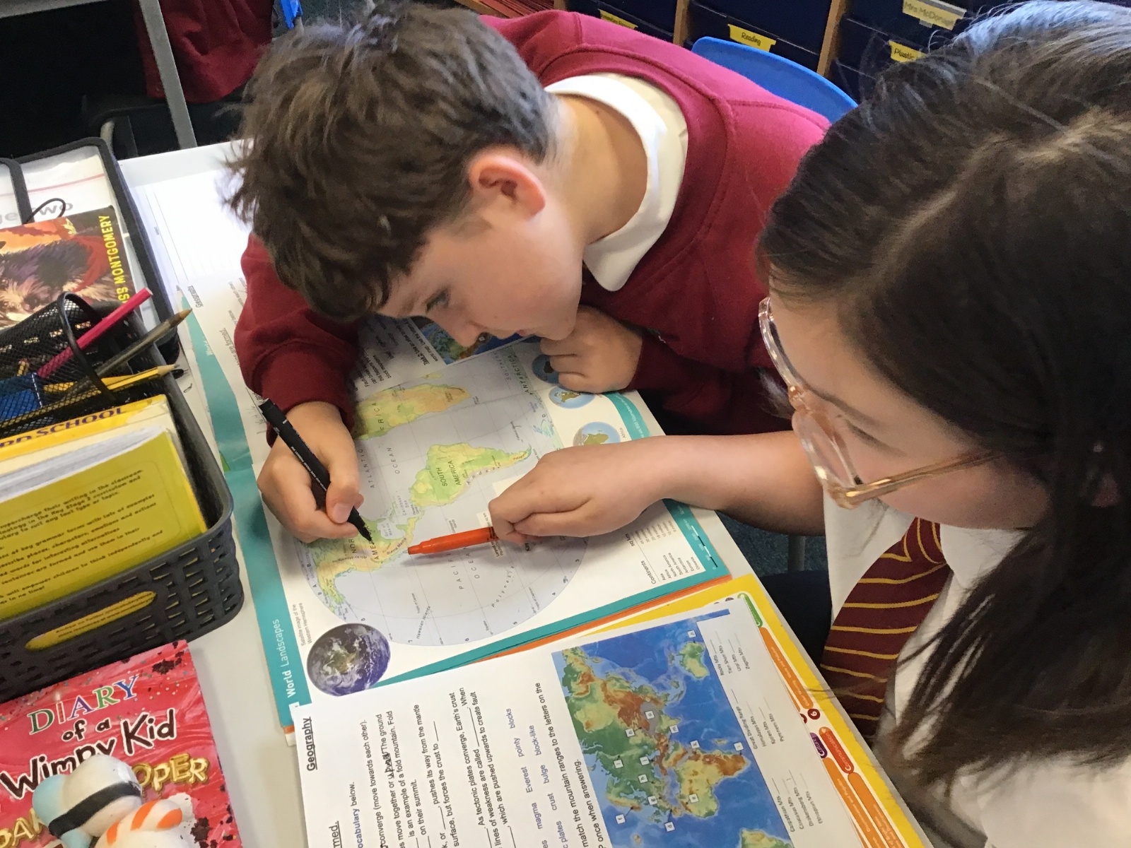 It was wonderful to see the children demonstrating cooperation and working together to locate the different mountain ranges in the atlases; super work Year 6!