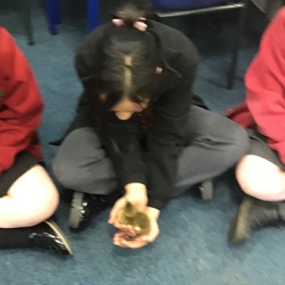 There has been so much love and excitement in the classroom for our new little fluffy friends today it has been wonderful for us all to be a part of. The children came in and were met with two beautiful ducklings inside the incubator. We knew they needed to be left to warm up and for their feathers to dry out before we moved them to their new home. They began the day as very calm and quiet little friends but by the afternoon, they were very chatty and joining in with our lesson with loud chirping which was very cute. We decided they were ready for a cuddle just before home time and the children were beyond excited to give them one. We talked about how to handle them carefully and safely and how to wash our hands thoroughly afterwards. What an incredible day!