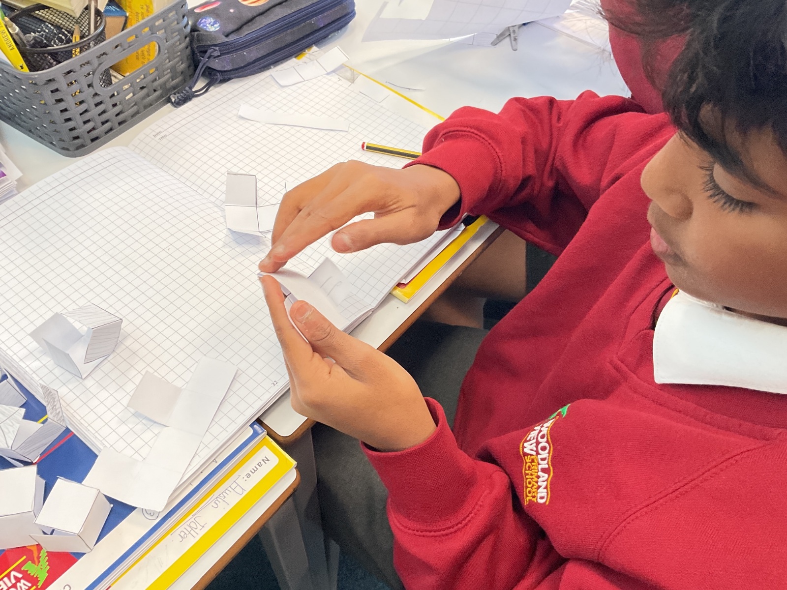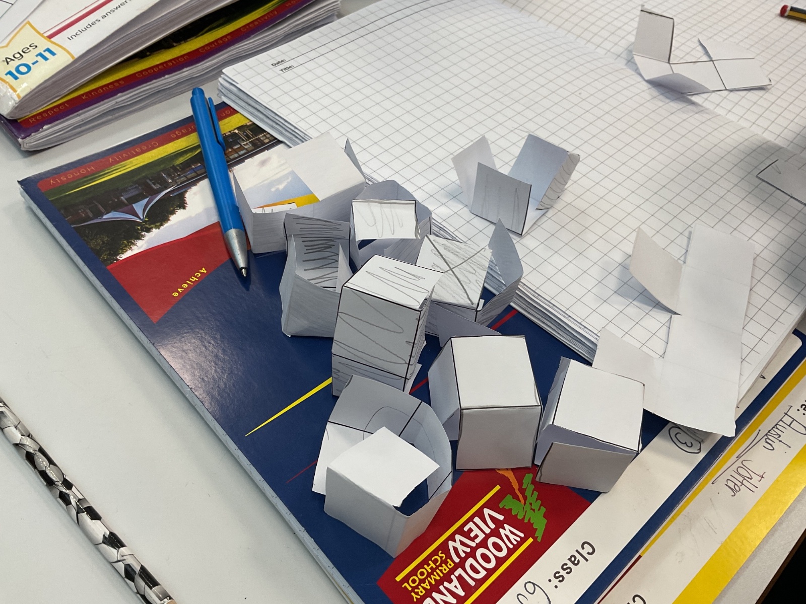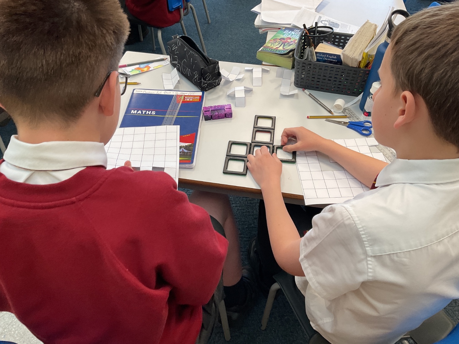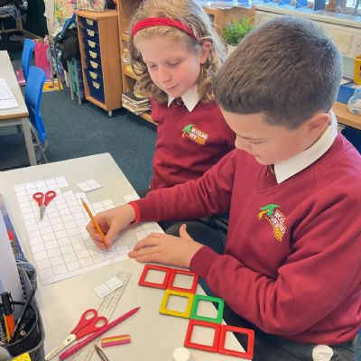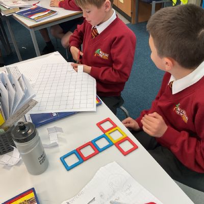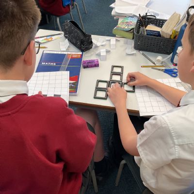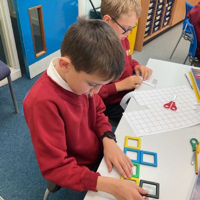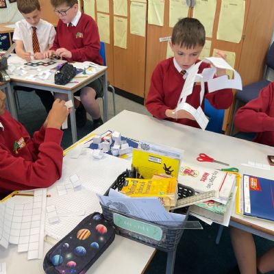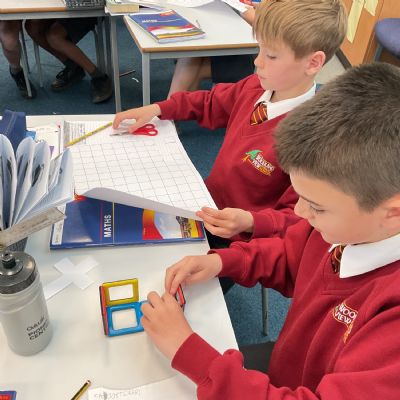This week, we have continued our work on shape. This morning, we thought carefully about the properties of our 3D shapes, in terms of vertices, edges and faces. We played a little matching game to match the nets to the 3D shapes. We then investigated the nets of a cube. We knew that there were 11 possibilities, we just had to figure them out. Using squared paper and magnetic polydron, we tried to find all of the different possibilities. Some of us managed to find 10 of them! Great investigating year 6!