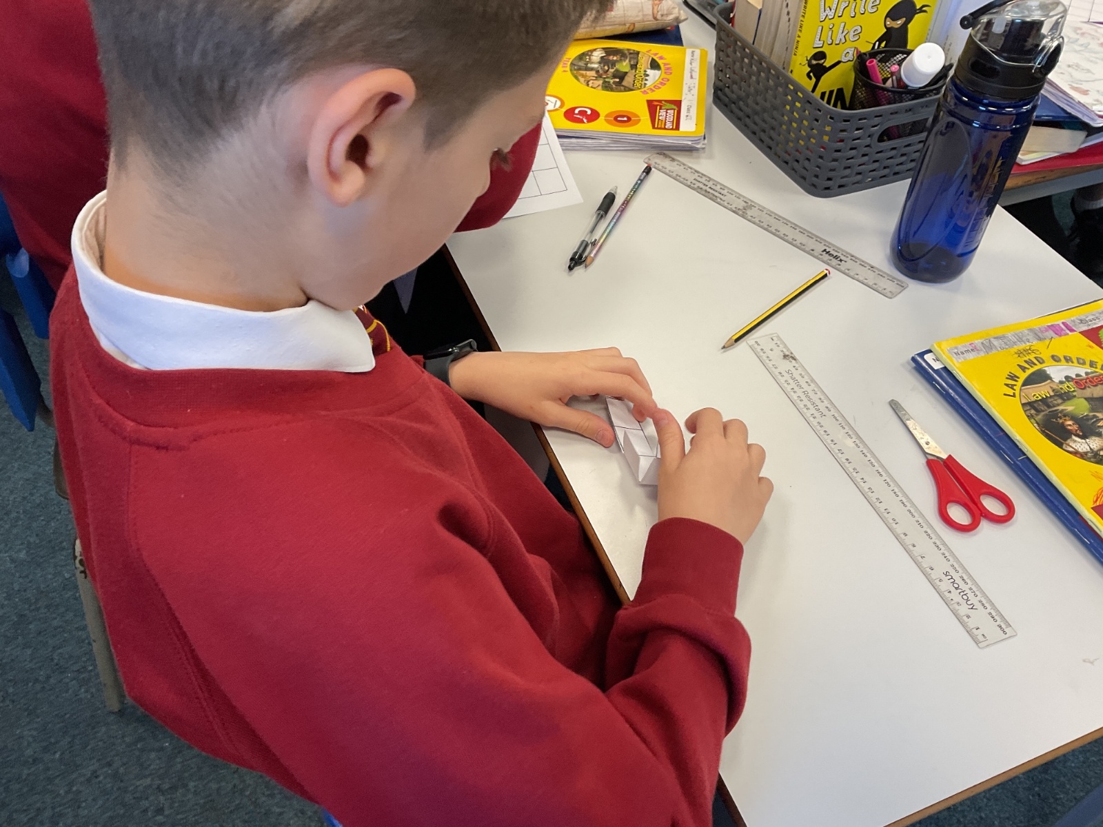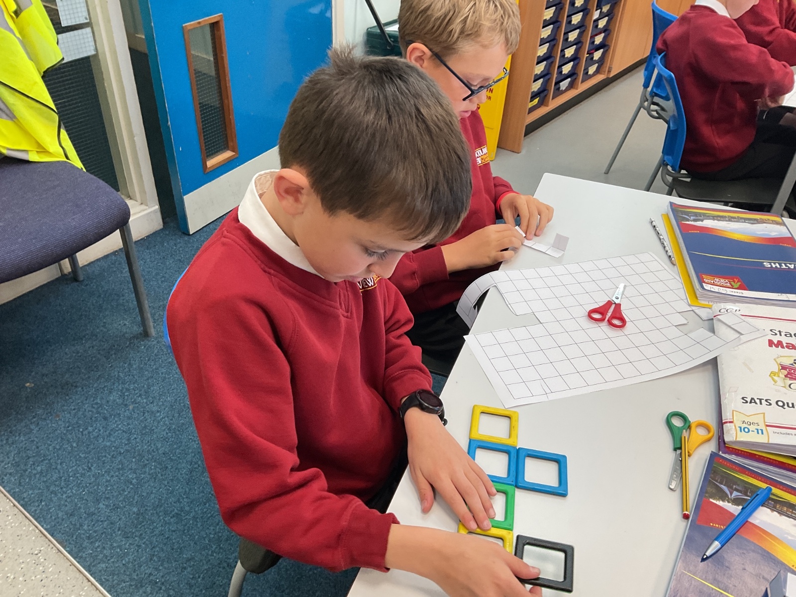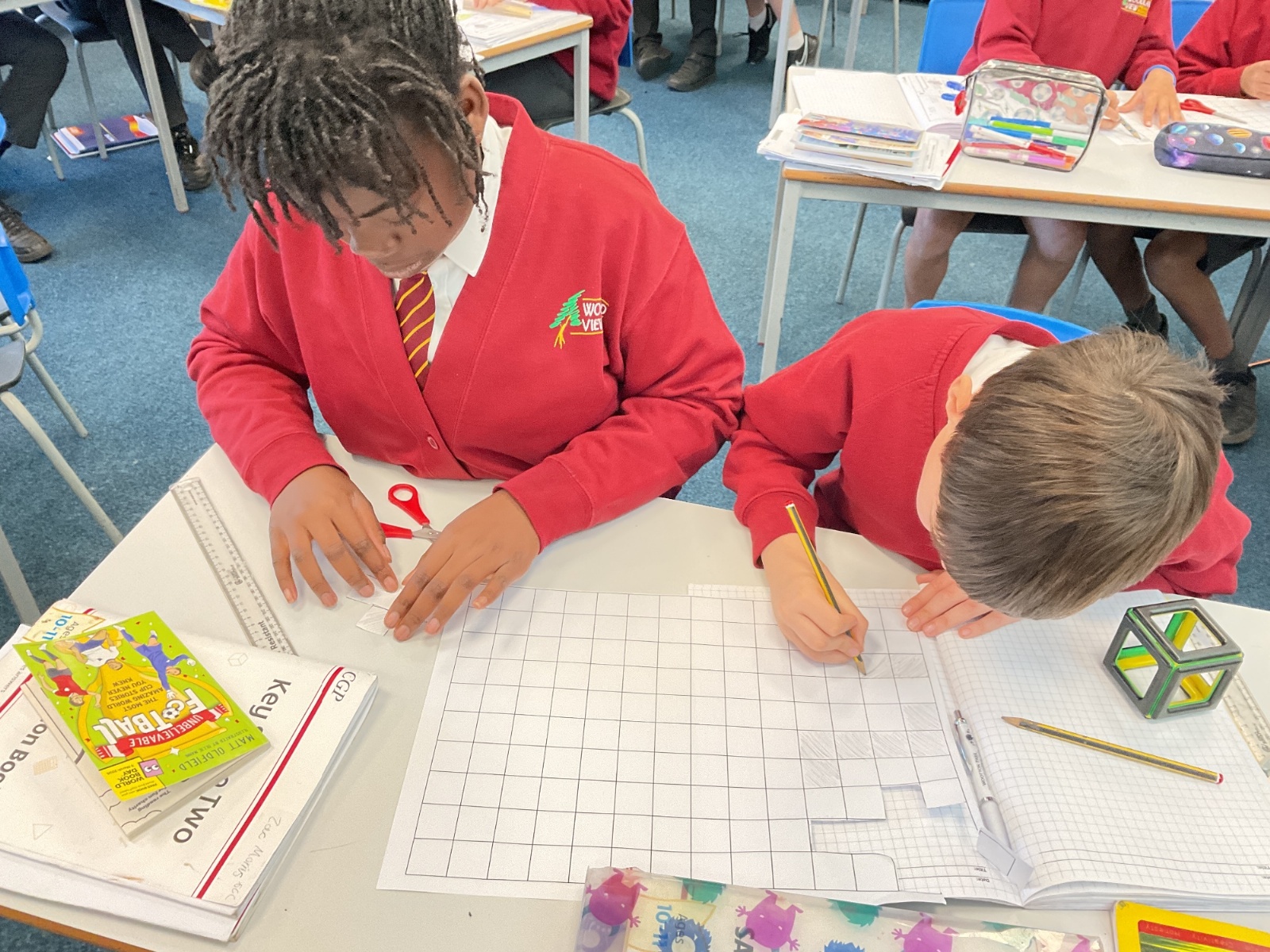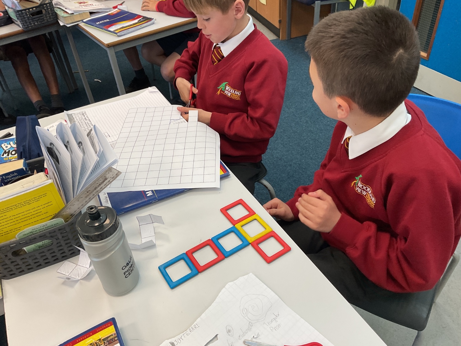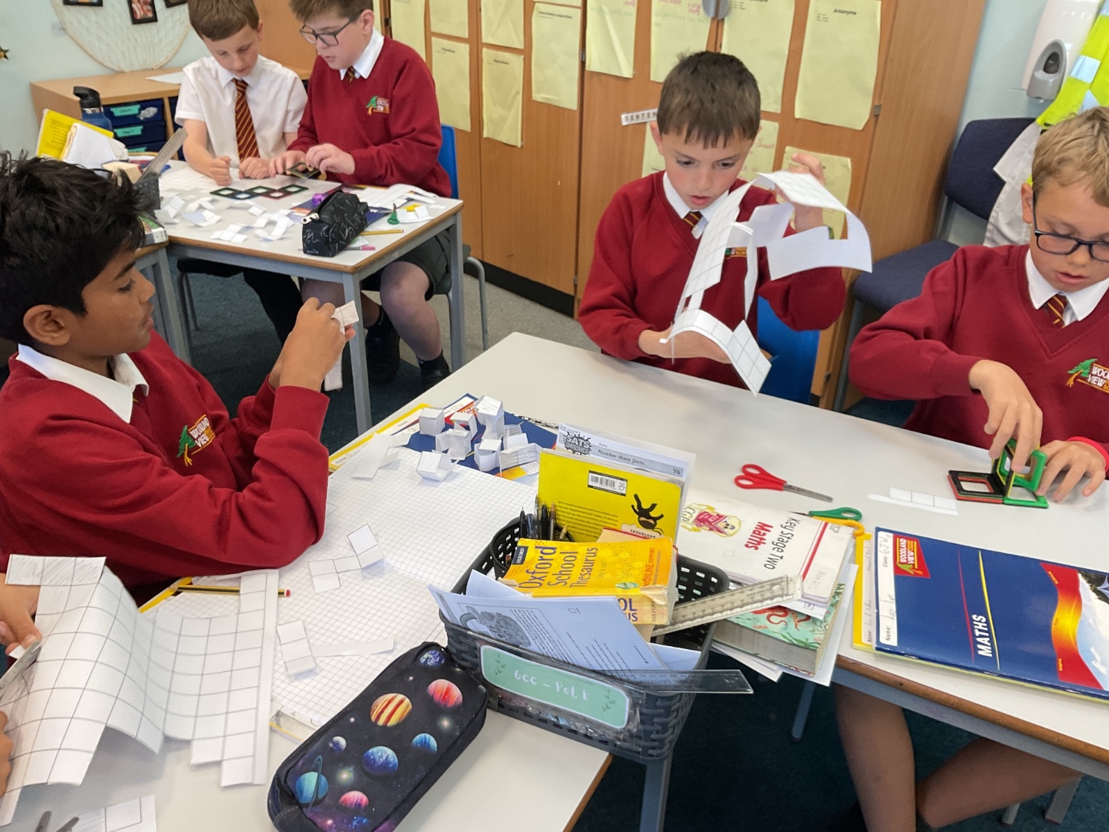This week, we have continued our work on shape. This morning, we thought carefully about the properties of our 3D shapes, in terms of vertices, edges and faces. We played a little matching game to match the nets to the 3D shapes. We then investigated the nets of a cube. We knew that there were 11 possibilities, we just had to figure them out. Using squared paper and magnetic polydron, we tried to find all of the different possibilities. Some of us managed to find 10 of them! Great investigating year 6!