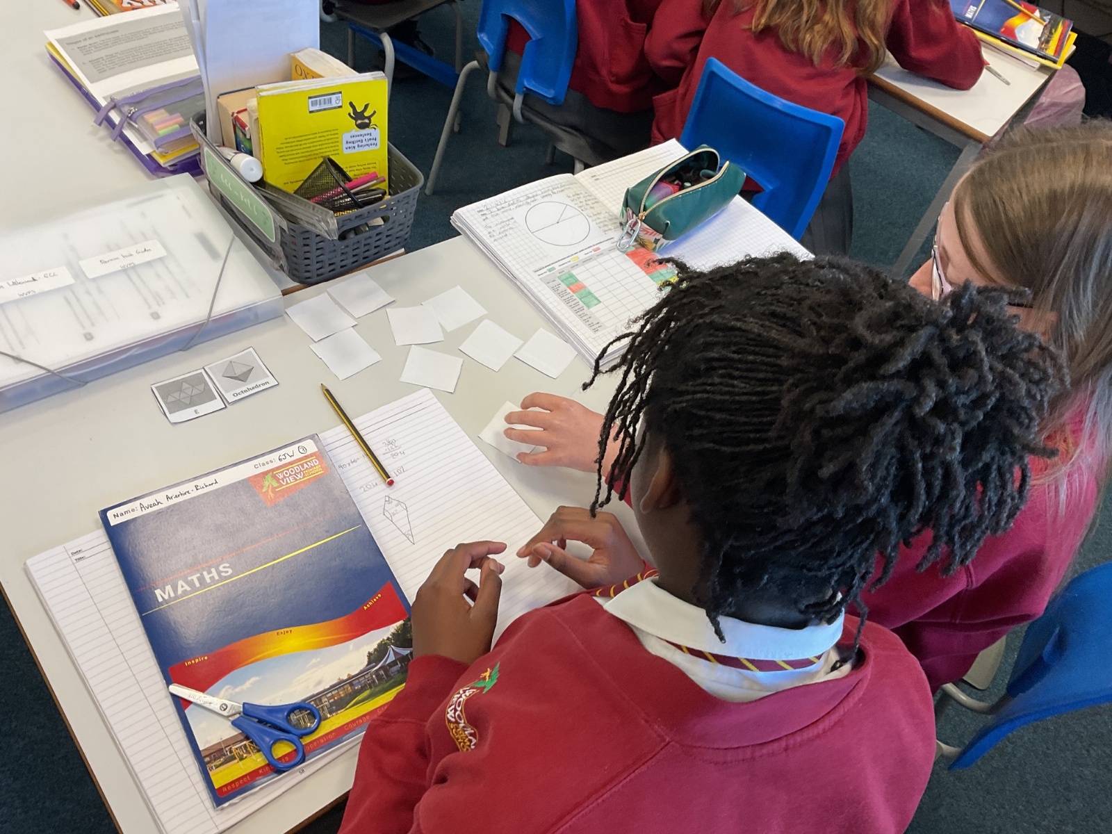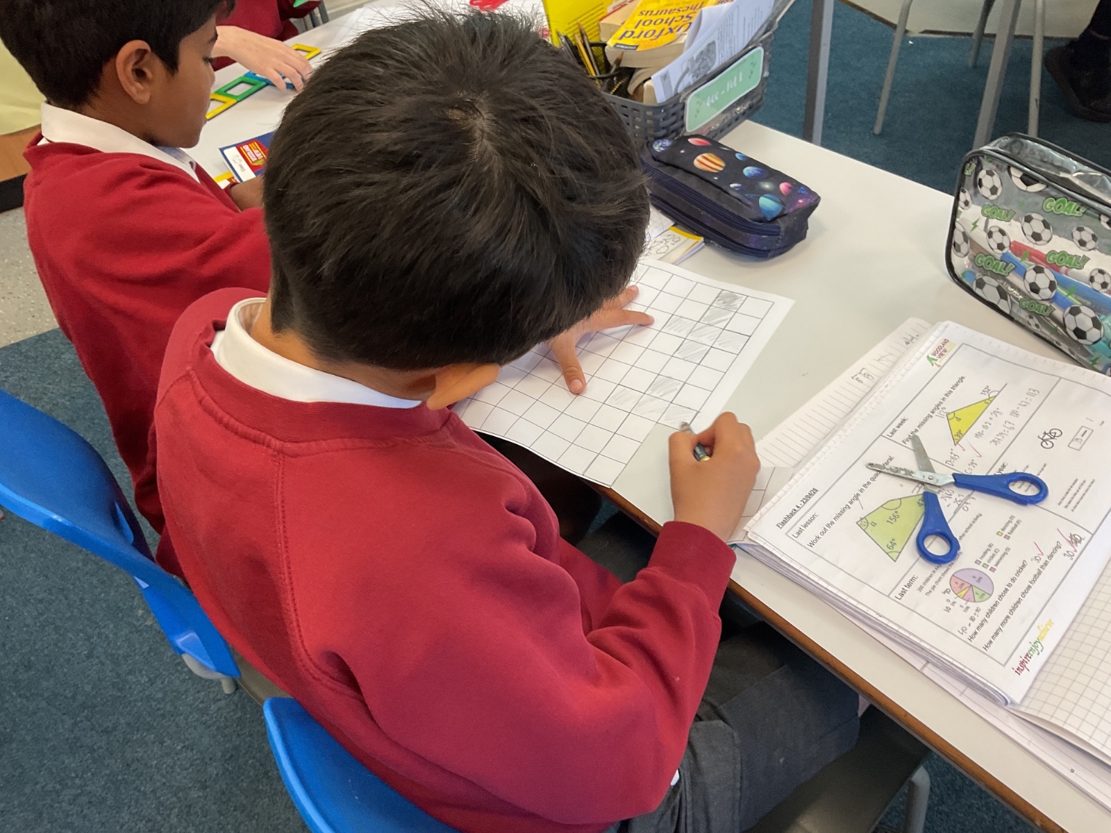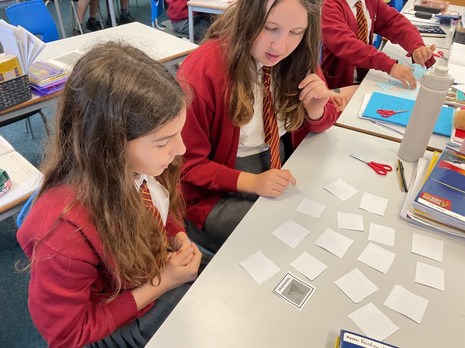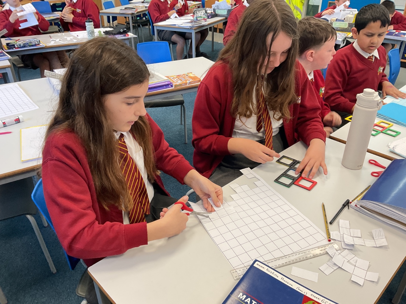 This week, we have continued our work on shape. This morning, we thought carefully about the properties of our 3D shapes, in terms of vertices, edges and faces. We played a little matching game to match the nets to the 3D shapes. We then investigated the nets of a cube. We knew that there were 11 possibilities, we just had to figure them out. Using squared paper and magnetic polydron, we tried to find all of the different possibilities. Some of us managed to find 10 of them! Great investigating year 6!