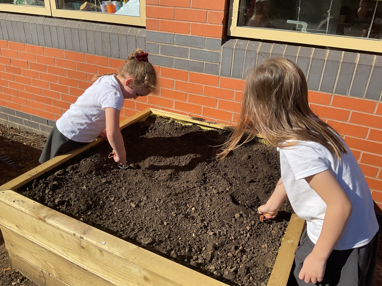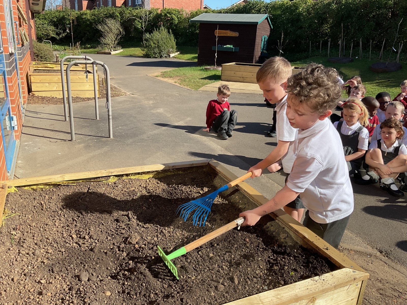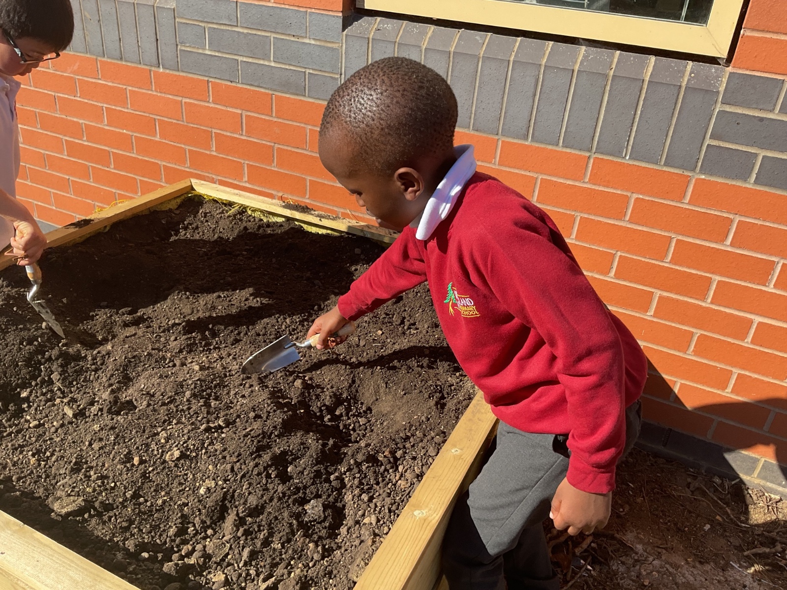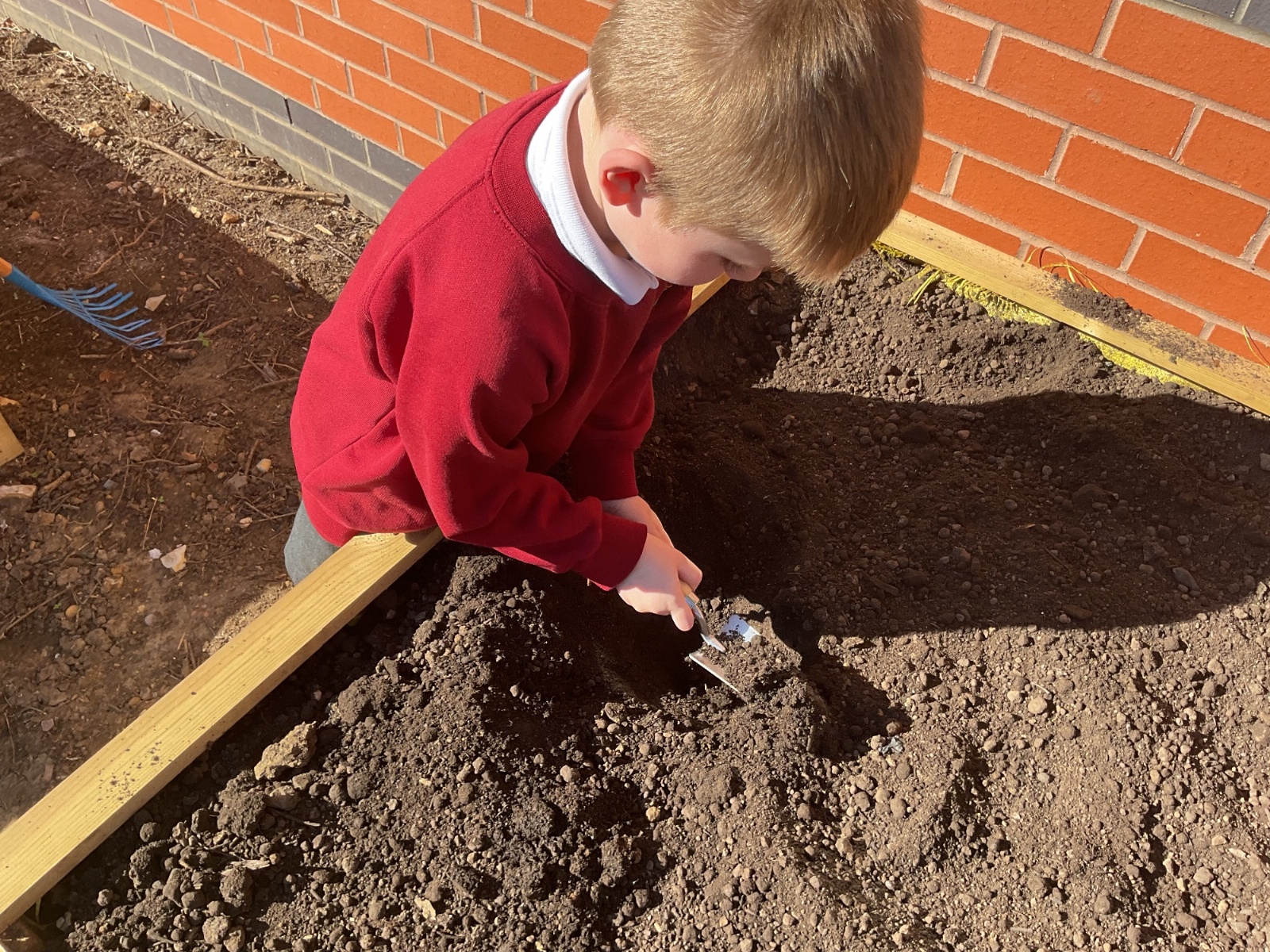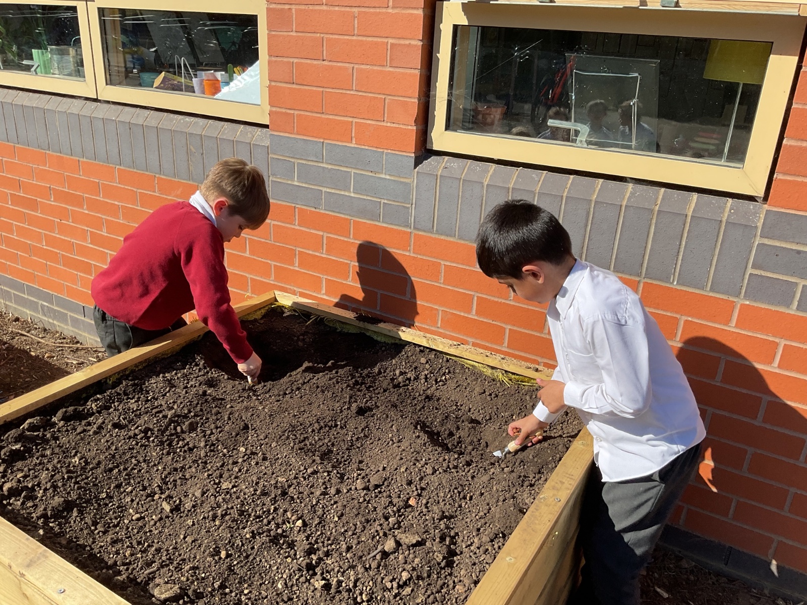 Great excitement ... we planted the first crops in our new allotment beds! The class dug over, weeded and prepared the bed before digging deep holes for each seed potato. We will keep an eye on them and hopefully have some delicious potatoes to try in the summer.