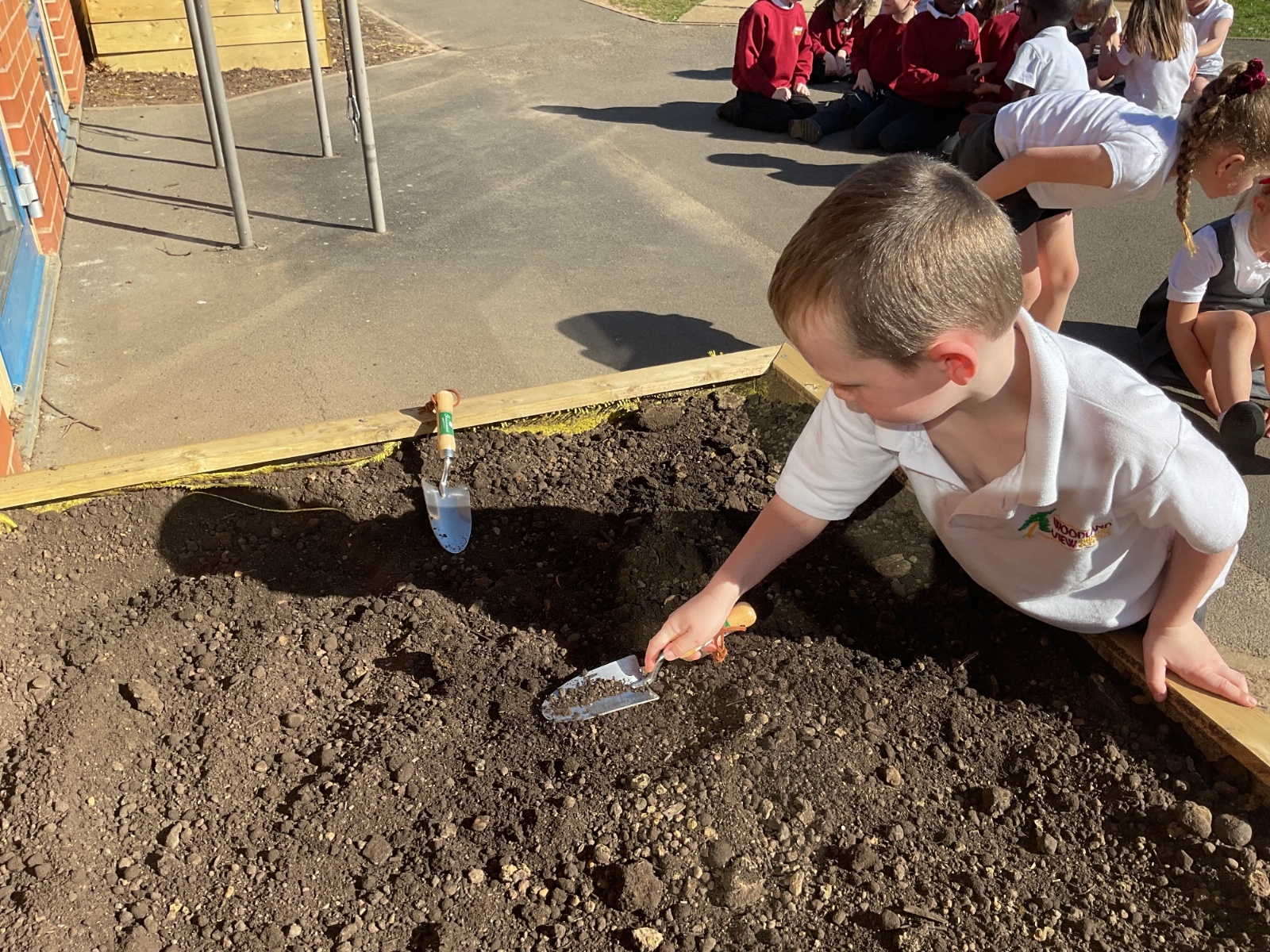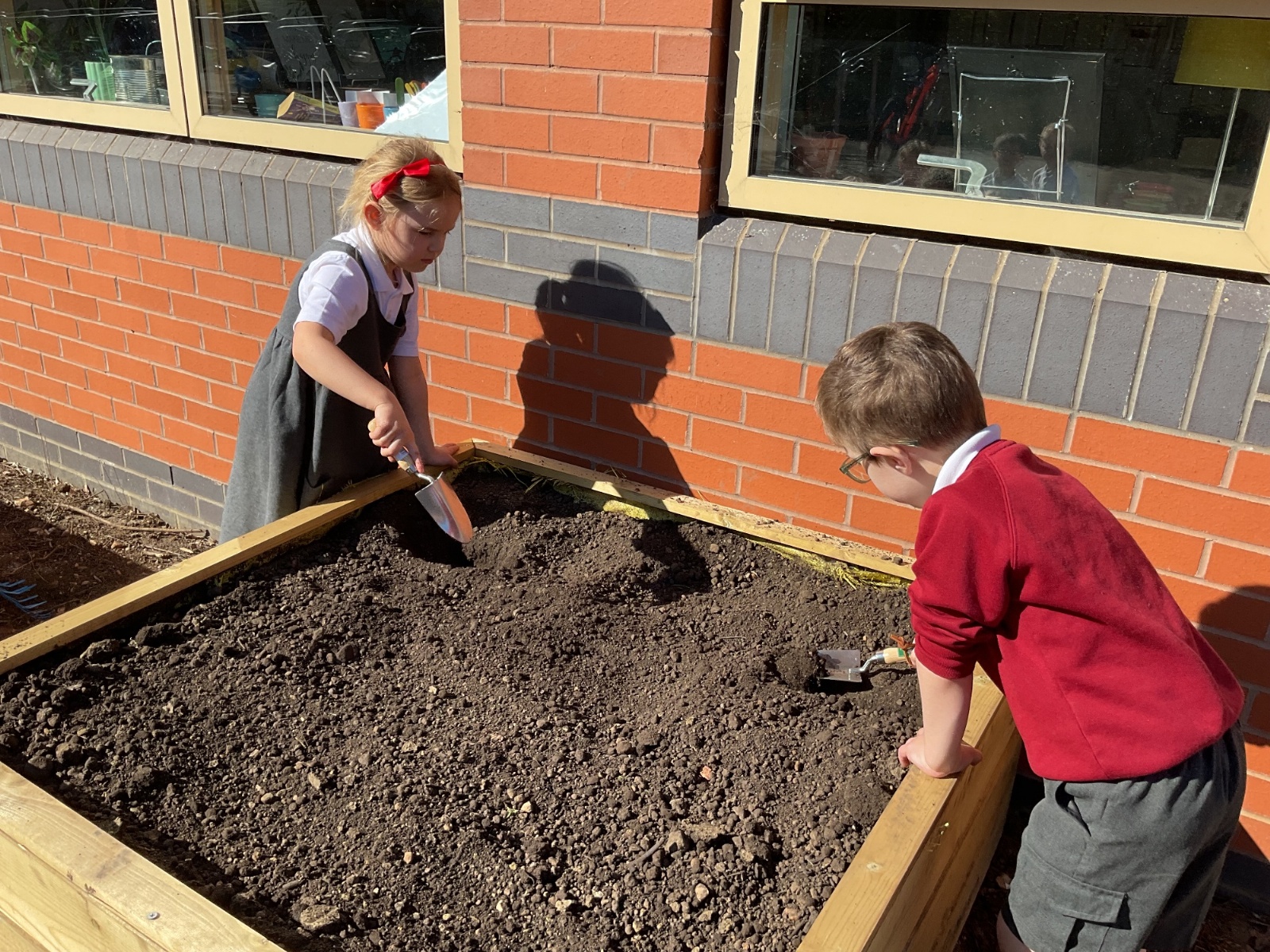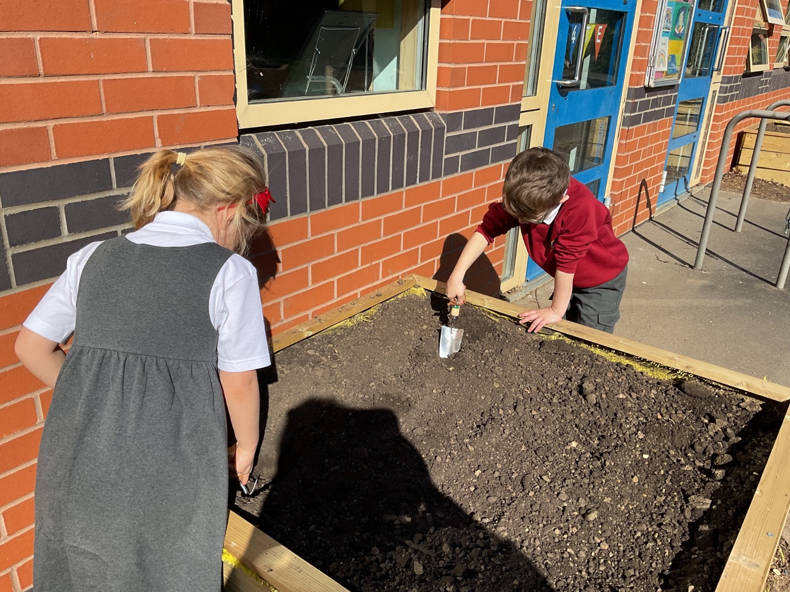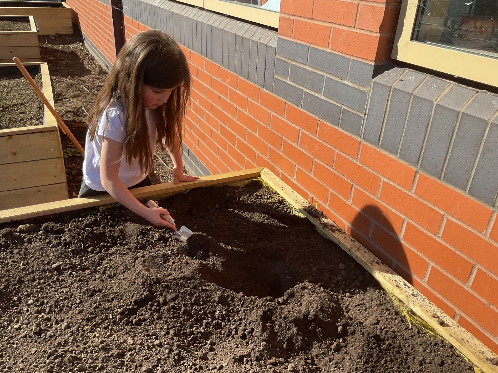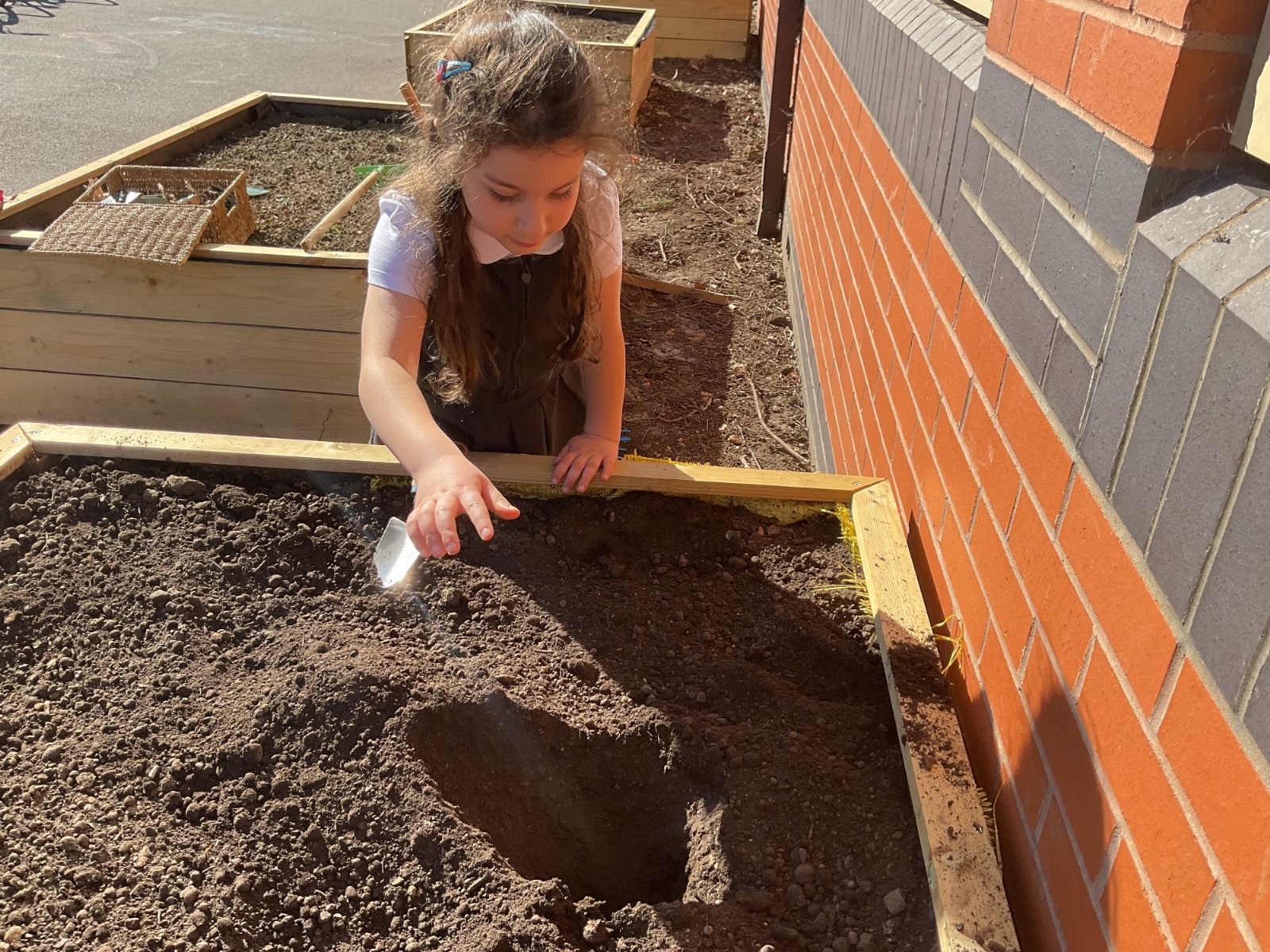 Great excitement ... we planted the first crops in our new allotment beds! The class dug over, weeded and prepared the bed before digging deep holes for each seed potato. We will keep an eye on them and hopefully have some delicious potatoes to try in the summer.