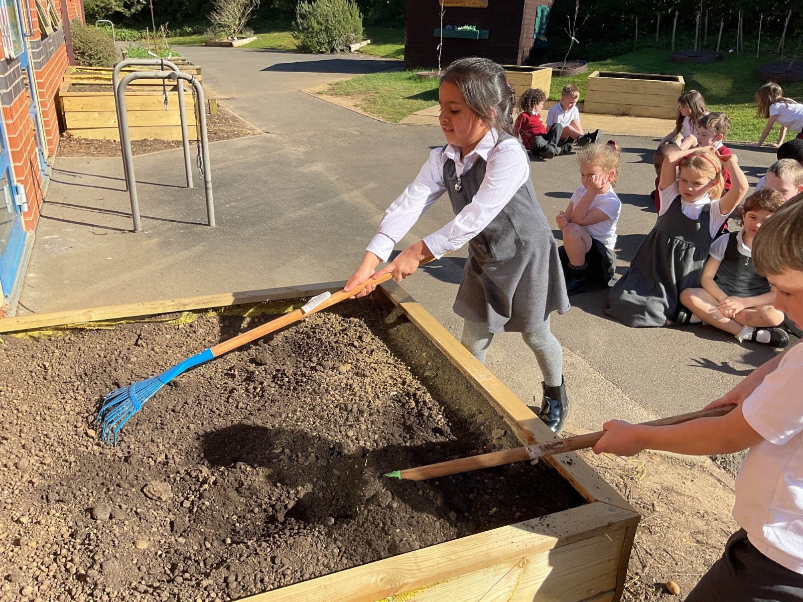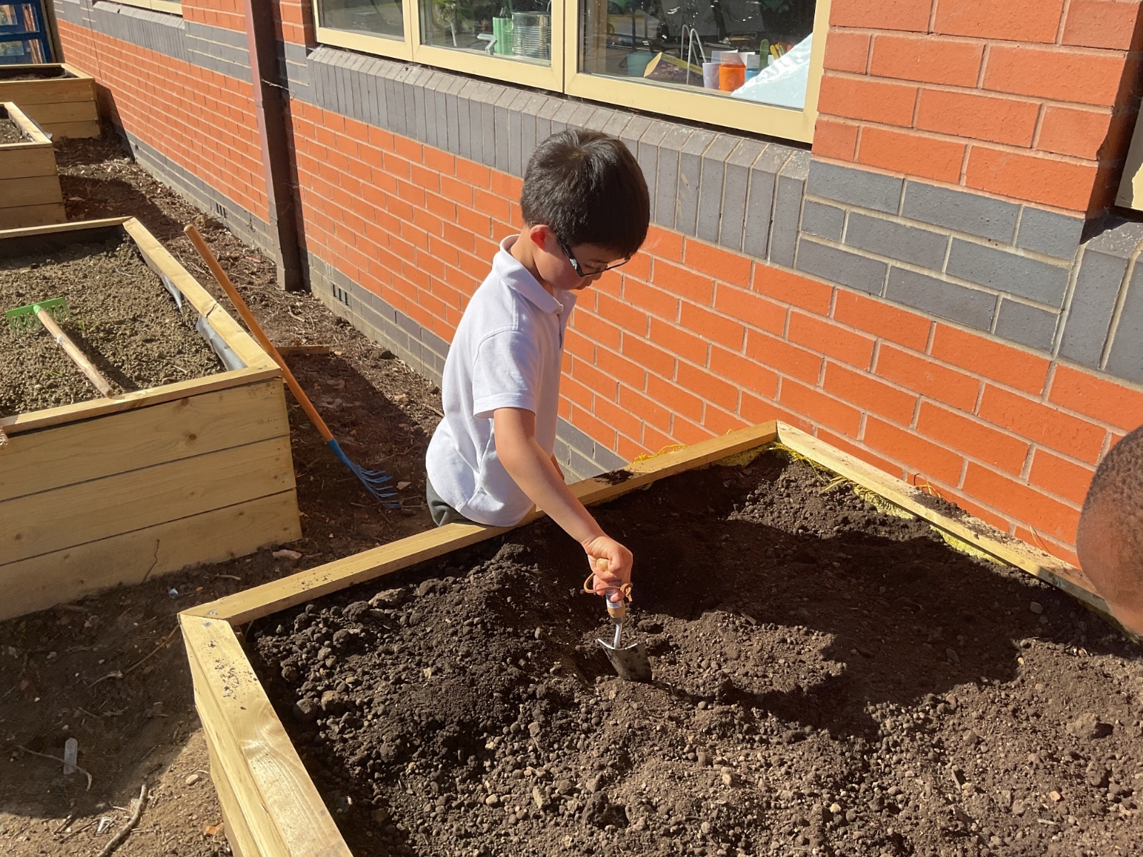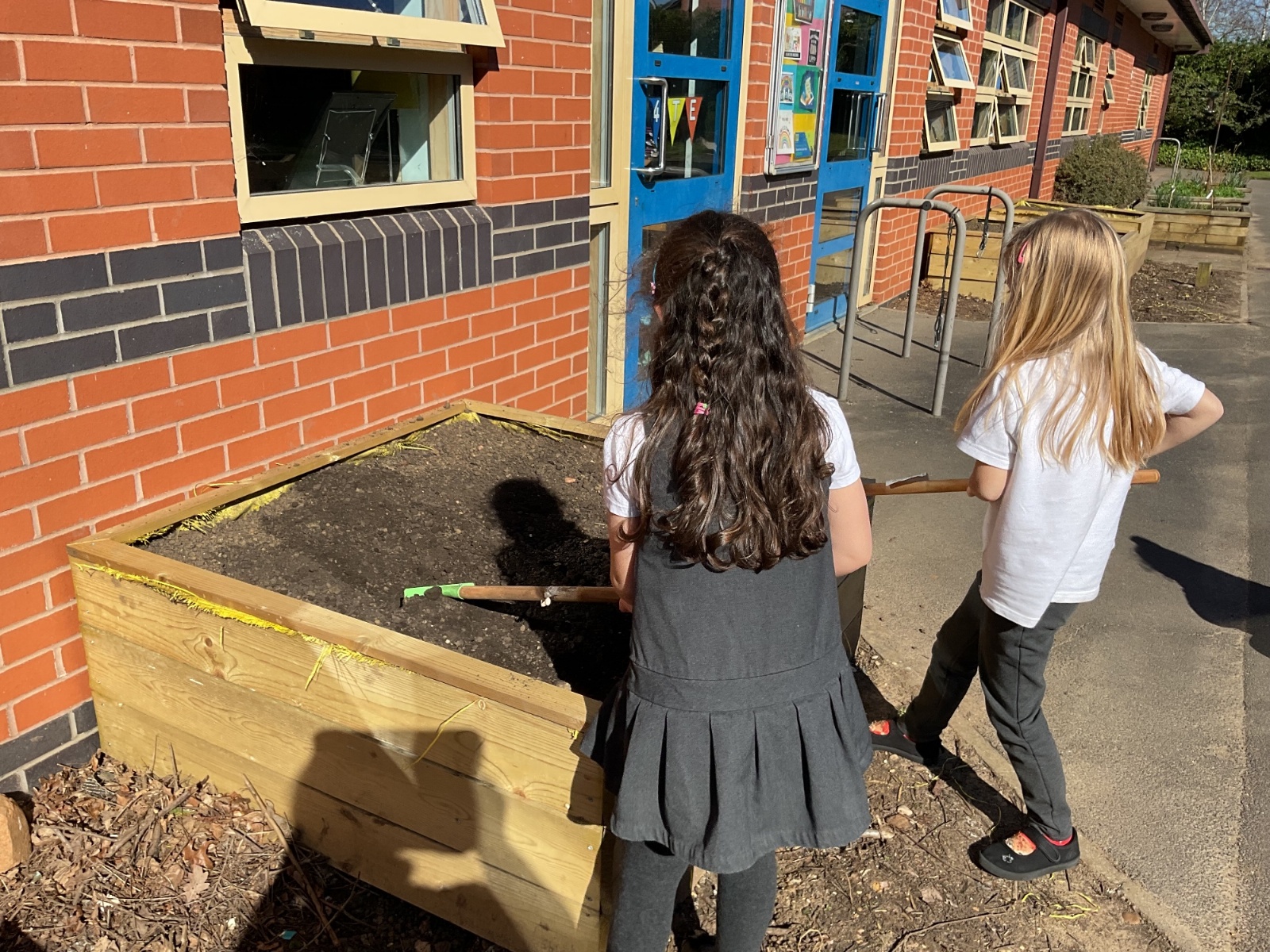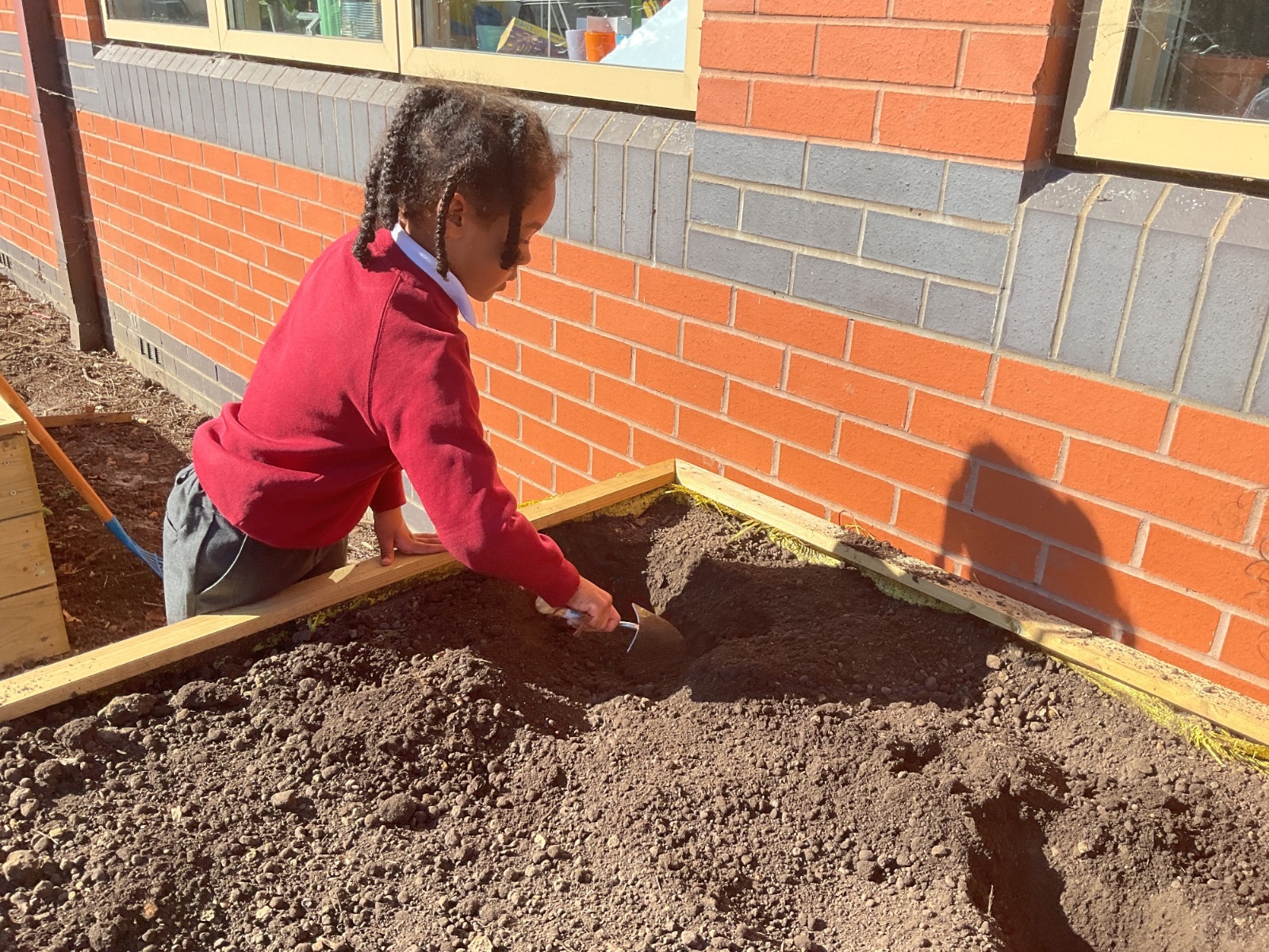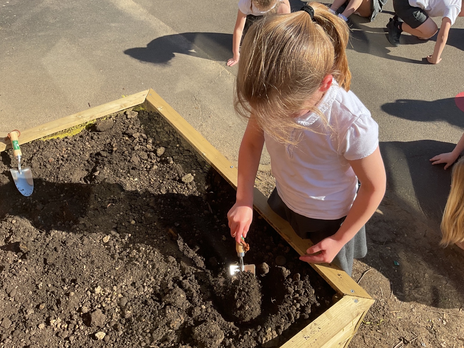 Great excitement ... we planted the first crops in our new allotment beds! The class dug over, weeded and prepared the bed before digging deep holes for each seed potato. We will keep an eye on them and hopefully have some delicious potatoes to try in the summer.