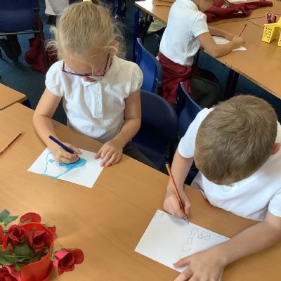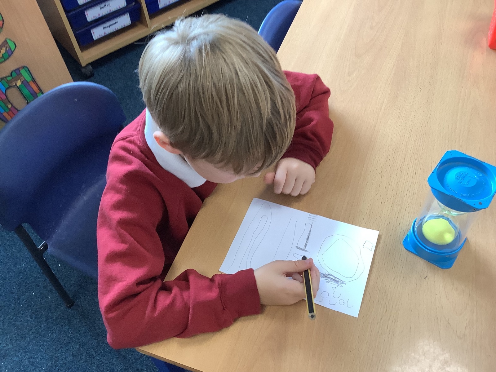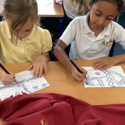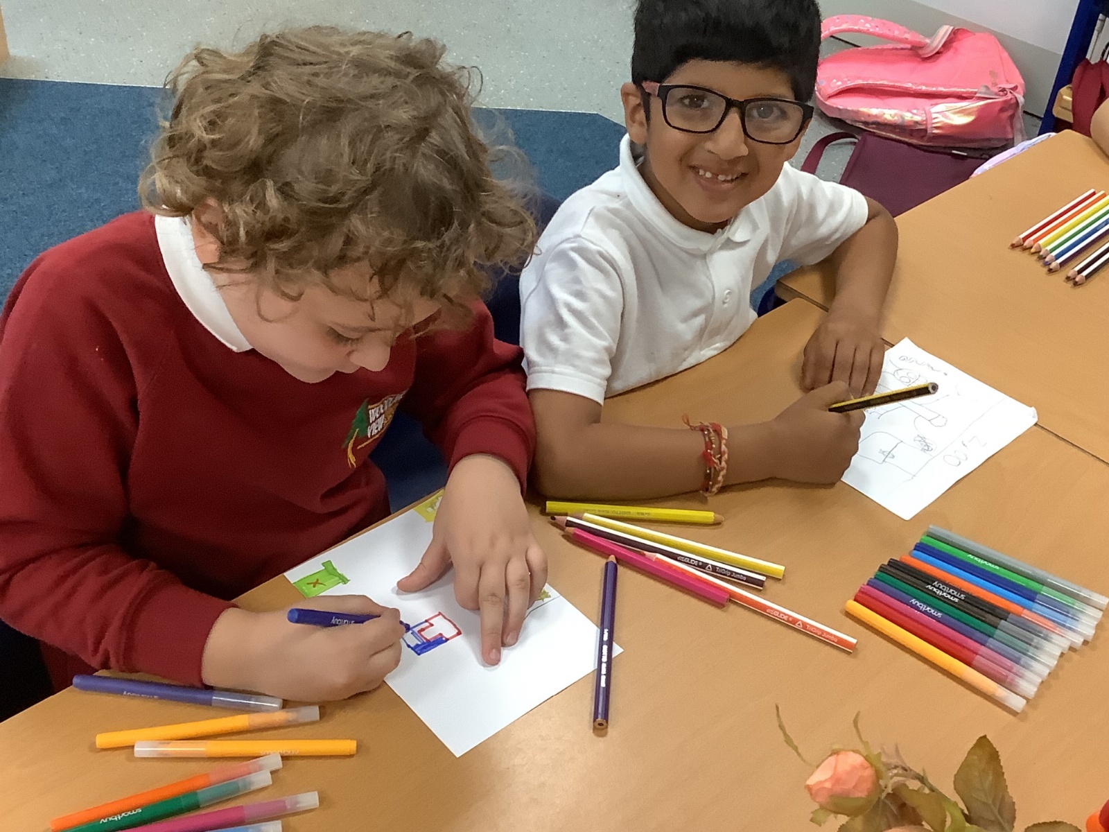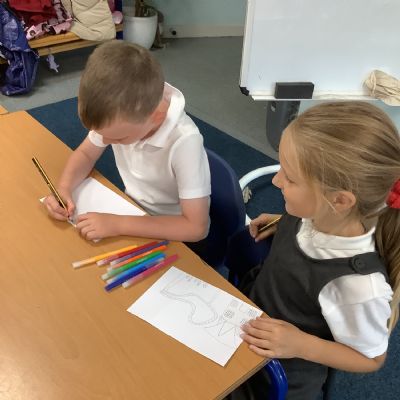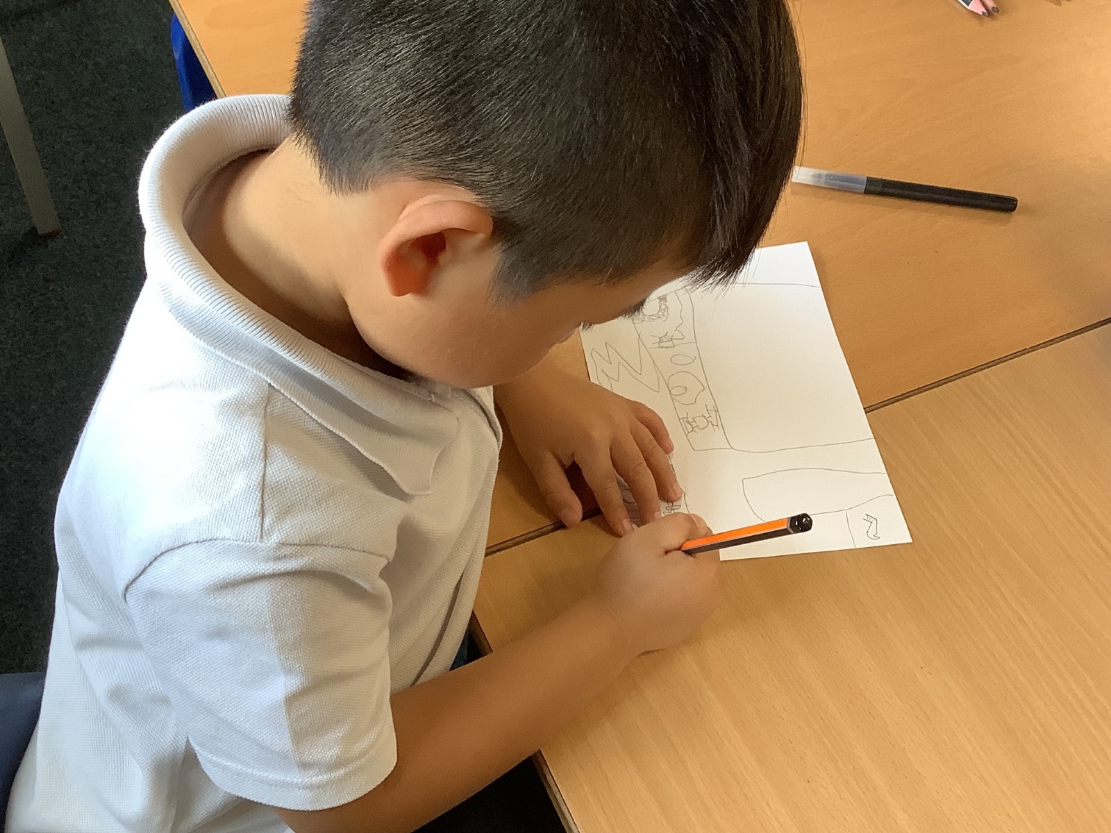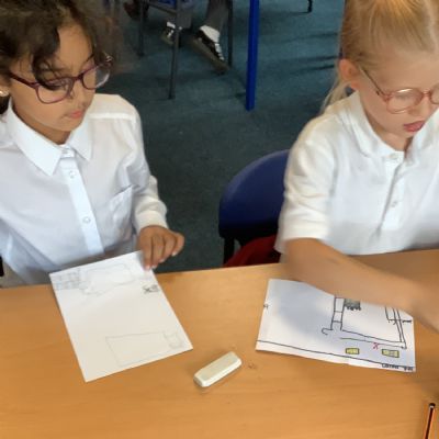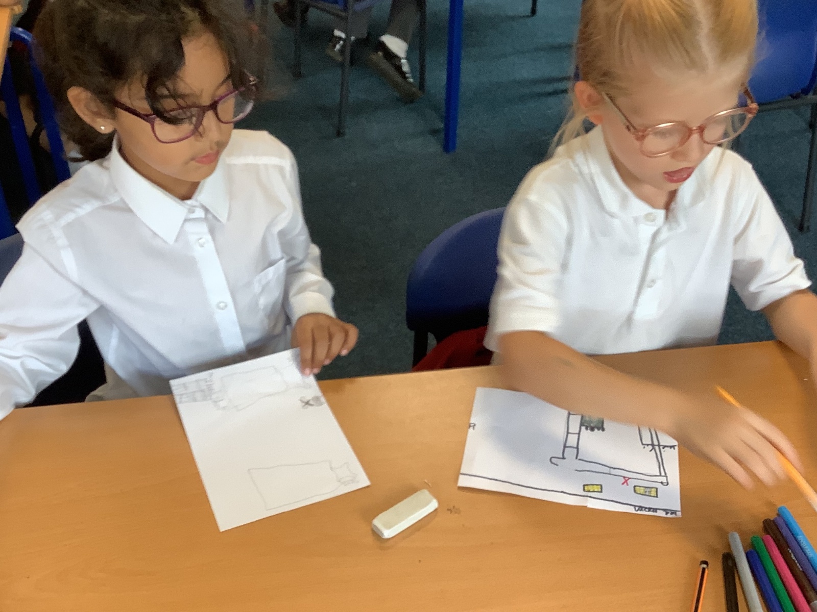 We used a map to hunt for letters around the school grounds which spelt out the value for this term - courage! Here we are also having a go at making our own maps.