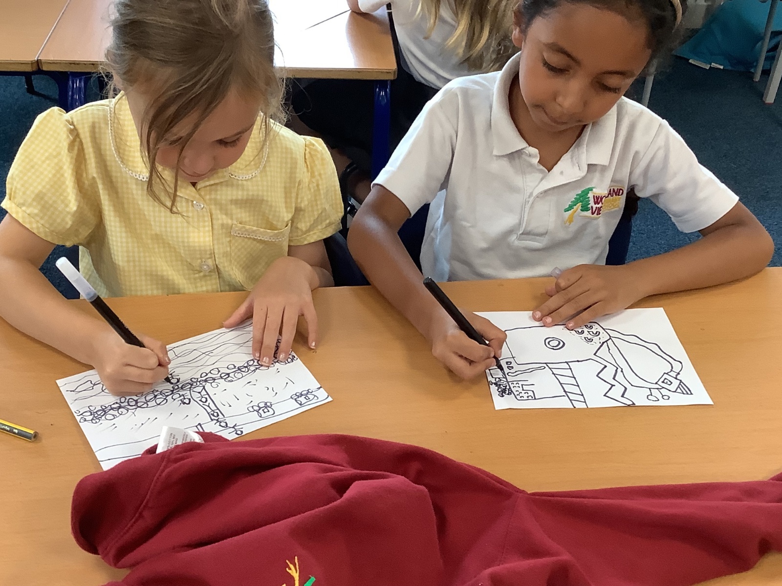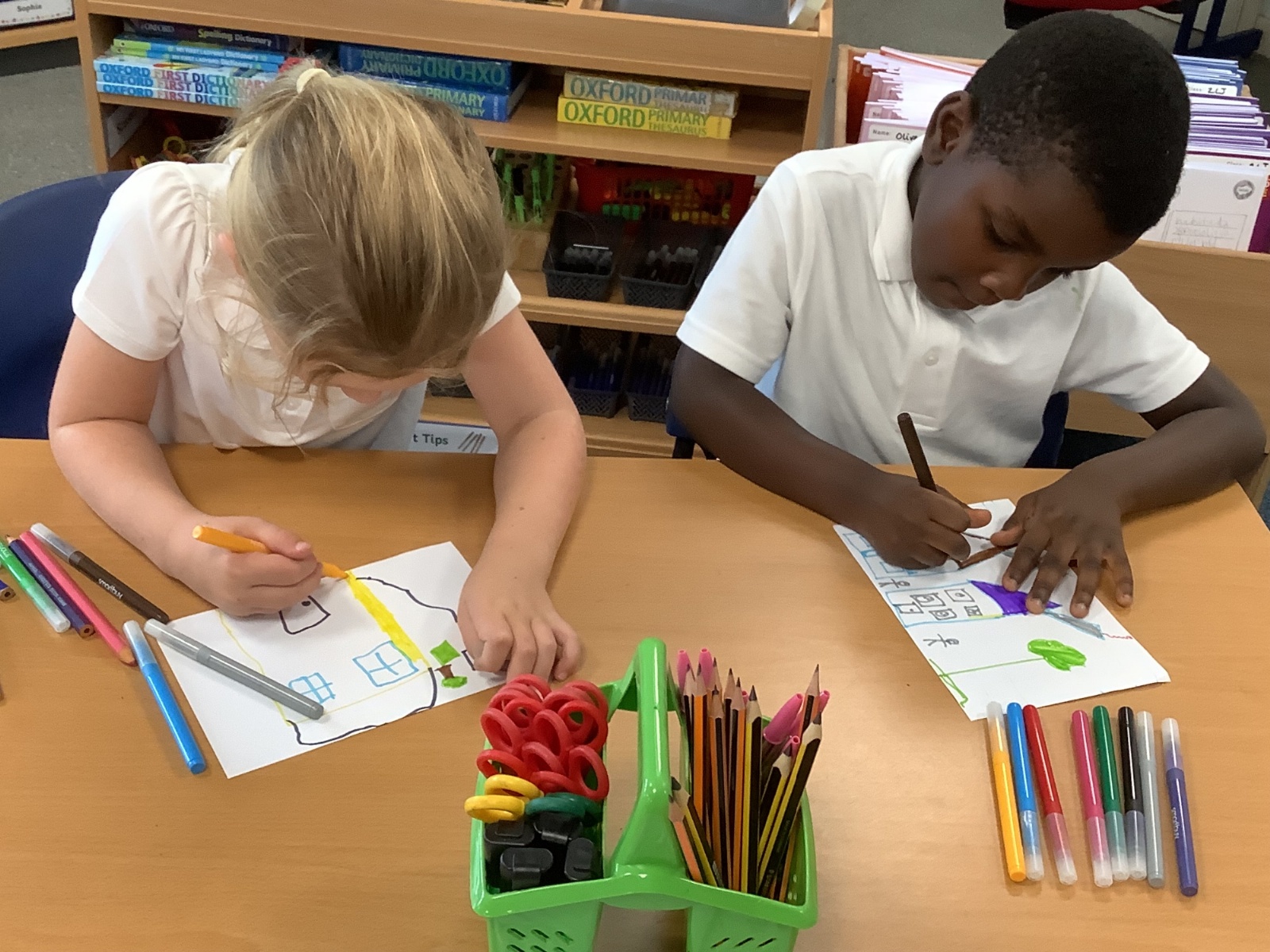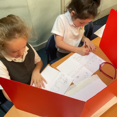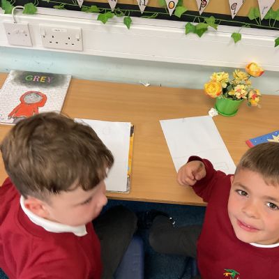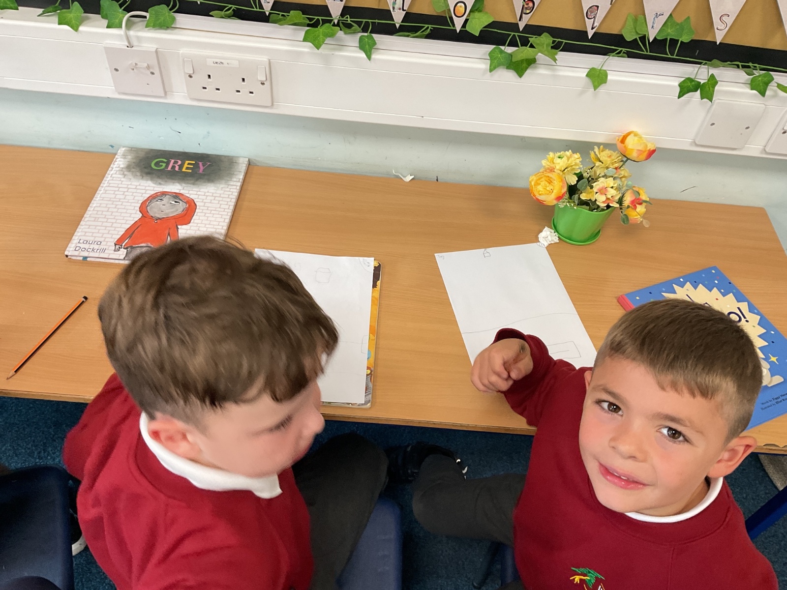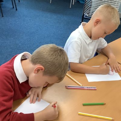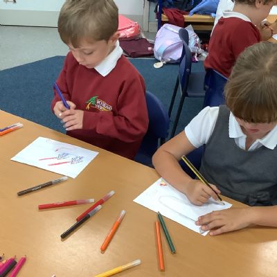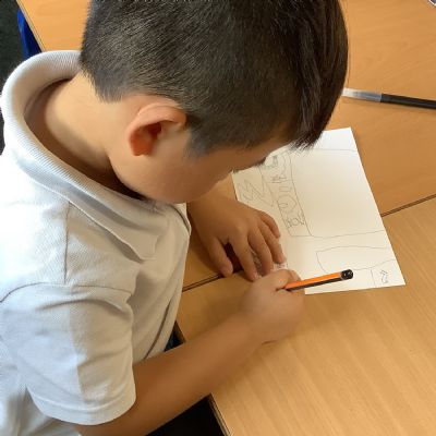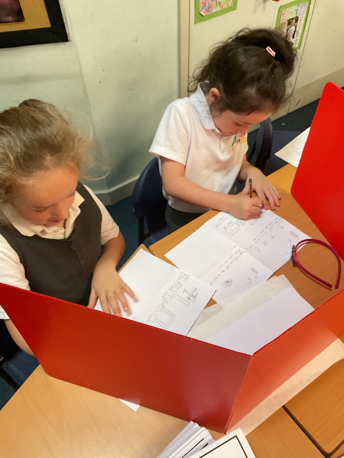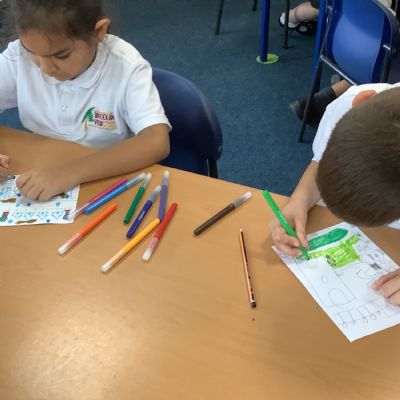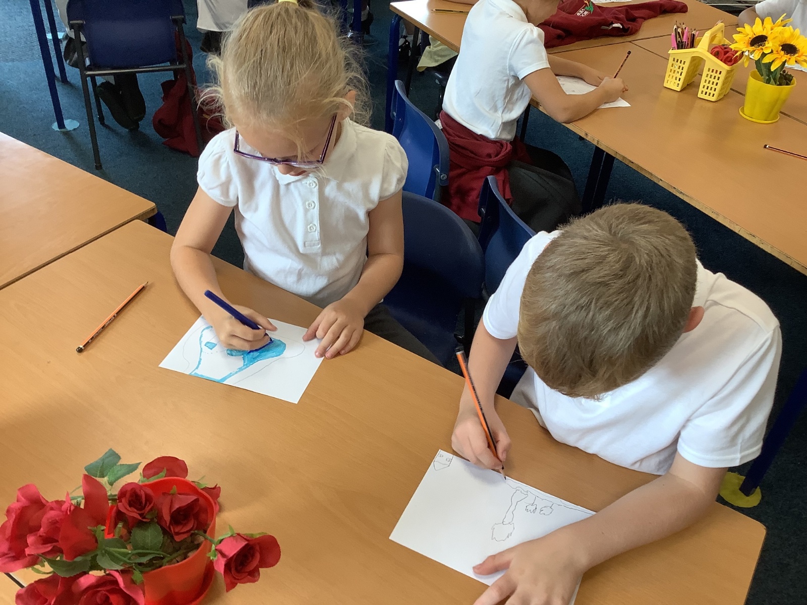 We used a map to hunt for letters around the school grounds which spelt out the value for this term - courage! Here we are also having a go at making our own maps.