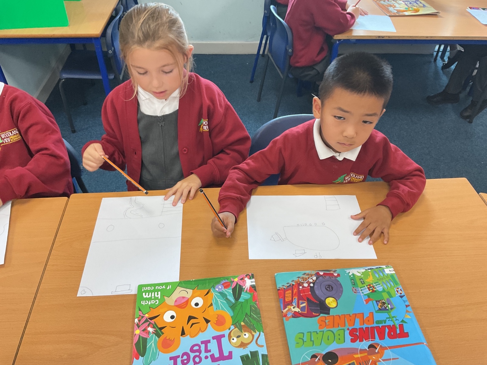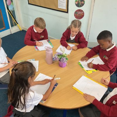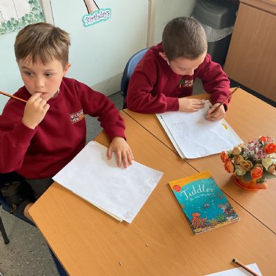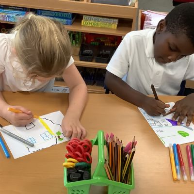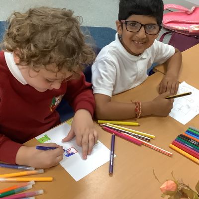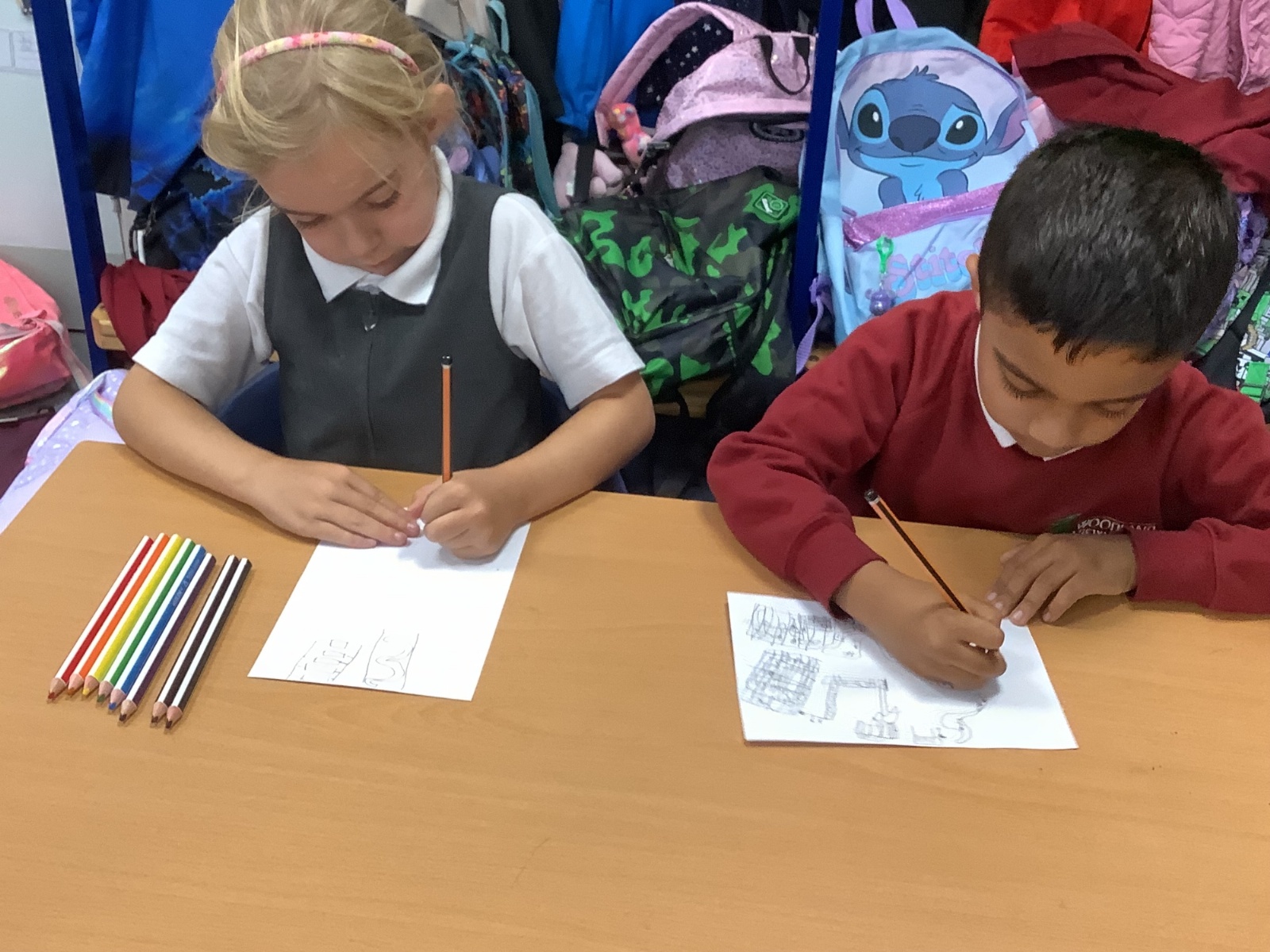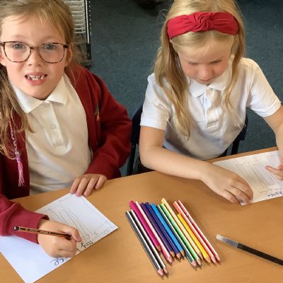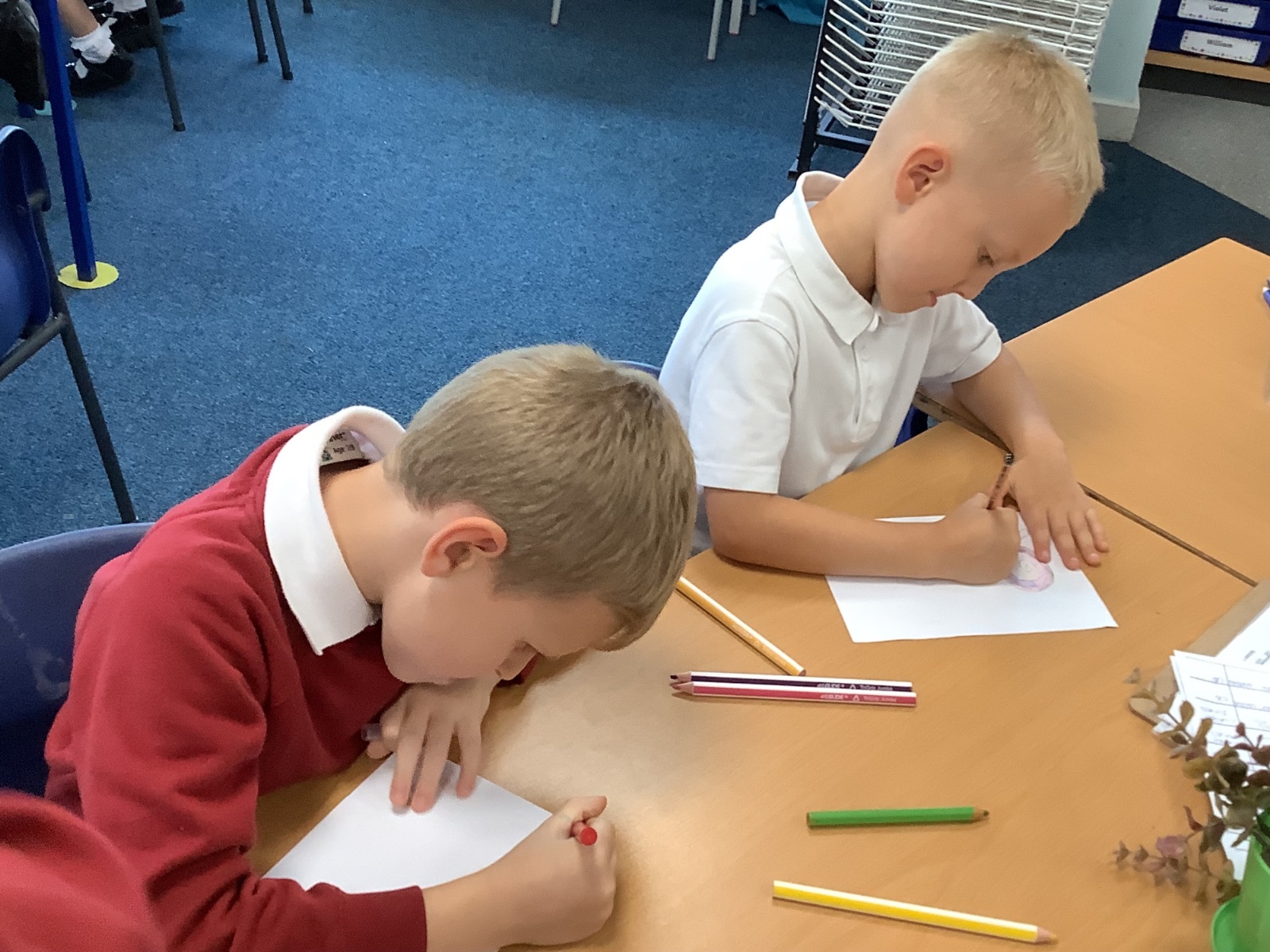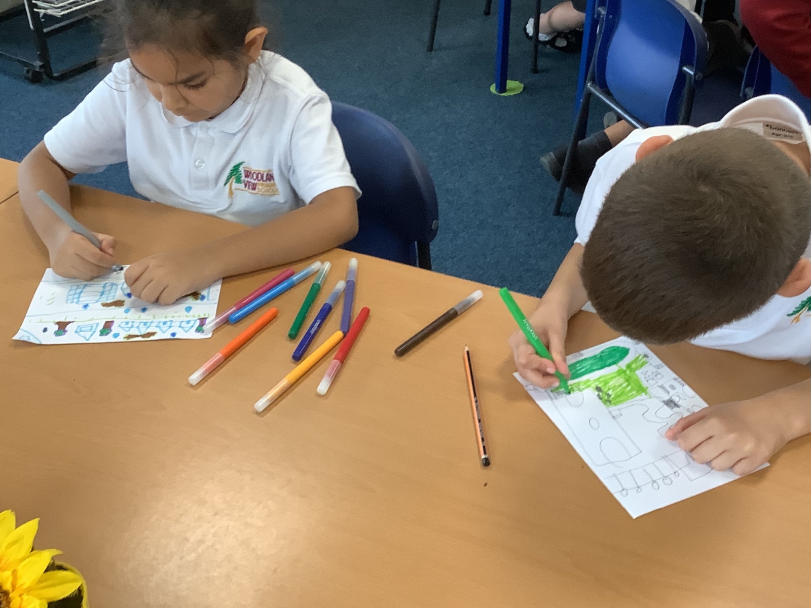 We used a map to hunt for letters around the school grounds which spelt out the value for this term - courage! Here we are also having a go at making our own maps.