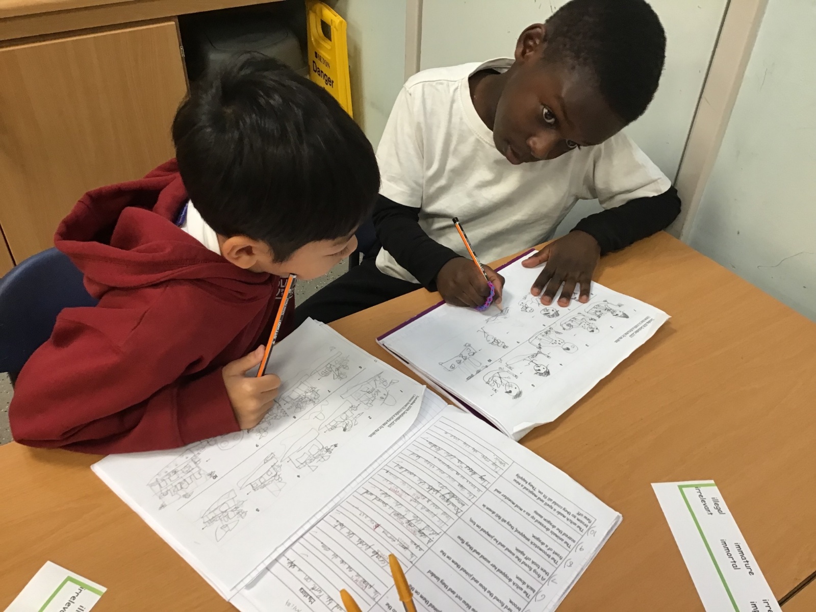 After planning our own stories earlier in the week, then creating story maps to go with them, today we took part in a 'speed talking' activity! We sat in rows, opposite a partner and had two minutes to tell them our stories from our plans before the alarm sounded, and we moved on to the next person! Finally, we practised retelling our stories using fronted adverbials and expanded noun phrases.