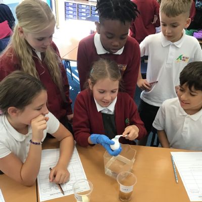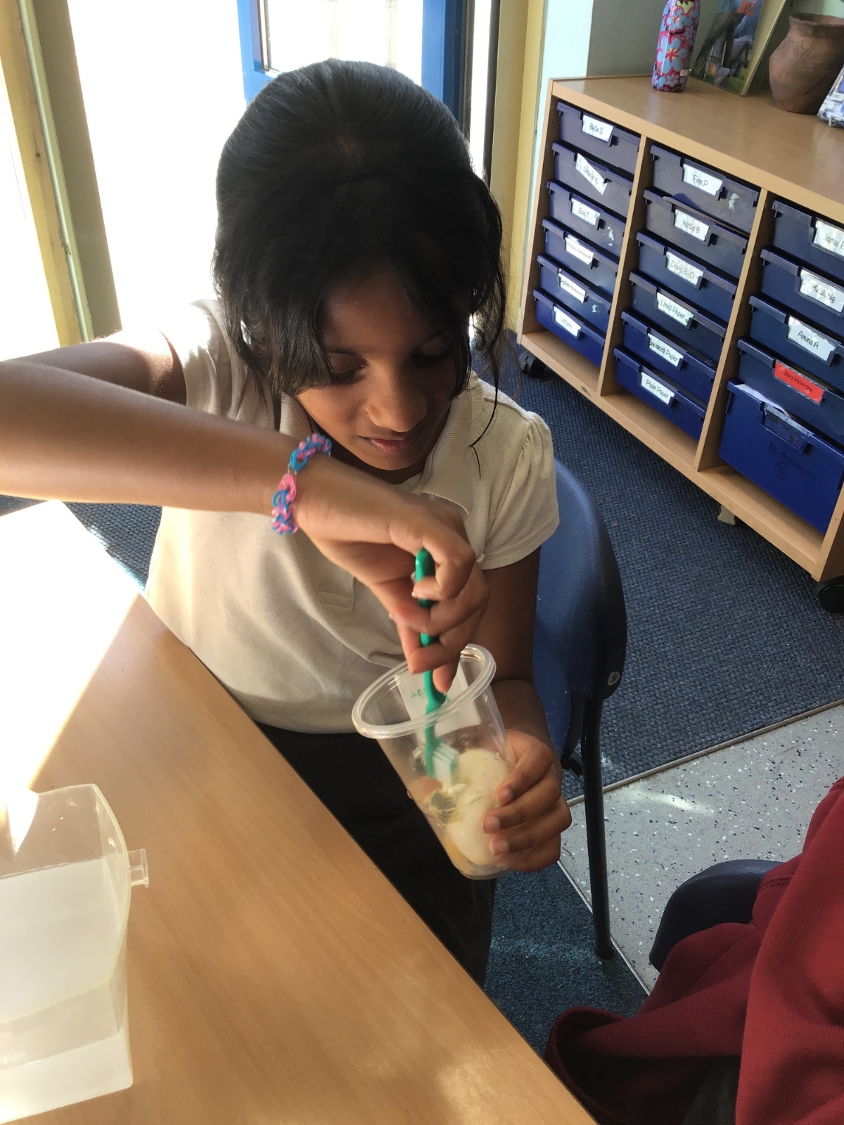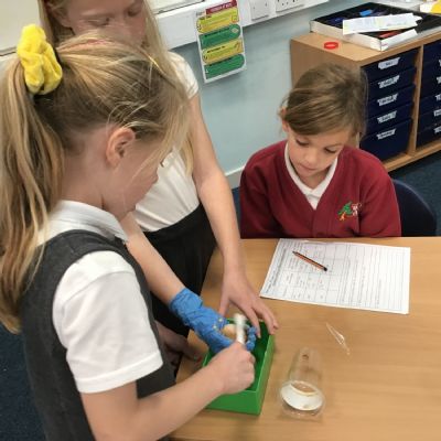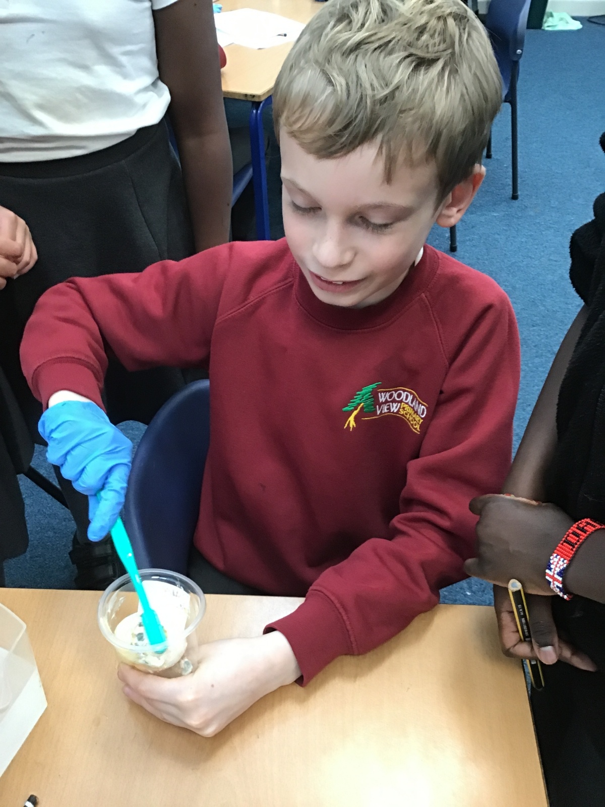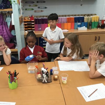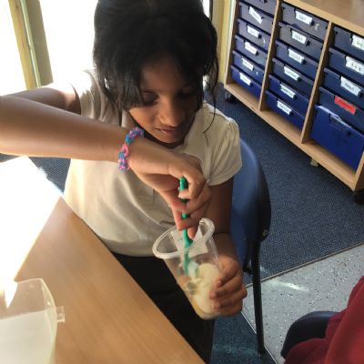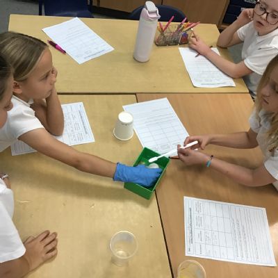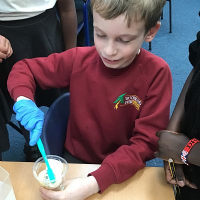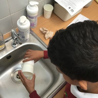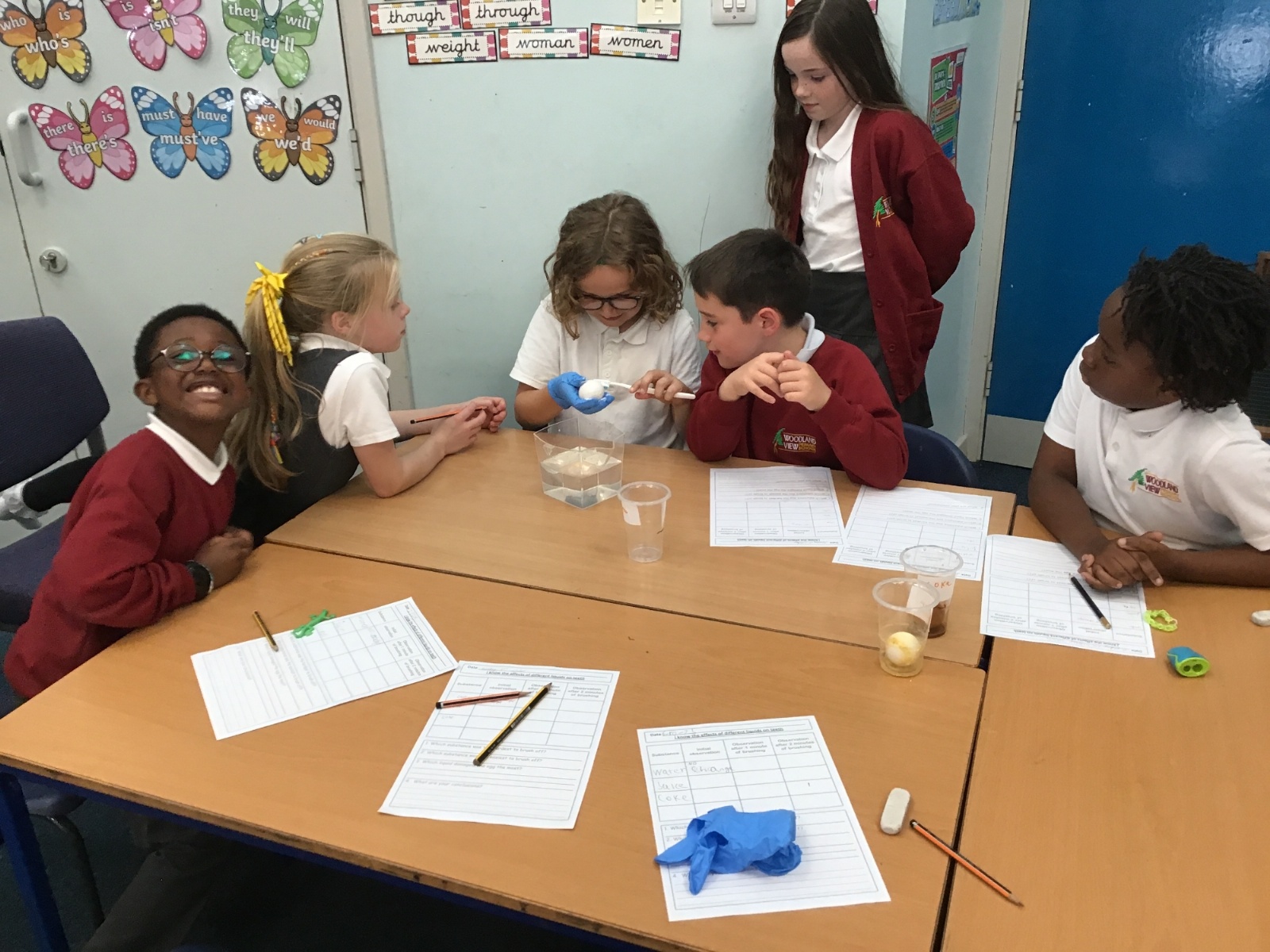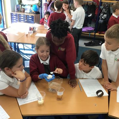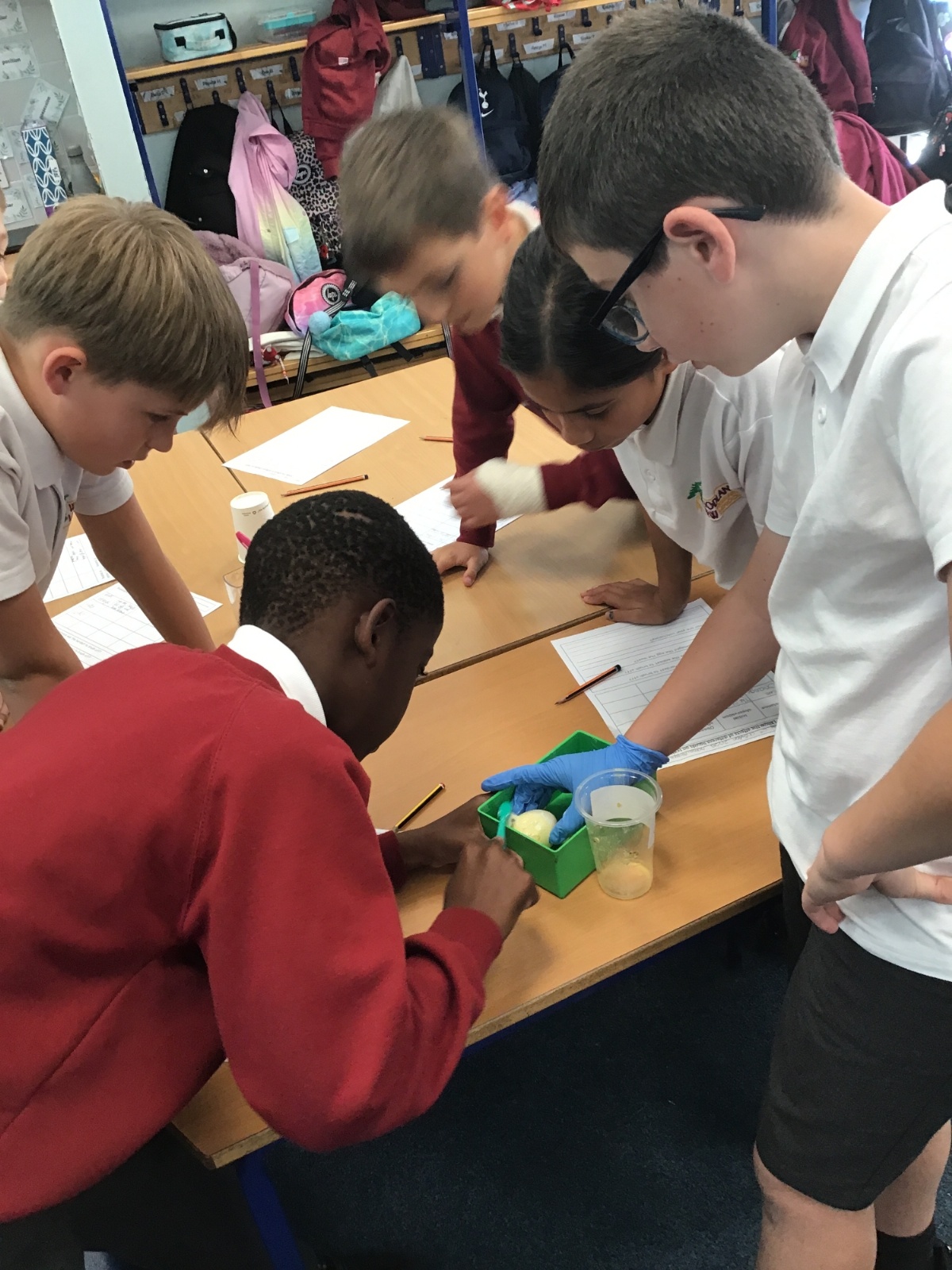 Today we looked at the three eggs we had left on the windowsill in different substances last week. We left one egg in water, one in coke and one in pure orange juice. We made initial observations and then we tried to brush each of the eggs with toothpaste and a toothbrush. We were able to get rid of some of the staining by the orange and coke but the egg in the water had no staining on it. The orange juice not only stained the egg, but it also made the eggshell weaker. As eggshell is very similar to enamel, this shows us that sugary, acidic drinks can weaken the enamel of our teeth and that brushing is really important.