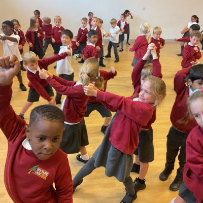We used our amazing imaginations to go on a Now Press Play story adventure. On a beach we found a bottle with a map inside: an X marks the spot of buried treasure! Squawker the parrot gave us a magic telescope which whisked us away to Captain Sardine's pirate ship. There we walked the plank, hopped on a wooden leg, looked through a telescope and eventually spotted Treasure Island. You'll have to ask us what we found!