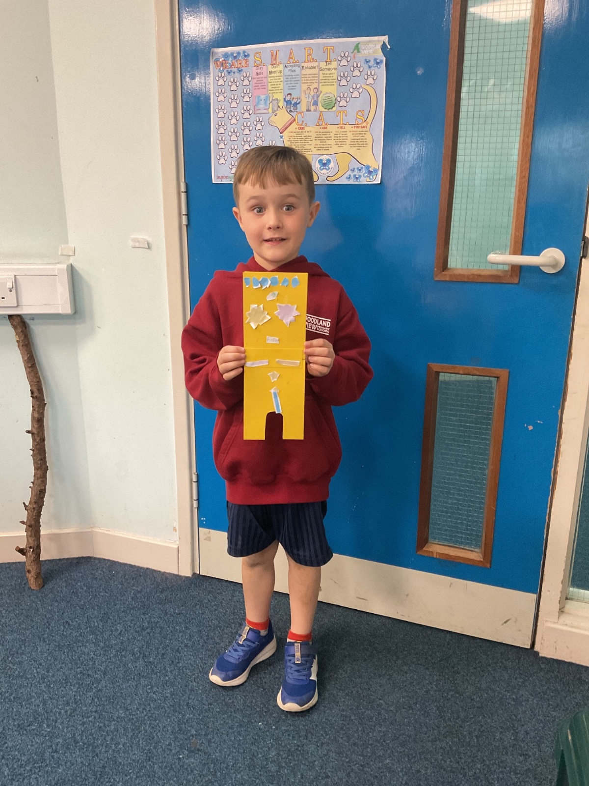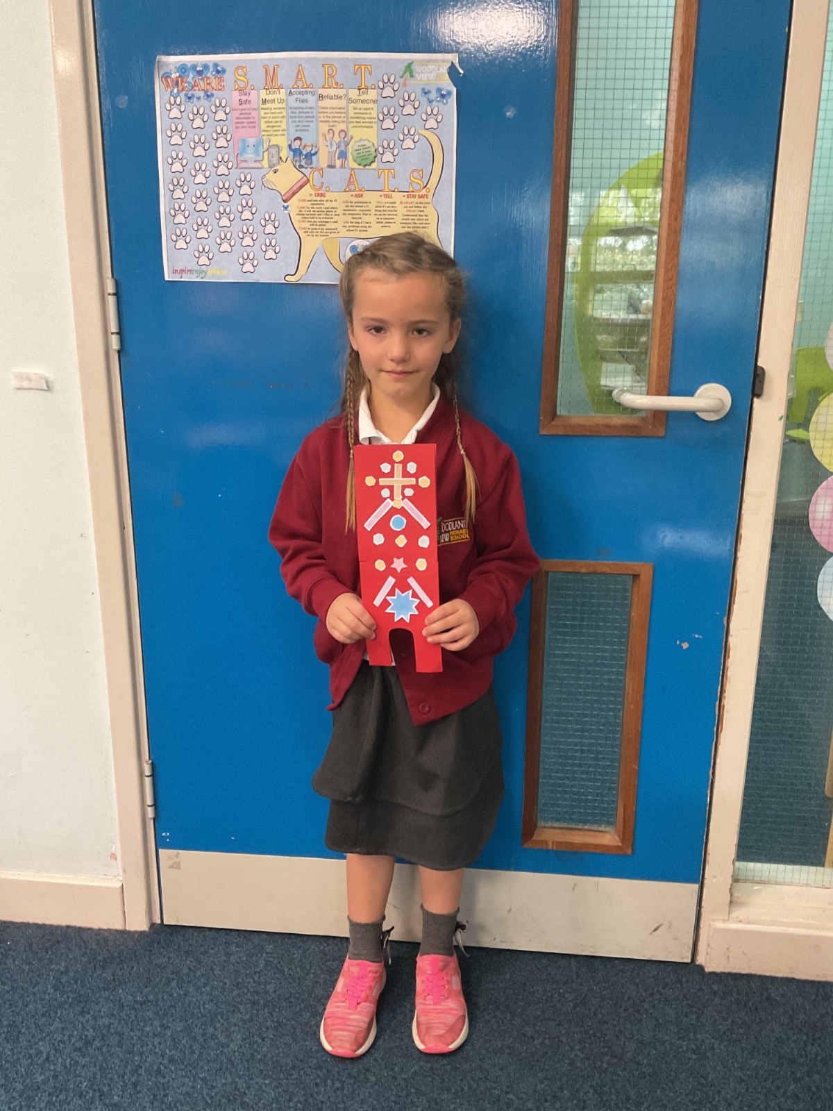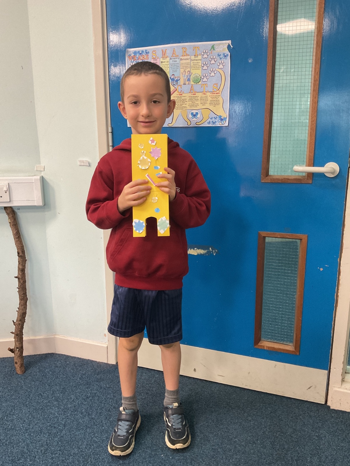 We were inspired by the beautiful geometric patterns often found on these stands, so we designed and created our own book stands! The children really enjoyed exploring the shapes and patterns and thinking carefully about how to make their designs unique.