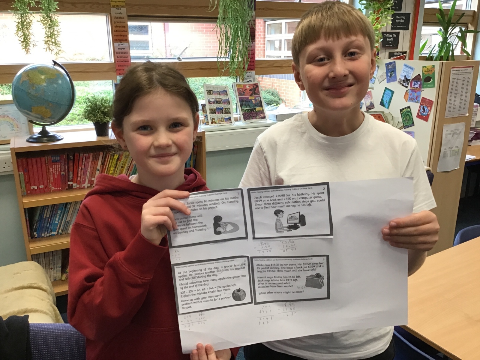 Today, we have been working in pairs, using our addition and subtraction strategies to problem solve. The problems we worked on were multi-step, so we've worked hard to identify the order of operations and key maths vocabulary, to help us work out the strategies needed to answer the questions.