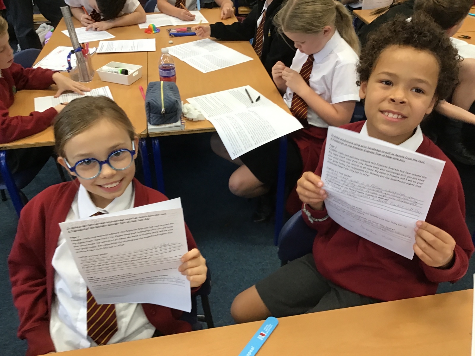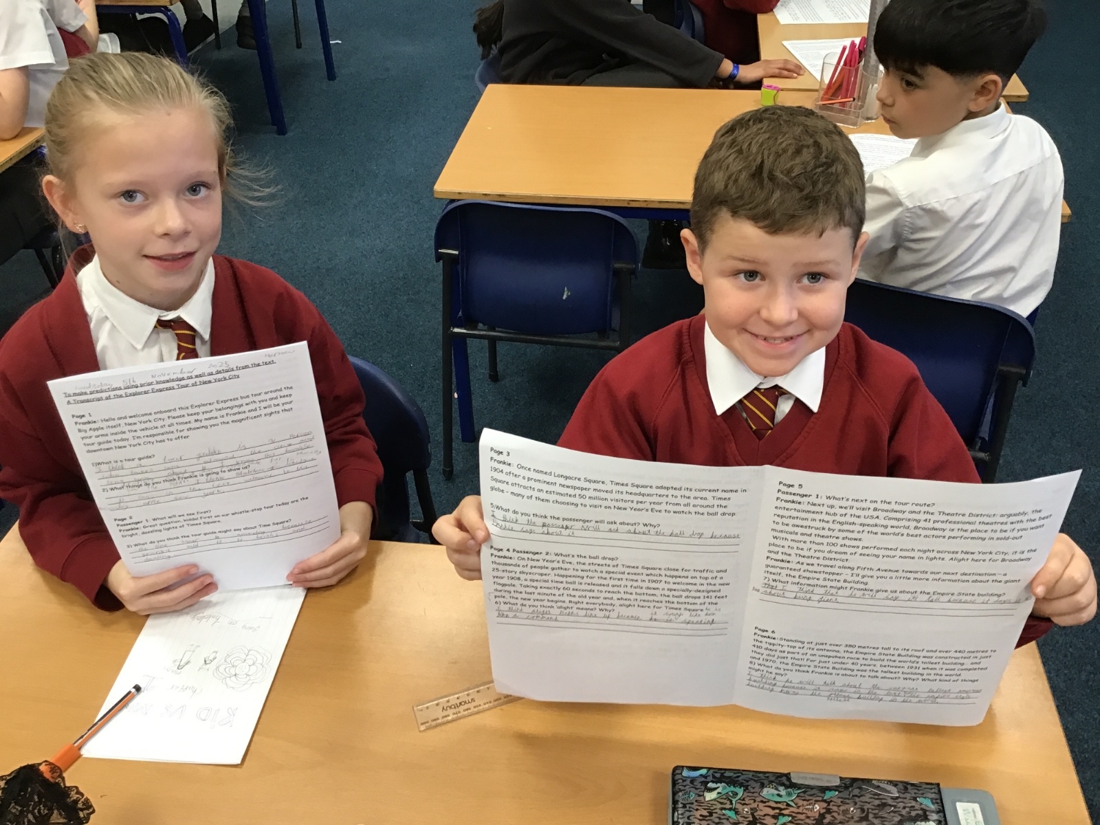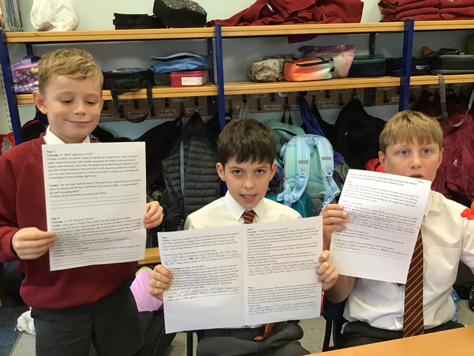 Today in comprehension, we made predictions and continued our work on the USA by looking in more depth at New York City. First, we learnt some facts about New York and the things that people go to see. We then read parts of a script from a tour guide in New York and after each section, we had to make predictions about what he would say next. We used the text to help us to make our predictions and used it as evidence to support our ideas but we also used our previous learning about the main attractions and the facts about them to justify our predictions.