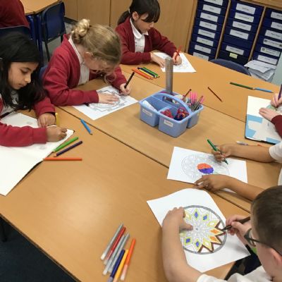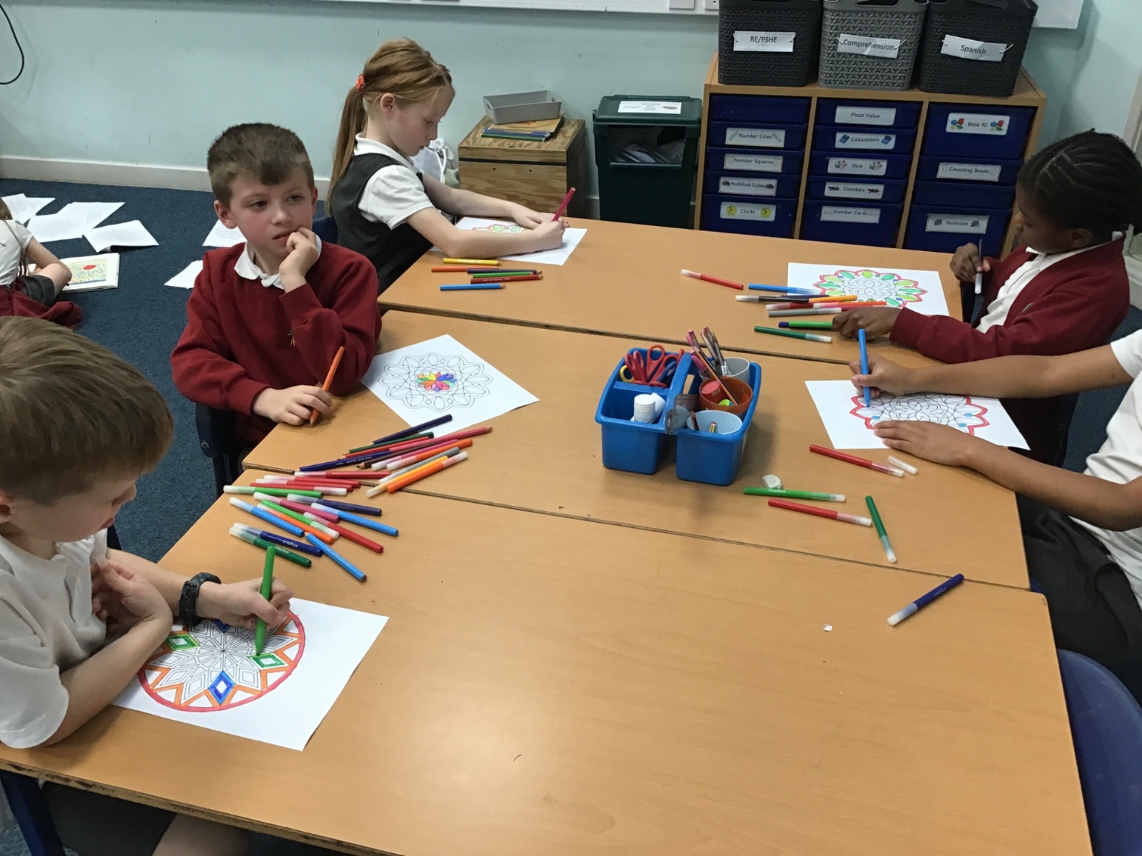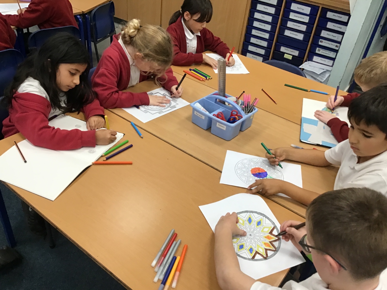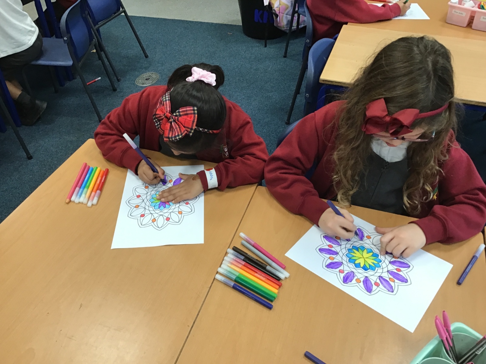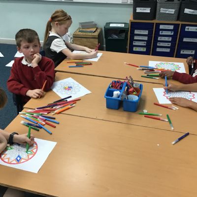 This week we started our new topic "A World Of Difference" where we will be learning about different religions. We did some Buddhist art where we focused on Mandalas. Buddhists use these are a form of meditation and reflection. We drew or coloured our own in silence and reflected on our day at school.