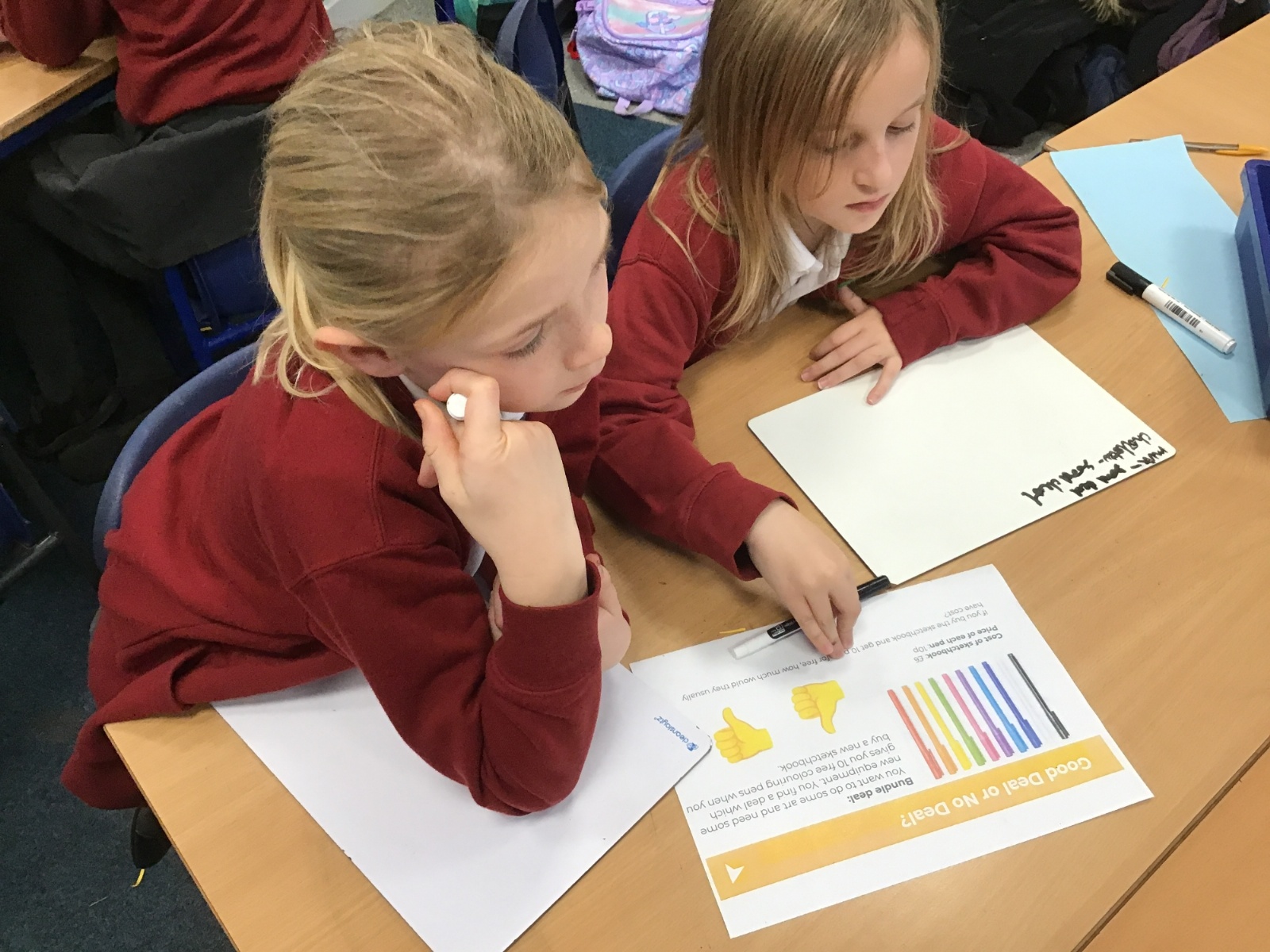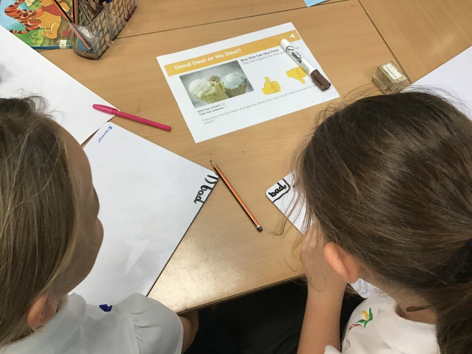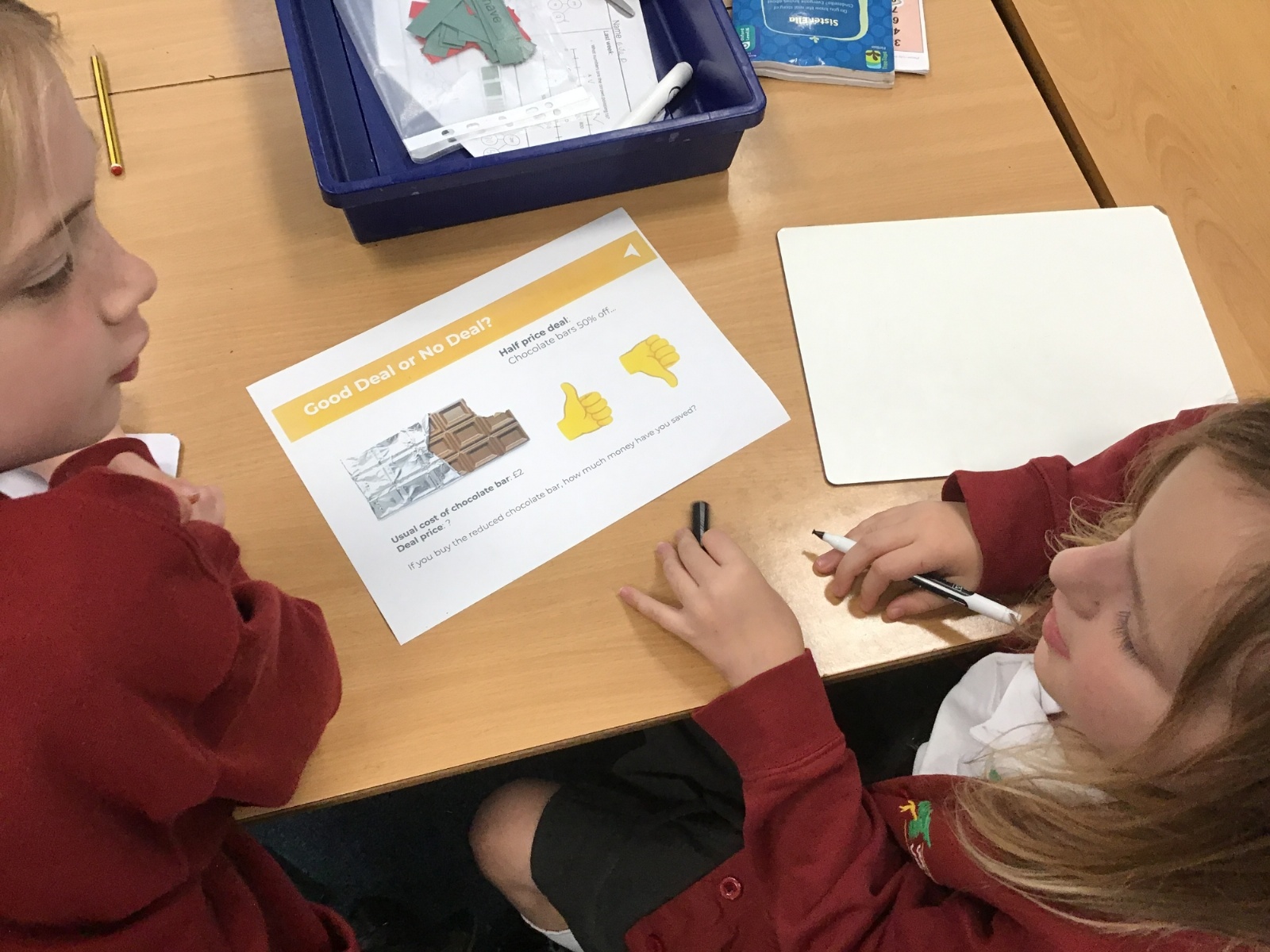 This week has been Maths Week. We have been focusing on money and coins. On Monday, we were trying to spot a 'good' deal. We looked at adverts that advertised discounts of 50% off, buy one get one free and bundle deals. We tried to decide whether they were 'good' deals and if they were, when might they be a 'bad' deal. On Tuesday, we tried to design some of our own deals.