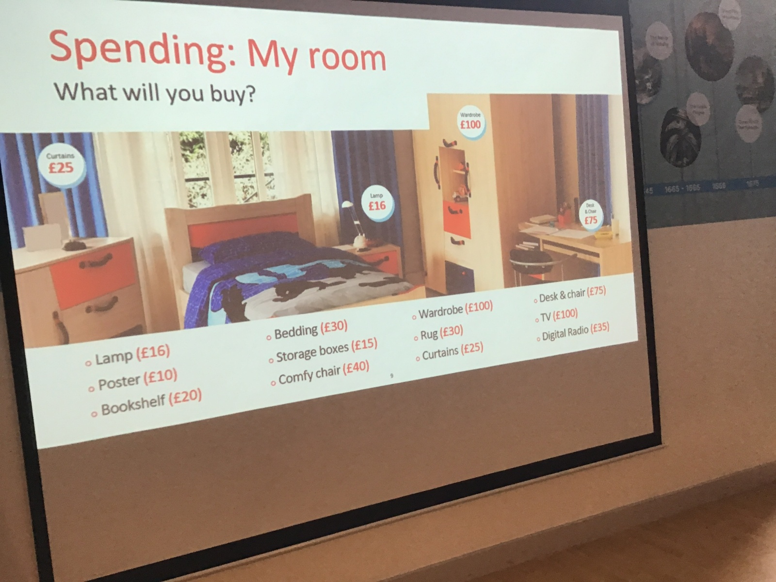 On Thursday, as part of our Maths Week, we welcomed Alice and Sandra from the bank Santander into school. Year 4 took part in a lesson on budgeting and saving. We had to buy items for a fictional bedroom; identifying things we needed and things we wanted. We were then given a budget. We also learnt lots of new words, including interest, earning and budgeting.