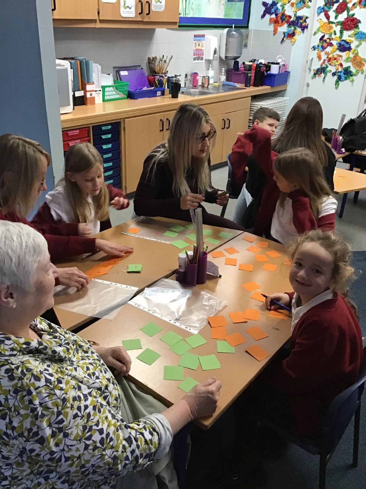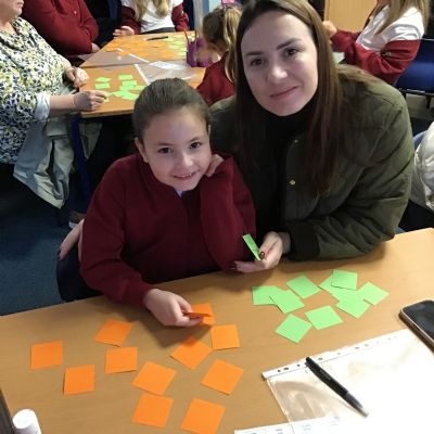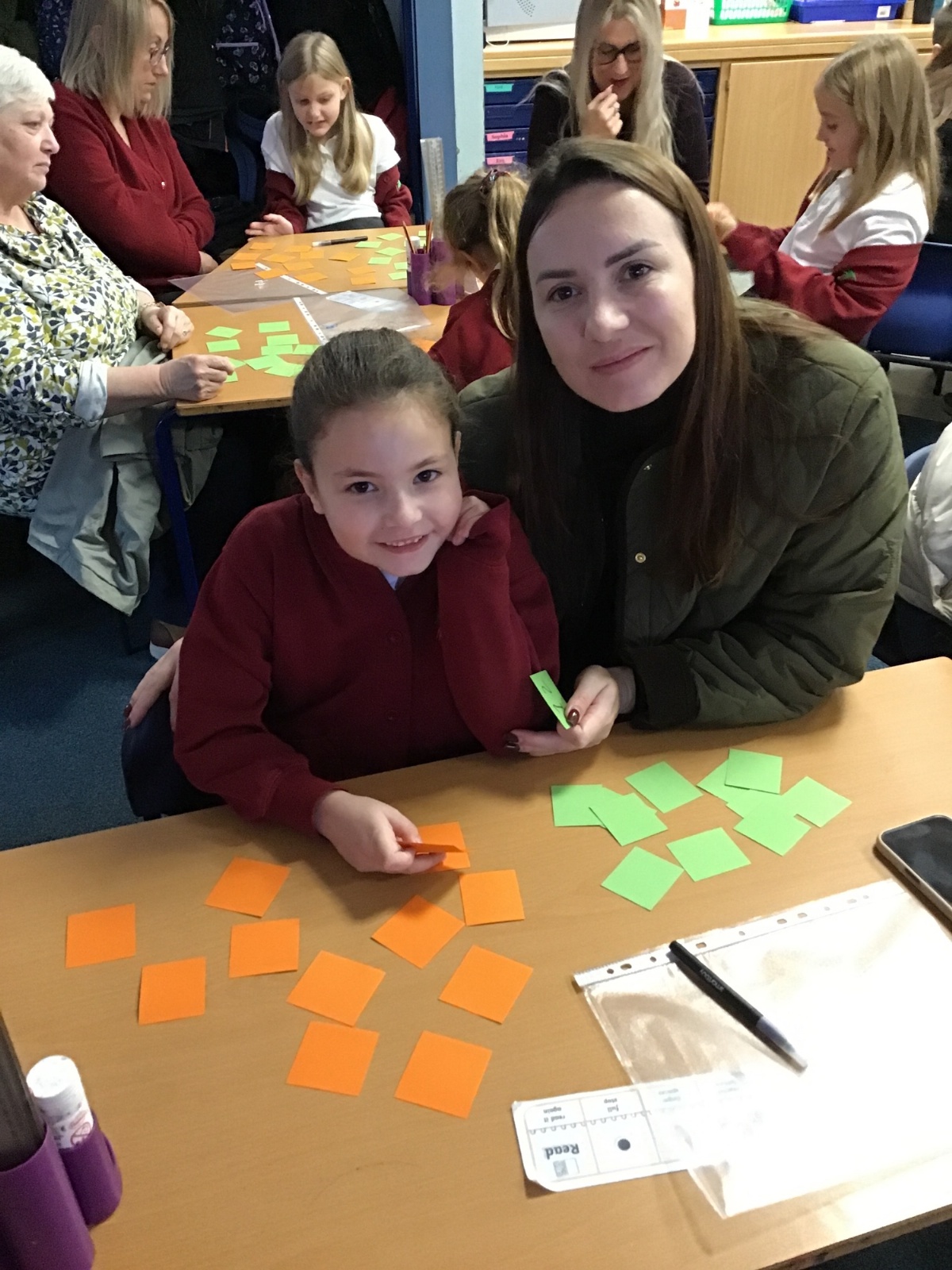 This week, the adults of the Year 3 children were invited to a special session we call Achieve With Me. The session focused on how we teach times tables in Year 3 and what parents could do at home to help their child. The session involved talking about the national times table check that occurs in Year 4 so the importance of learning the times tables this year. The children then sang to the times table songs and also explained any patterns they could see when learning the 4x tables specifically. Each child then went with their adults to play a game of snap based on the 4x tables.